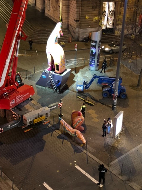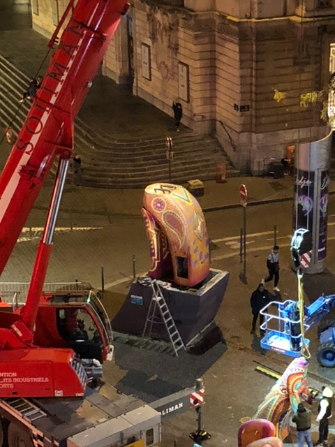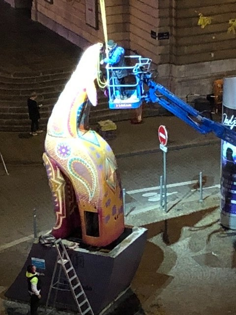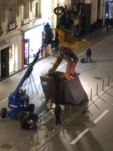 Finally, this month, all of the street art structures were removed during the night. It was so much fun to have them as part of our neighborhood this year, and it never failed to delight in watching people, especially the kids, having their pictures taken alongside the art pieces. We were sorry to see them go.