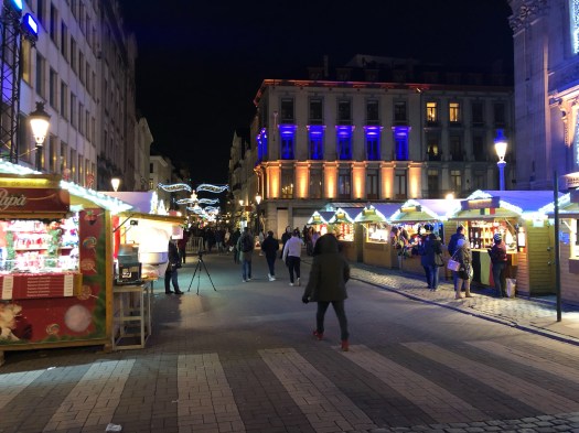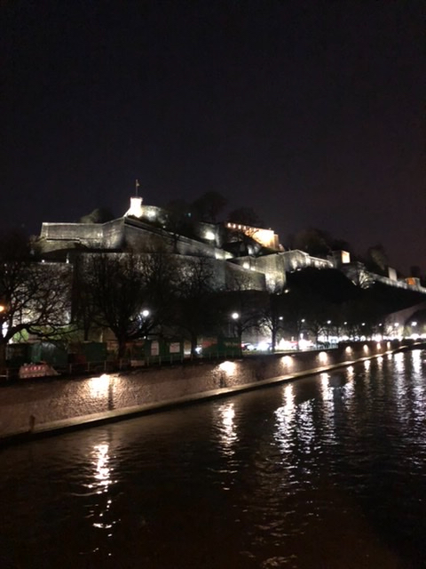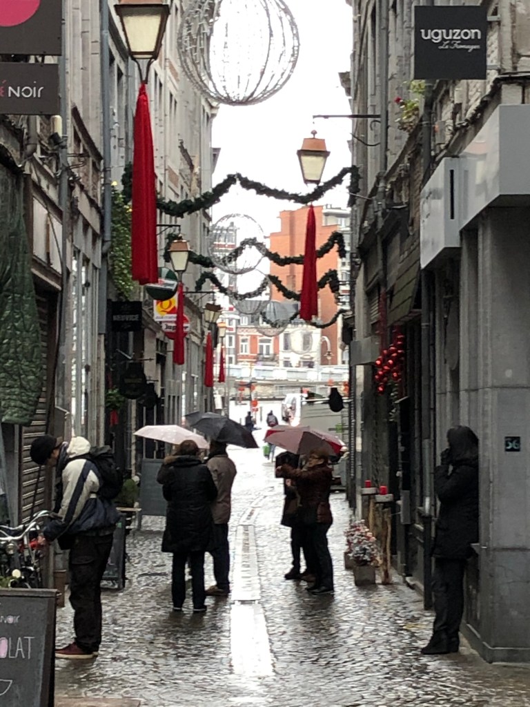 Despite the strikes, we managed to get a train to Brussels to see their Christmas market, then to Leige to visit theirs before finishing at Nemur’s market. In Brussels, we endured strong, bitingly cold winds to walk their small market and stayed overnight before traveling on to Leige. The town is very charming, laid out nicely with curving cobblestone streets. We traveled onto Namur and checked in to a stay on a houseboat. The hosts were very nice, serving a delicious breakfast the next morning before we explored the downtown. It is overlooked by the largest citadel in Europe – an imposing, grand structure.