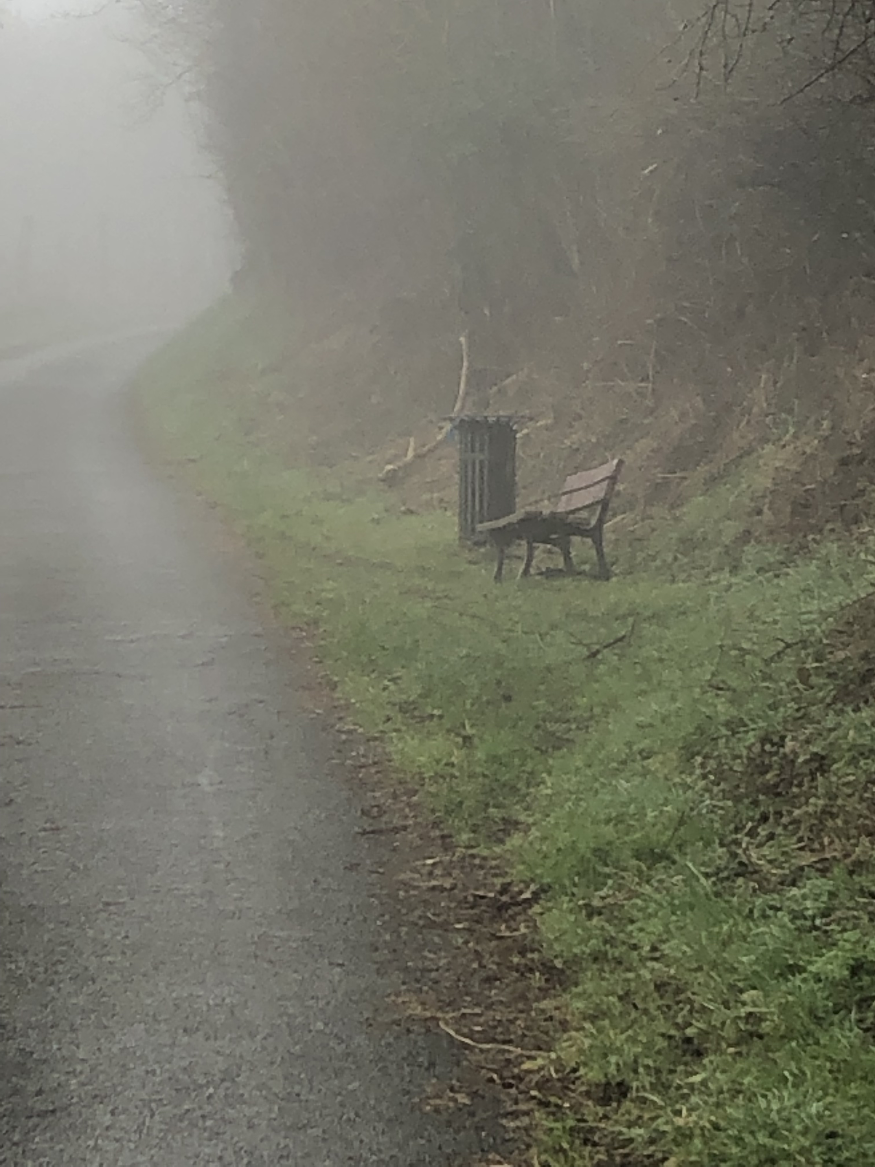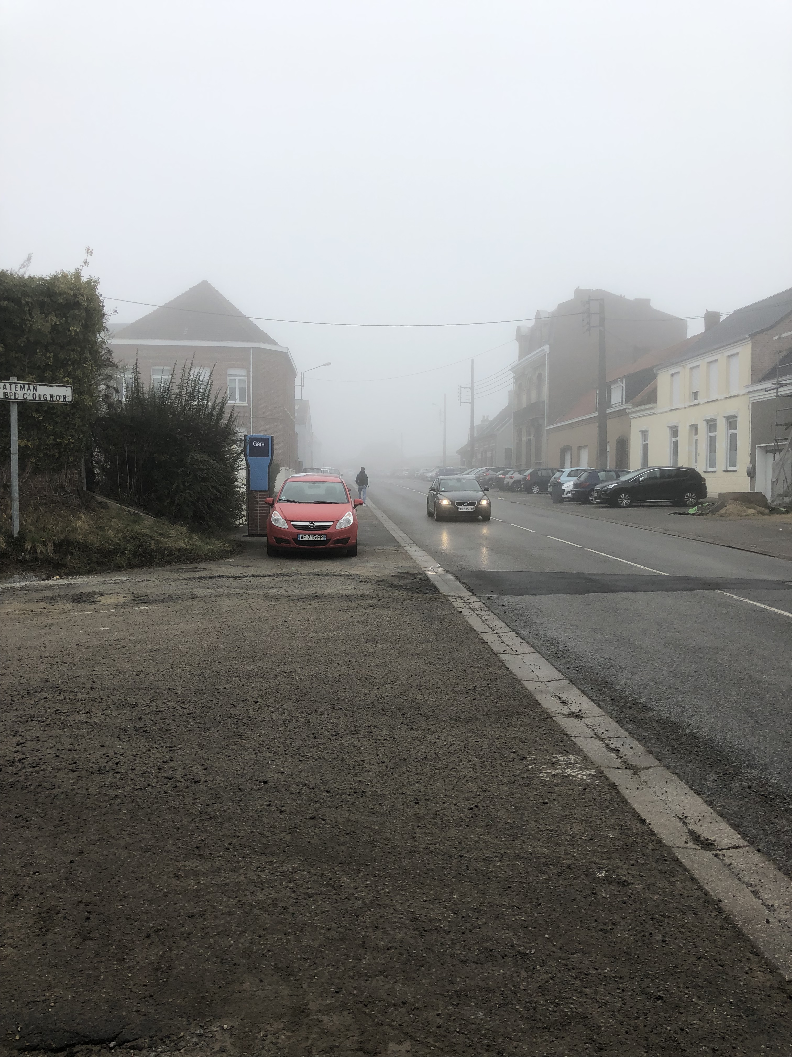 The next week, we decided to train to Cassel because it had been voted the most charming French village in the country. A 30 minute ride deposited us at a very small railroad stop on the outskirts of the town. It was a 35-minute walk to Cassel and would have been lovely if we could have only seen it. The weather app had predicted high 50’s to low 60’s, clear weather and we had dressed accordingly. What greeted us was a fog so thick you could not see more than 30 feet ahead, and a wind chill factor that brought the temperature to the low 40’s.