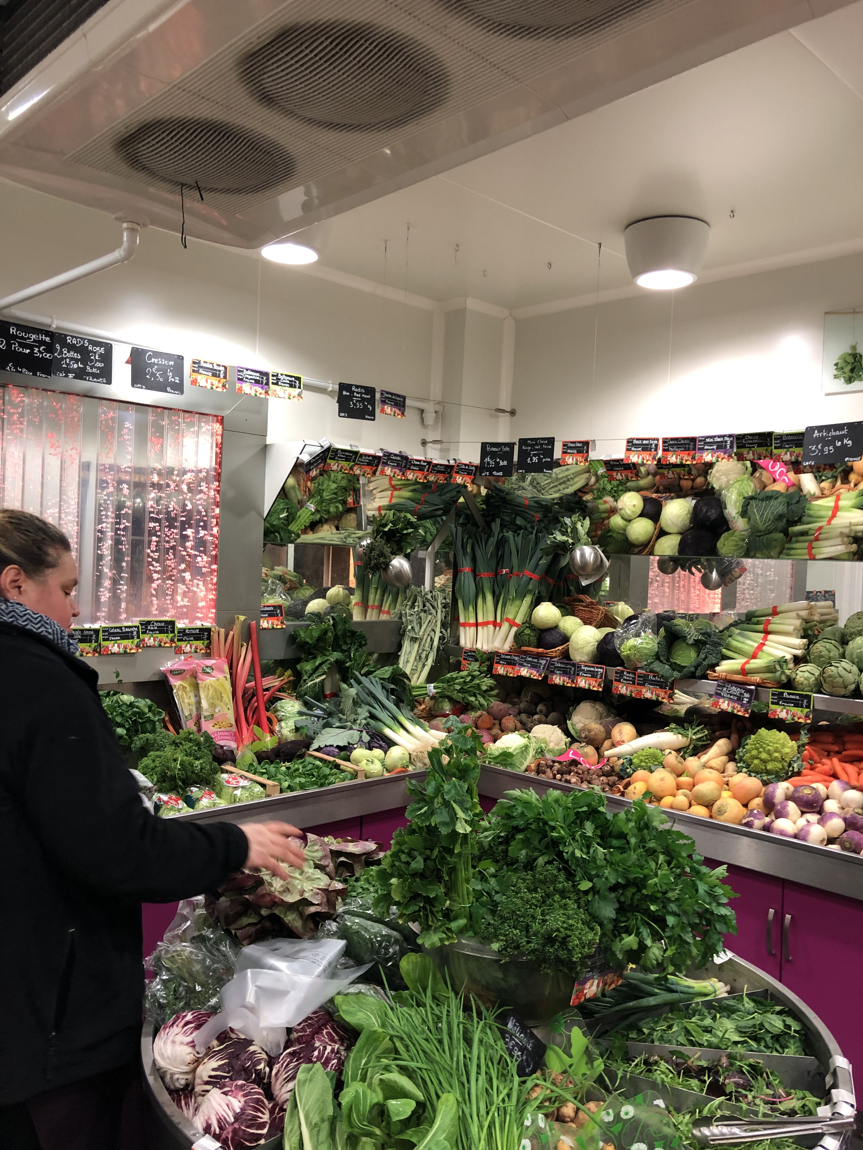We’ve already commented on how fresh and fresh-tasting the food is here. It isn’t that the produce is amazing (well, generally it is) but it just, truly, has a better flavor. My example of carrots is perfect. We’ve yet to find a fresh one that is bitter. We’ve developed a preference to taste food at it’s optimum. And grocery shopping? Yes, we stop almost every other day because with the shops right on our street, fresh is on hand. There is a fresh fish section in the large grocery store, which is as fabulous as the dairy sections. We buy our vegetables and fruit at a shop that only carries those items.