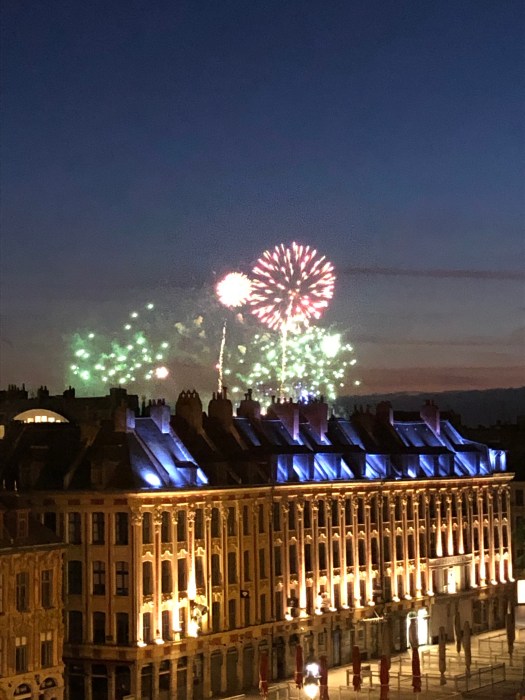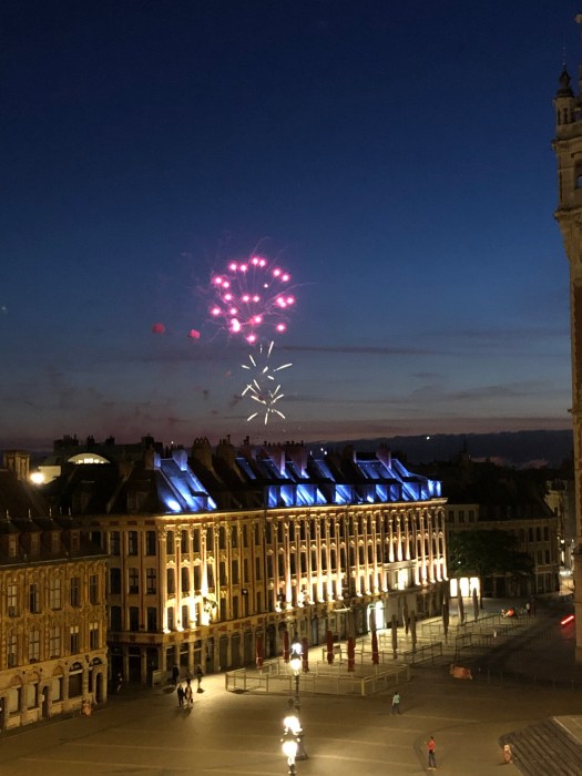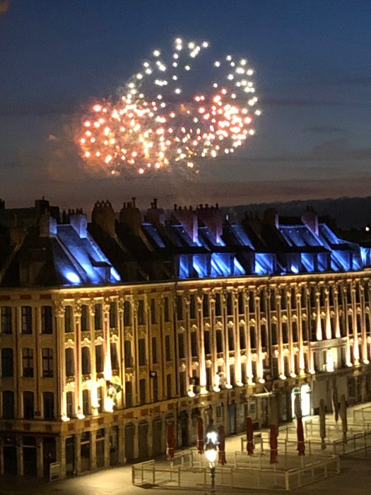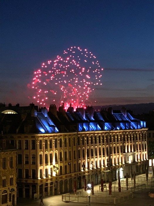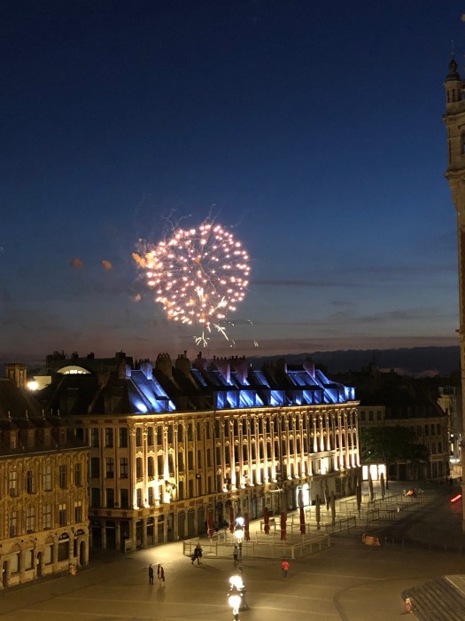 But la Fête Nationale (Bastille Day) was very different in Lille than in Paris. Last year, in Paris, le quatorze juillet (July 14th) was an all-day event, filled with crowds celebrating in every part of town, much like the 4th in the states. Here in Lille, the streets were relatively quiet during the day, although we did see fireworks in the evening from the balcony, toward the outskirts of old town.