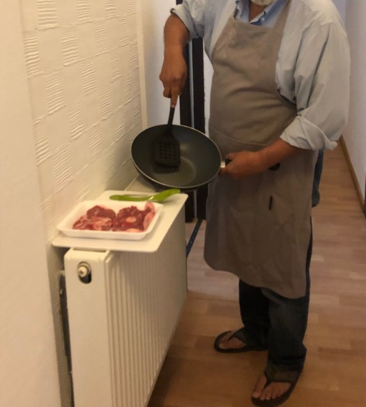 In dealing with a radiator that kept running in the hall because of a broken knob, even during the summer, we staged a picture of G cooking on it. Since Fabrice has such a great sense of humor, we sent him the shot, with the caption – “Wait! If you fix this, we’ll lose our second stove!” which he loved. But best of all, he came over to show us how to get subtitles working on our TV since all the screen instructions are in French. Whoo Hoo! Now we don’t rely only on the pictures during the news!
