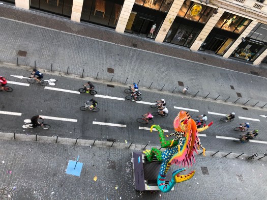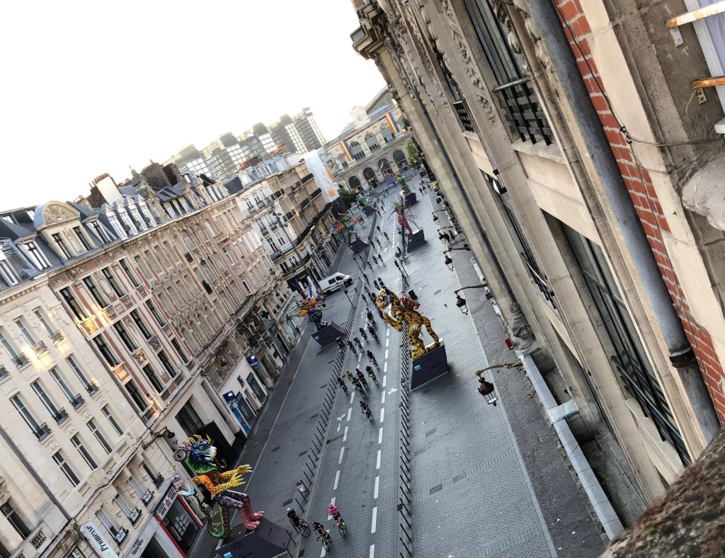 On the first of June week, Lille’s Gay Pride Parade took place starting at 7pm, winding down our street and around the corner. Load of colorful costumes, dancers, floats and music. We purchased small confetti and glitter cannons, shooting them off to add to the chaos of the parade as the huge crowd passed our balcony. It was a terrific spectacle and great fun.
