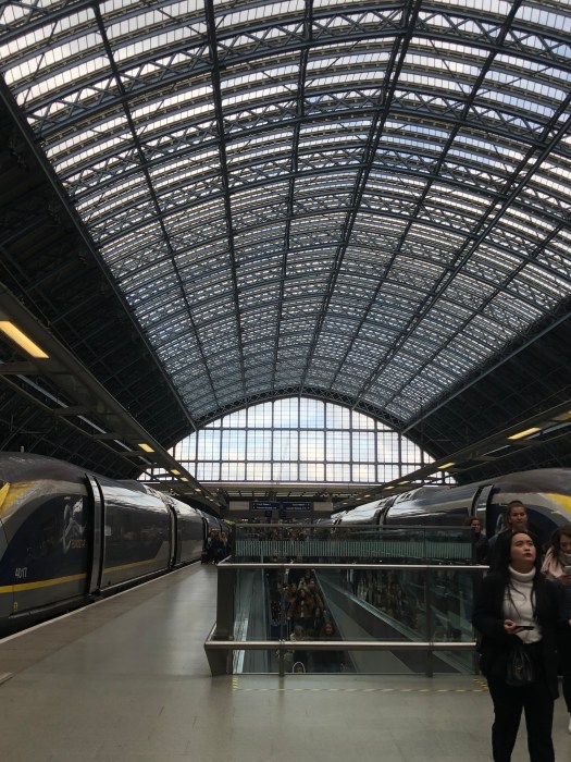 I ordered an ankle brace online, bought a cane at the pharmacy and off we went by train to St. Pancras Station.