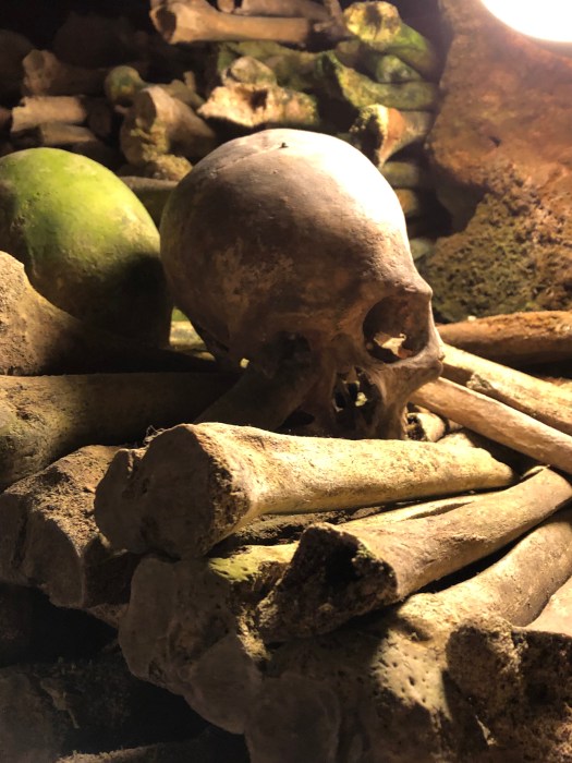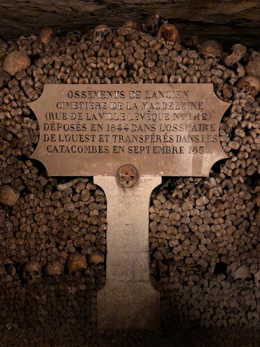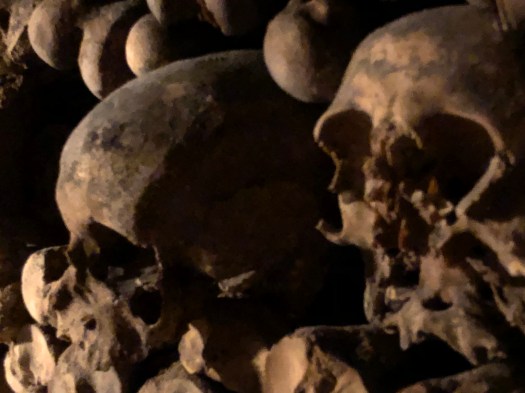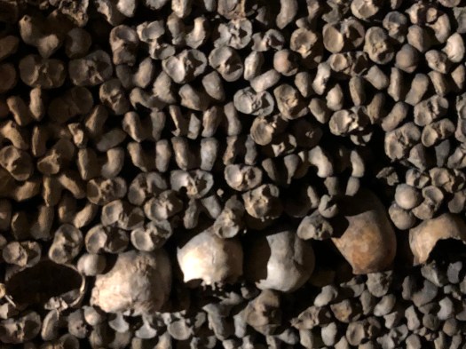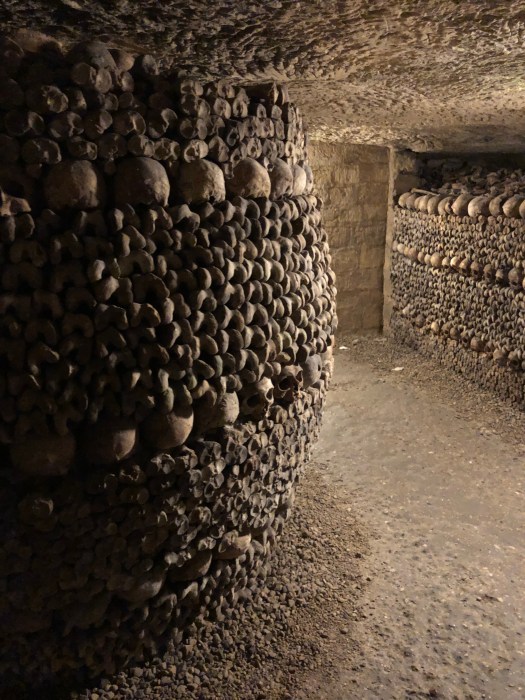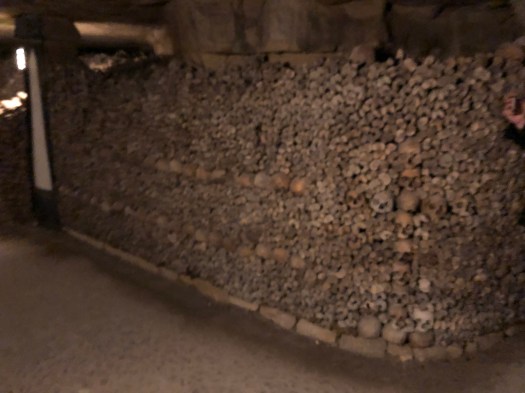 The next day in Paris, G and I went to the hardware stores in search of screening material for our mosquito problem but they did not carry anything that addressed the issue. We met the girls at the Catacombs for a tour and climbed down to the cool caverns to view the largest stack of bones we are (hopefully) ever likely to see in our lives. The history behind the caverns was intriguing and the unhurried walk not as claustrophobic as one would think.