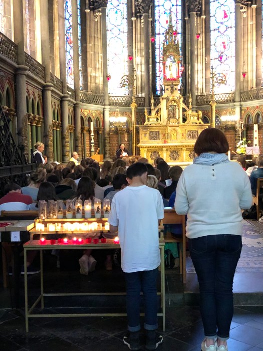 That night, the change of seasons brought an onslaught of mosquitos. No screens on any of the windows. There are blogs and forums online about why the French residences do not have screens. The French joke is “Why put up screens? How will the flies get out?” The next day the girls got up and all were covered in mosquito bites. We gave them what anti itch medication we had. After breakfast, which we set out for them, they left that morning for a trip to Ghent.