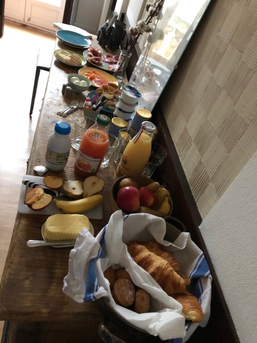 We put out a traditional French breakfast buffet for them in the mornings, that they absolutely loved. We had fresh daily croissants, beignets, yogurts, fresh pears, apples, cheeses, cold meats, salmon, hardboiled eggs, jams, fruit juices and coffee. With G they went out to see the Sunday farmers market and the Lille Notre Dame.