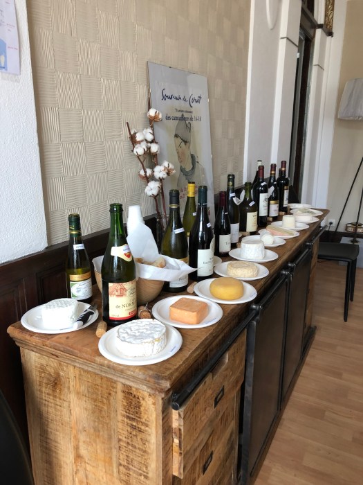 And as it was Sunday, the rest of the town was closed. While they were out, I put together the 13 French regional cheeses and wines, all labeled. We noshed and talked all afternoon. They enjoyed it tremendously and were extremely complimentary of the display.