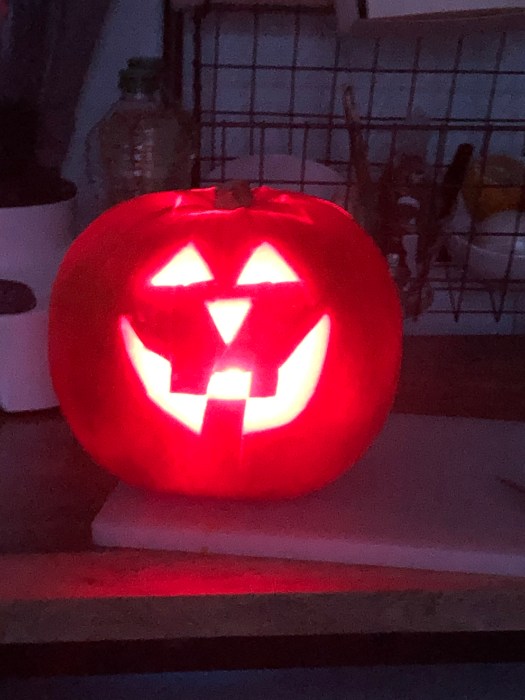 Next on our calendar was the big Mexican-style dinner which we had promised Flo and his family as a thank you for all of his help in our transition to Lille. It has been a year ago this month that we moved into this apartment, on the 28th, no small thanks to Flo. We had been preparing for some time by amassing all of the proper ingredients by way of the El Dorado markets that had come to town, during a trip into London, online orders and the April trip to California where we packed our return luggage with needed items as well. The last piece that fell into place was made possible by our California visitors, who brought (as we requested) Monterey Jack cheese. Such a variety of dishes and beverages took a bit of strategic planning, taking into account our small counter top oven and two nob stove. It was great to smell all of those food dishes again. As an aside, we’d come across large carving pumpkins at the local Marks & Spencer market, which we had not been able to find last year. I actually squeaked with delight when we saw them and carted one home immediately. When it came to carving it, G resoundingly wanted a ‘traditional’ face of triangle eyes, nose and a sparse, toothy smile. Being halloween lovers, it was terrific to have one again.
