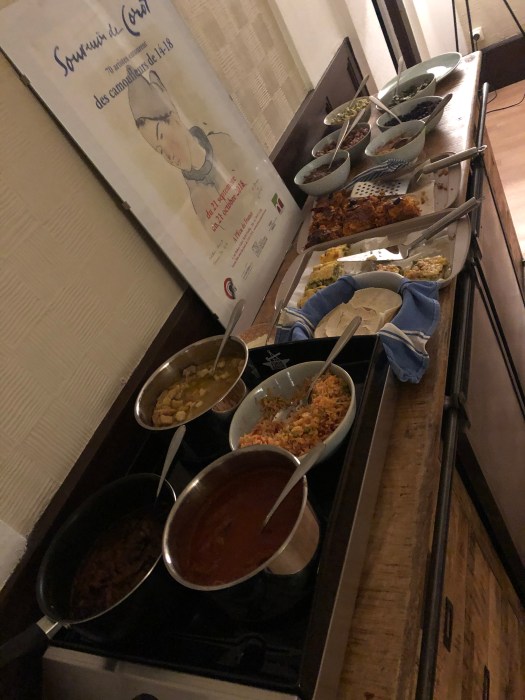 We now have a huge box of Leonidas chocolates (thank you Frederic and Sofie) and a plant (thank you Flo) that I will try to keep alive. OH- BEST OF ALL – Sofie can’t wait to have us over for her famous holiday meal with Foie Gras. She showed pictures of her cooking, which looked professional. I know we can’t compare. Our meals are not at all like this Mexican one (a year to gather and a week to put together) and from now on, they will be underwhelmed. Yep, LOL.