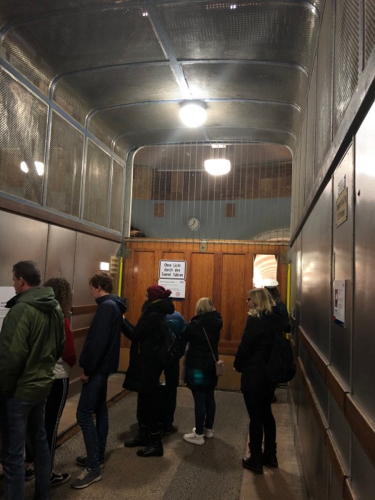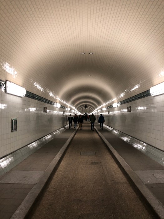 It was great to be able to get off and walk through an incredible engineering feat; The Elbe Tunnel, which is a 1,398 ft long walkway, 80 ft under the Elbe river which opened in 1911. It has four huge lifts on either side, which allow for pedestrians, bicyclists and cars. It was too late in season to take in their famous fish market and we were reminded, as we walked through Hamburg, that it was non-tourist season for a reason. The wind was biting and icy cold but we were undaunted as we had come completely prepared.