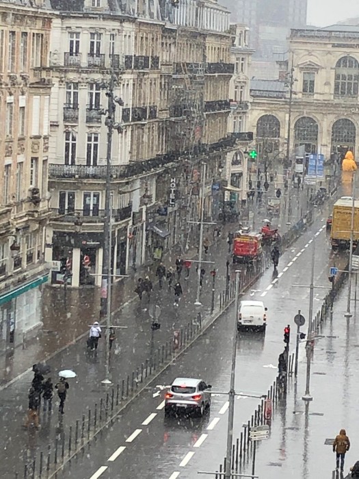On a lighter note, it’s the end of the month and today, big, fat flakes of snow are finally floating down on Lille. It’s simply a delight.