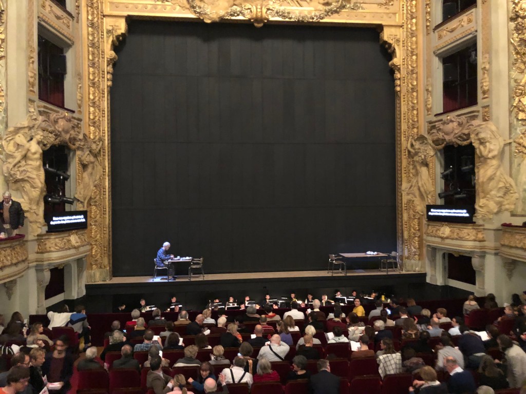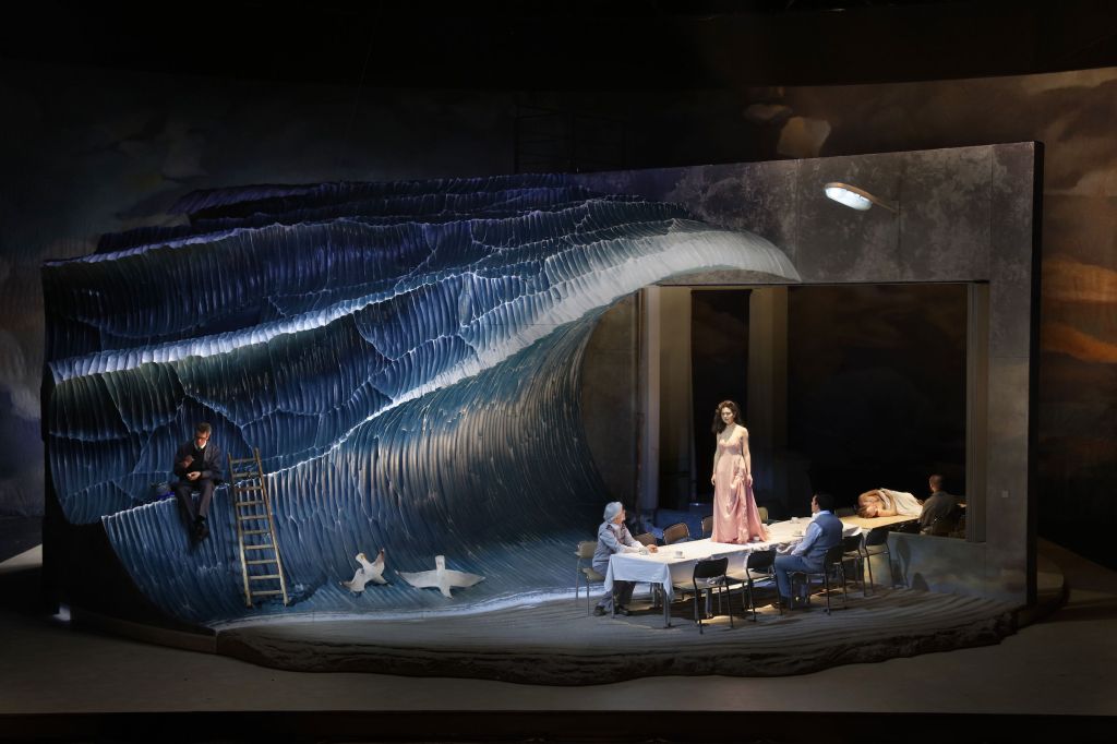It was imaginative but, but, but then. The music got a bit lost despite a great orchastration, the tenor and baritone duet really didn’t shine, the story arc with the nursing home angle, had them at various points, stripping the soprano completely nude, requiring her to climb out of her ‘old person’ suit and then later the baritone down to his white jocks (not a ‘briefs’ man), to climb onto a pulled out morgue cabinet shelf – just generally disconcerting. The best part – was the music of course, which the chorus carried well, even if some (not all) of the major pieces didn’t come across strong – the worst part was a scene at the end where the soprano and the tenor – neither young – had to don tethered harnesses – she climbing up this huge plaster wave, he climbing down the wave, practically sliding down on his belly (I really did close my eyes once, although I was sure they had done this many times) – to meet on the middle of it and sing their finale. I didn’t totally hate it but I was extremely disappointed.