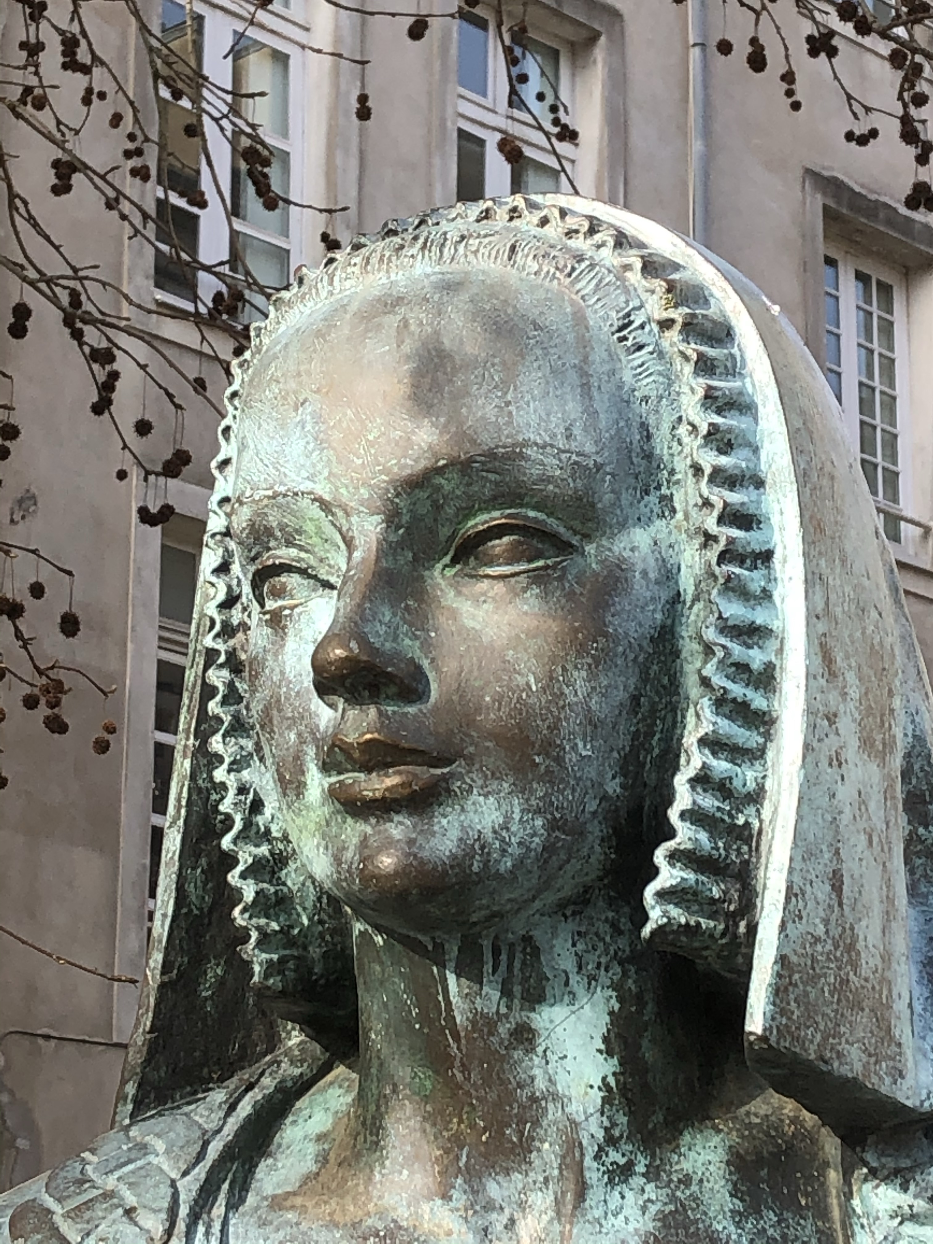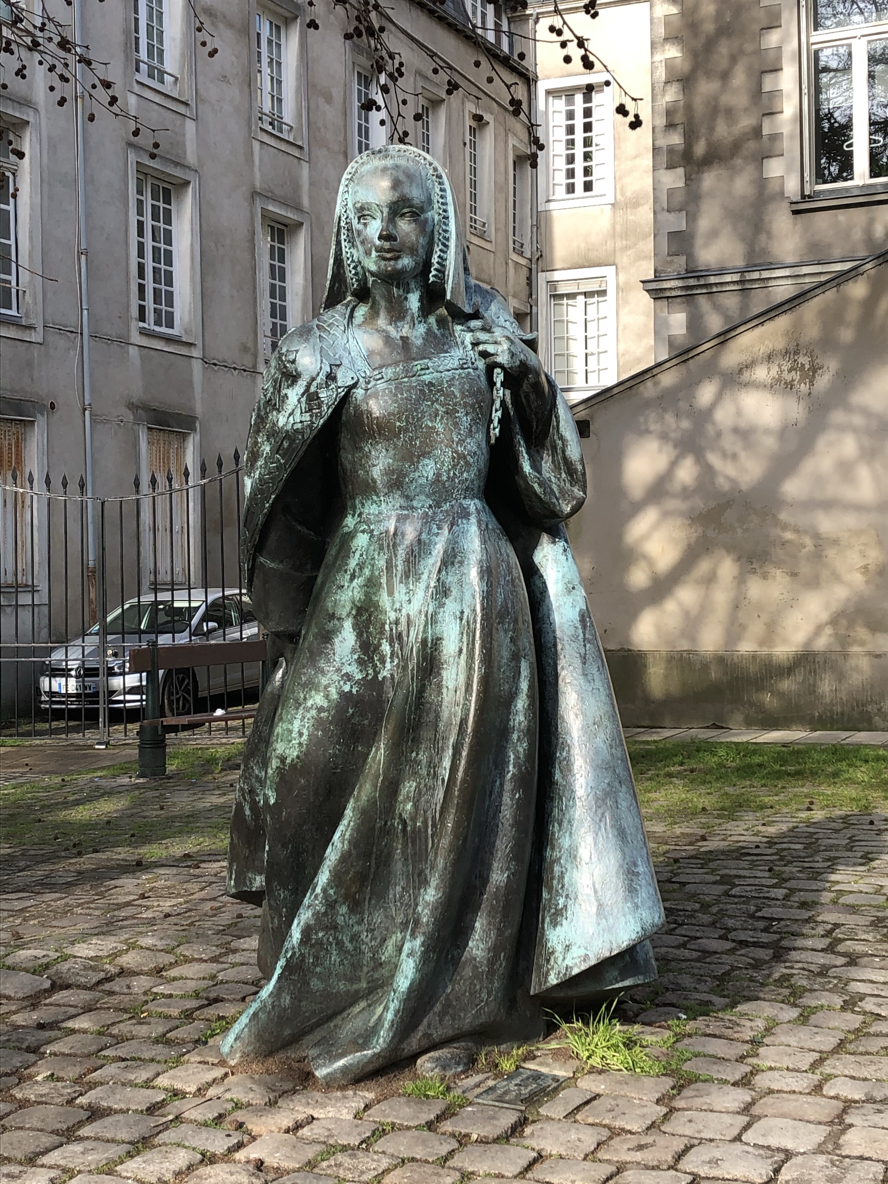 We also wandered most of the streets in downtown, window shopping and stopping for breaks. When we returned to the hotel, we asked about the possiblity of things being open in La Rochelle, as we were considering taking the train there the next day, on Sunday. Unfortunately being Sunday, the shops and most sights would be closed as well. Our decision then was to stay in Nantes on Sunday before returning to Lille on Monday. Sunday was a relaxing day of seeing statues and the landscape. The statue of the Duchesse Anne de Bretagne reminded us of a good friend, and when we texted her the photo, she reminded us that she had some Normandy heritage.