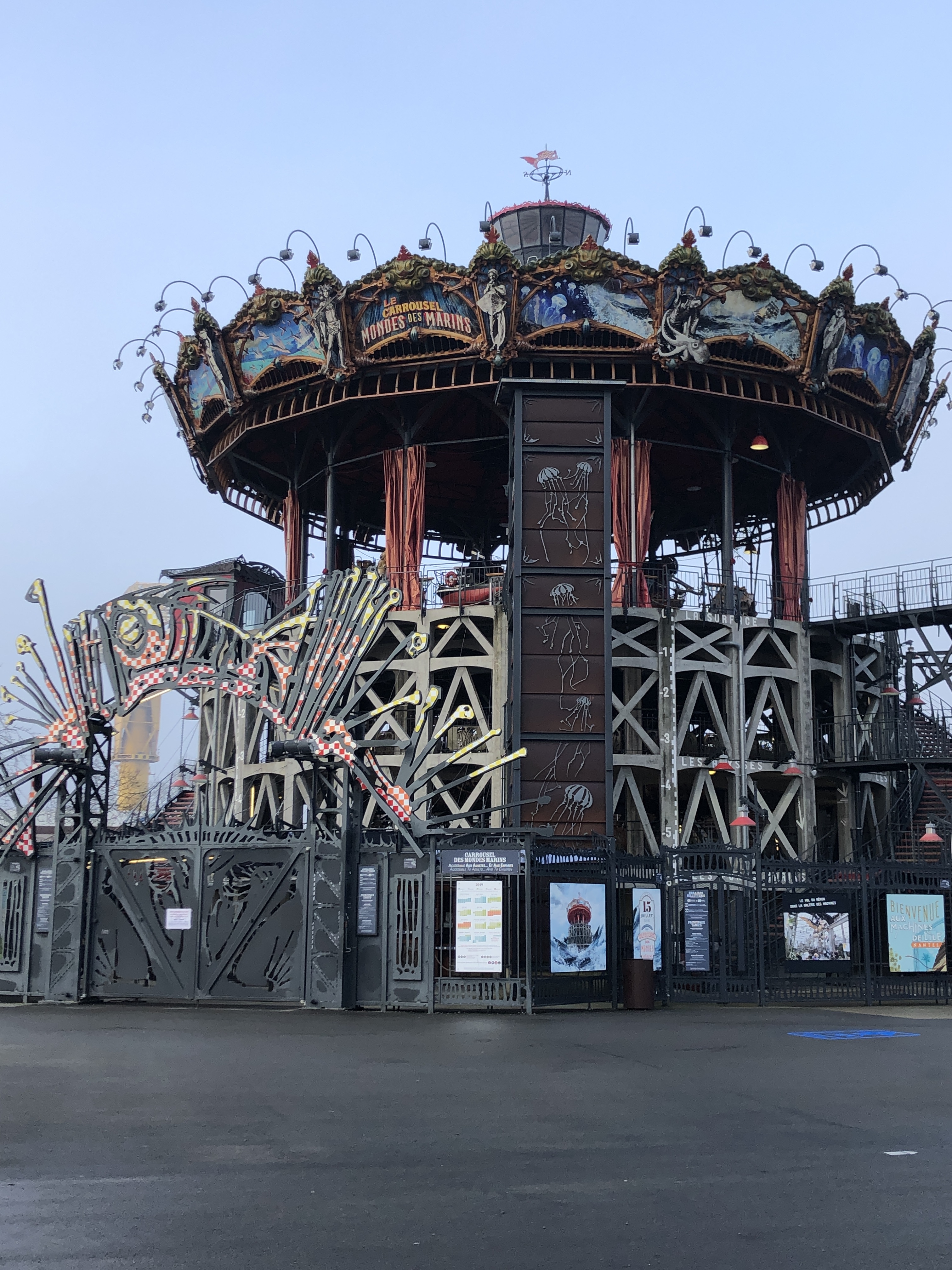 Back to Nantes – it is the sixth largest city in France, on the north-western seaboard, about 30 miles from the Atlantic coast. In our aim to see it in between tourist seasons, we somehow missed the fact that many things close down during January, for maintenance. We arrived on a Friday evening and Saturday morning decided to walked about a half hour to the Gallerie Des Machines and another half hour to the Jules Verne museum. The weather was great and we were unsure of the tram system. Unfortunately, they were both closed for the month, so we will clearly need to make another trip. The Machines are incredible and even sitting still, are mesmerizing so I’ve included a link: https://www.lesmachines-nantes.fr/en/.