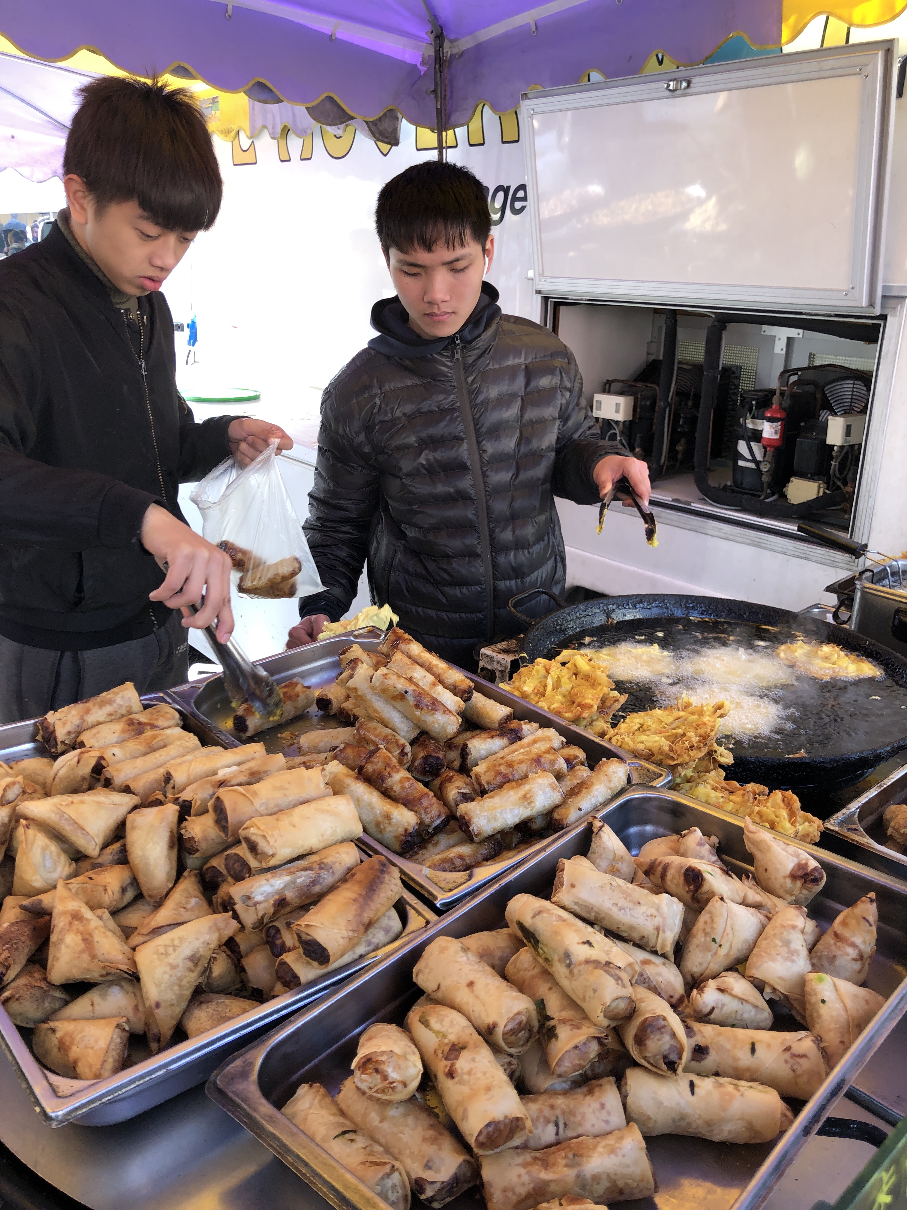 We returned to the downtown area and were delighted to run straight into a large outdoor market of both goods and foods. Since we’d seen few people in our walk and most places were shuttered, we were almost giddy to have this in our path.
