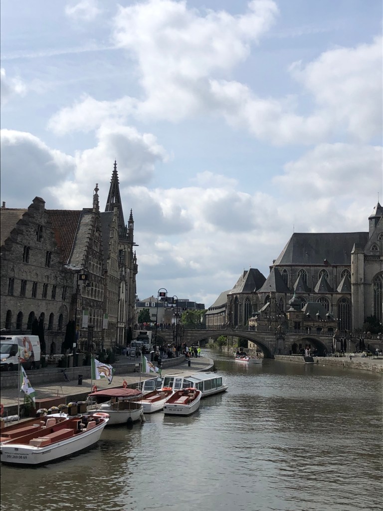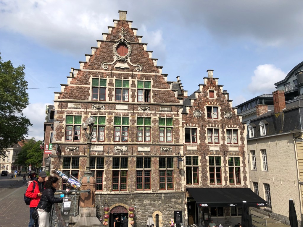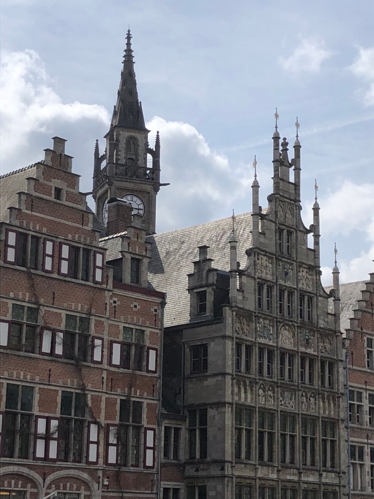 Next we took a train to Ghent early. We walked the streets, admired the architecture, which is quite different from Brugges and Lille. Did some shopping, stopped for a Belgian beer and lunch, did more looking and took the train home, arriving about 4pm. We had a pasta dish we had gotten from the Italian market for dinner, and watched the last of the British detective series. She really liked it – didn’t see the end of it coming. It was a good arc, a bitter sweet story between the two detective partners.