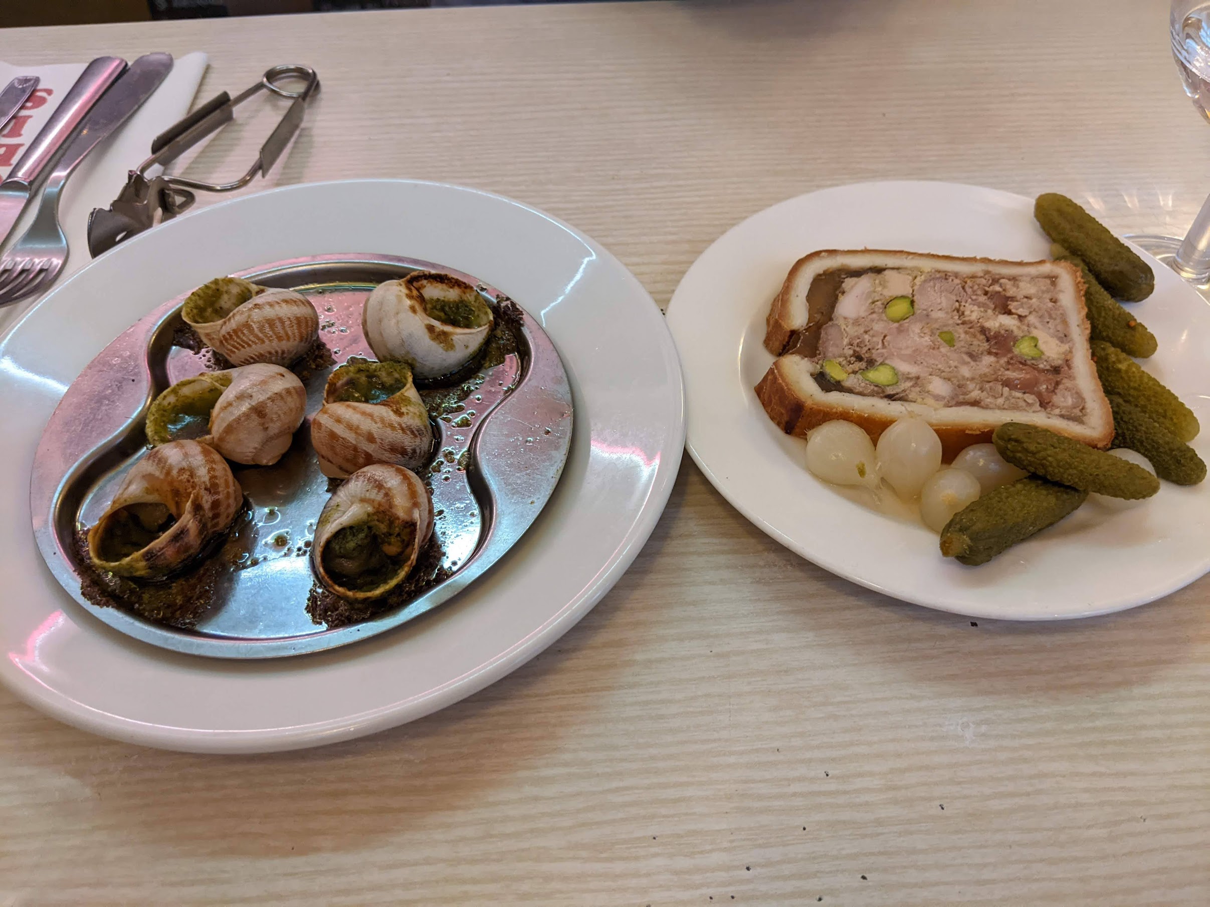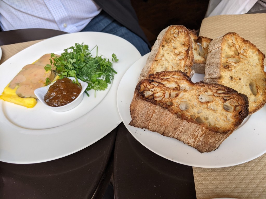 A ride service to the hotel – one room was ready so we parked all of our luggage, pared down what we needed for the day and went back out. We walked to a nearby cafe – the trick was to keep her awake and moving to avoid jet lag – so we had coffee and a fois gras appetizer to fortify.