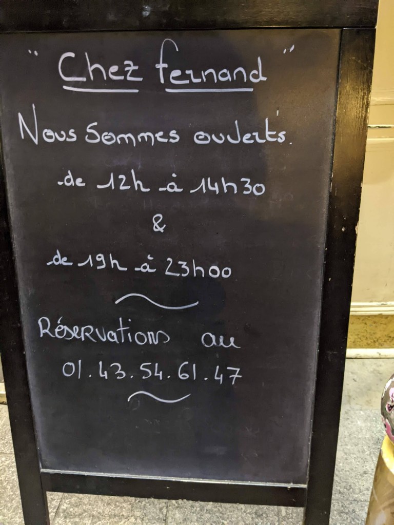 Then it was time to return to the hotel. We checked K into her (now ready) room and met the Retro Vintage Sidecar tour drivers outside at 6 pm. K was in one sidecar, I was in a second and G was sitting on the back seat of the driver of my side car. Off we went for a two hour ride through the streets and neighborhoods. We stopped at a point on the Seine, with the Eiffel Tower in the background, for a rest and a requisite glass of champagne. The drivers were two very personable guys, Max and Louis, who were kind enough to recommend a very local, small restaurant named Chez Fernand, for dinner. We changed our plans from our original pick to their recommendation and Louis even called his friend, Fernand the chef, to secure a reservation for us. Off again for more sights and finally they dropped us off directly at the restaurant.