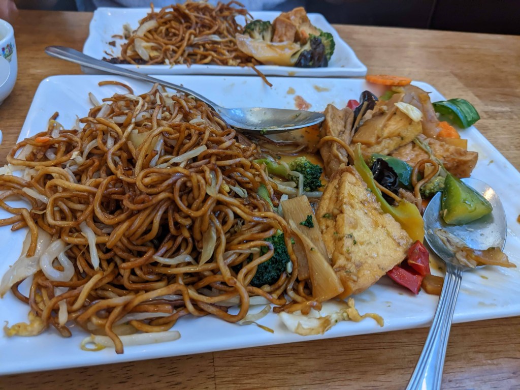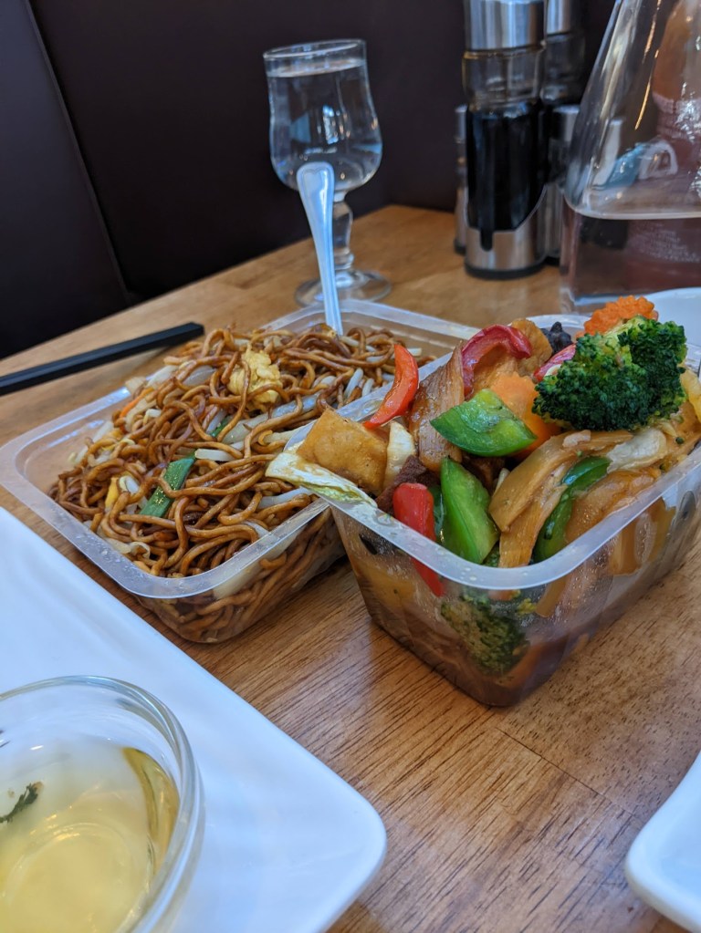 However, across the street, in plain sight was a Chinese restaurant and a bit later, K scampered over to get take out. While she was there, the theater sent an email canceling the night’s performance (due to staff Covid). No need for us to rush off anymore. She returned with a nice variety of dishes, which we ate leisurely – still talking and watching life outside of the window. It was a great way to spend a rainy evening. Finally with as much food and drink that either of us could fit in, I went back over and got soup for G and K and I bid each other good night. G was a bit awake when I arrived and could be talked into the soup without too much difficulty. When he went back to sleep, I worked a little on the computer before turning in myself. It was quite a day.
