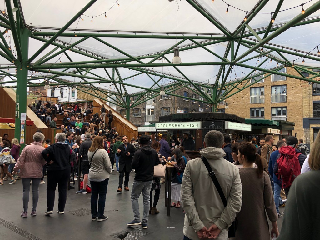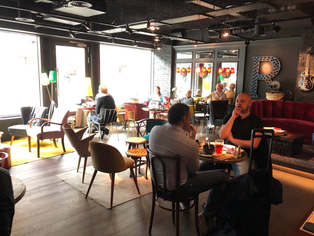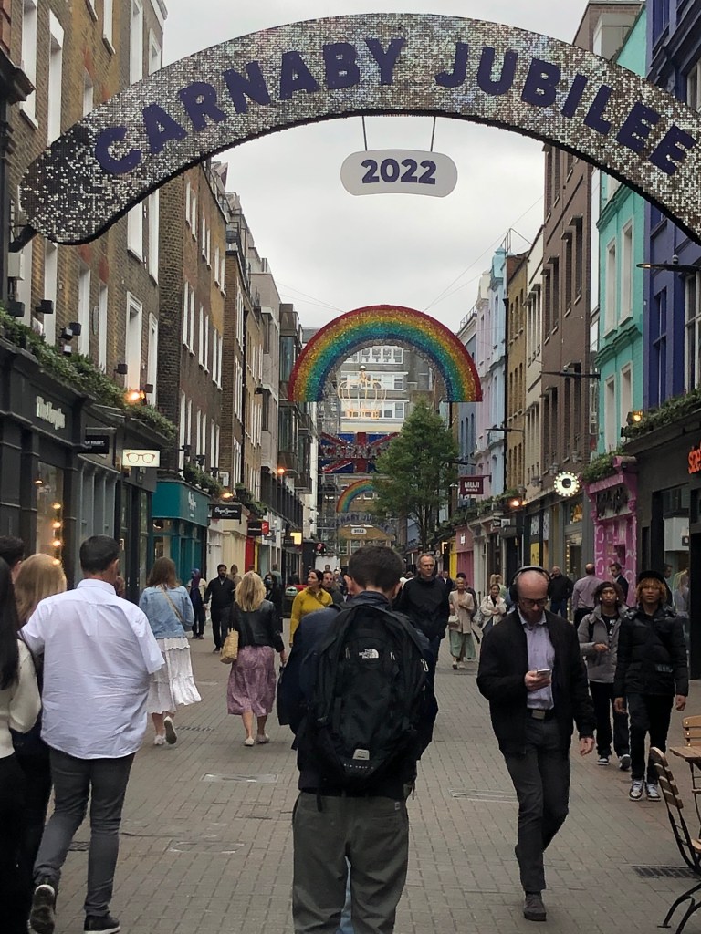 Landing at St. Pancras Station, there was some (not small) confusion on which of two trains to catch to the correct Tube station (Waterloo) that was located next to our hotel, the Ruby Lucy. G was very frustrated and was beginning not to feel well. The problem with the mobile phone batteries were extended to his hearing aids’ app which work with BlueTooth. It was an utter disaster trying to communicate. After quite a bit of bumbling about, we located the correct train and got to the hotel. On the street as we approached the doorway, there was a row of vendors selling street food, each tent more mouth watering than the next. We dropped off our bags at the hotel and metro’d to Oxford Street, walked the street shops and when we got to Carnaby Street, G needed tea and toast so we stopped for that. During this break he decided to return to the hotel because his stomach was in knots. Hadn’t happened since the US, before he retired. We always carry meds for it but of course, that was in our bags at the hotel.