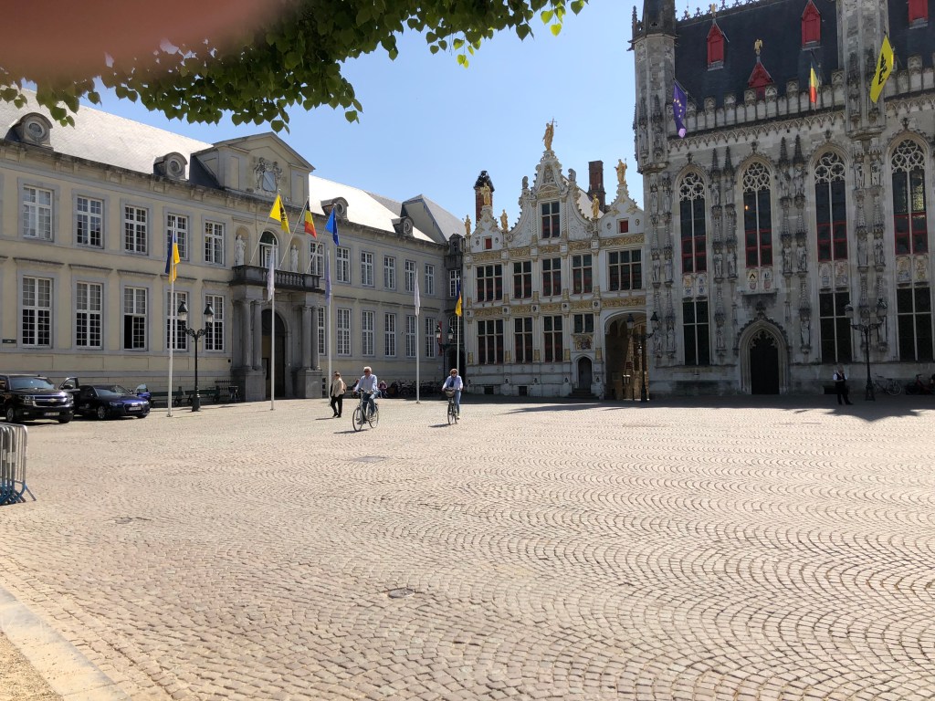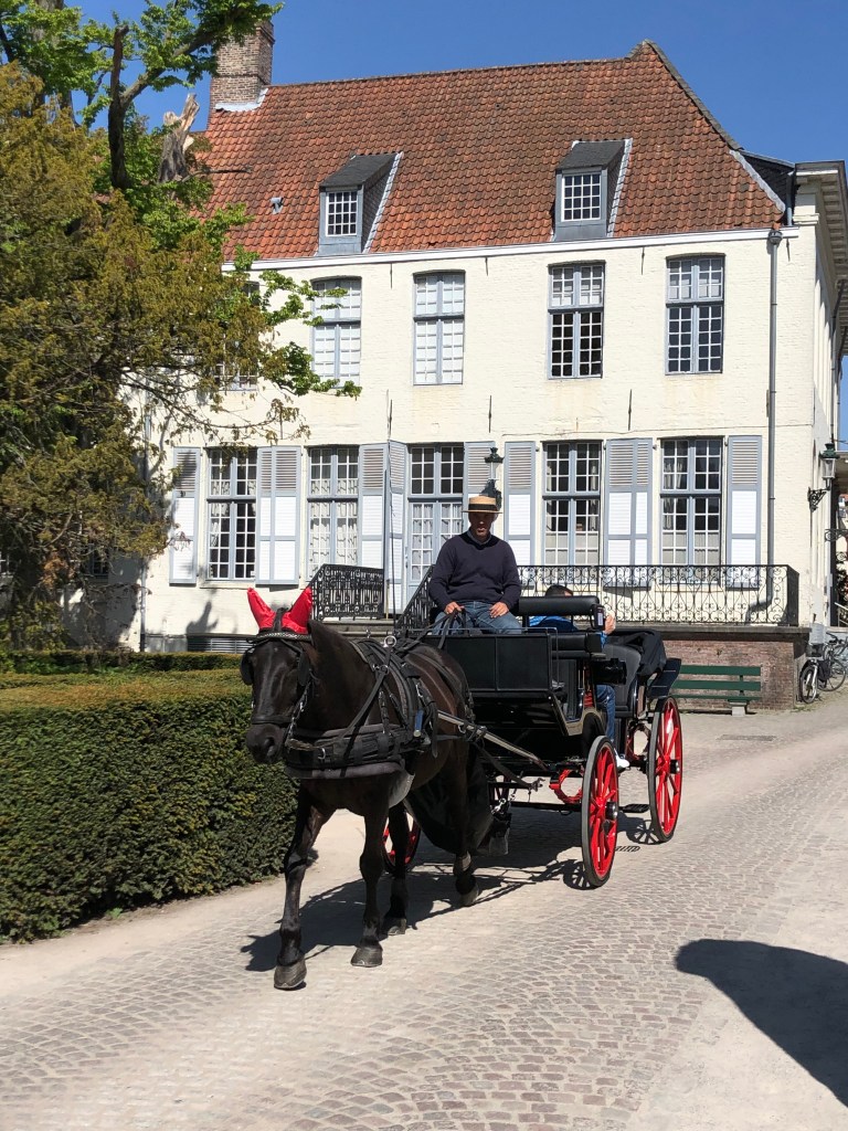 The next day we hopped the train to Bruges (Brugges), which takes about 30 minutes. She’d seen the film and had a hankering to see the city. Like most, it is extremely easy to walk though. We went from the station, toward the city center, going through a beautiful route of tree covered lanes. It was a lovely 8 minute walk to Minnewater (Lake of Love) and another to the Church of Our Lady (dated 1500), which has a Michelangelo sculpture of Madonna and Child. Walking past the square with the four horsemen sculptures and over the often photographed pedestrian bridge, we discussed going on one of the different canal tours but finally chose not to go.