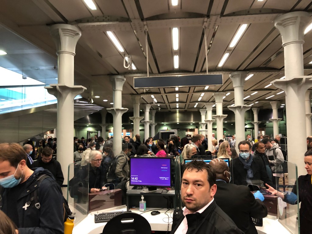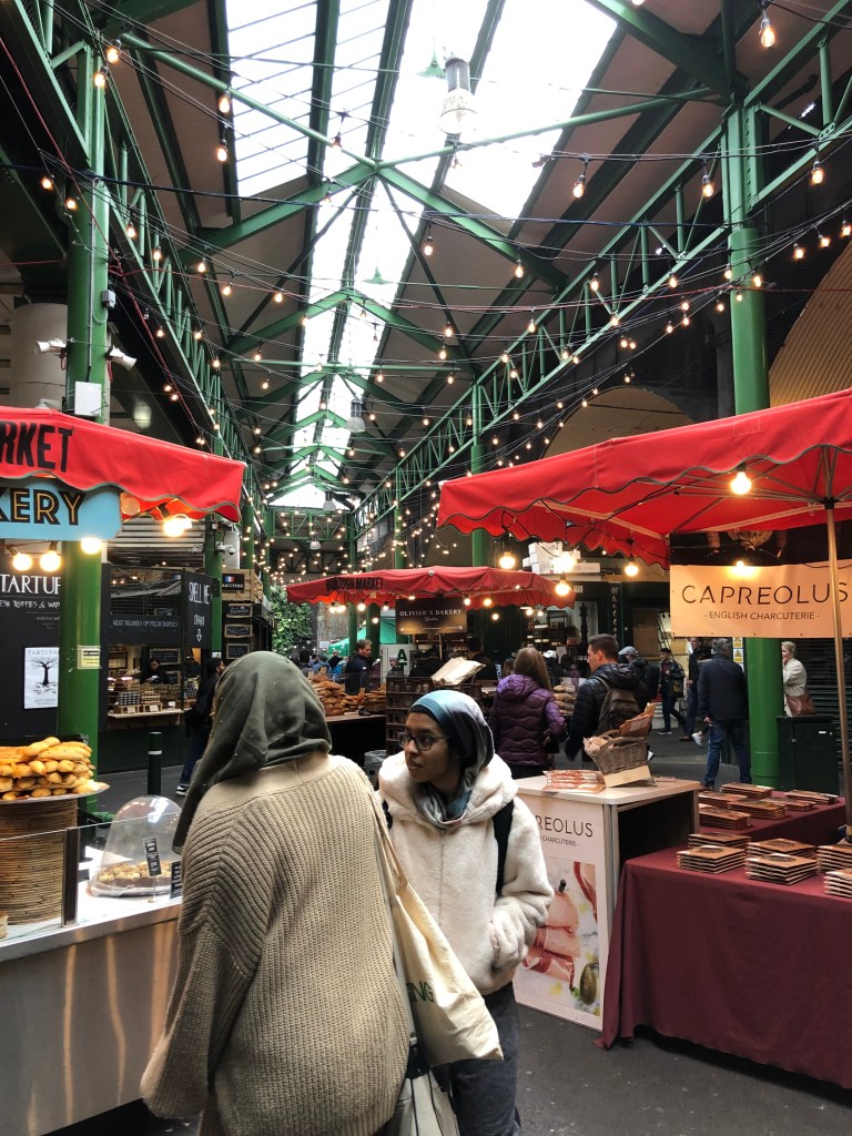 It had begun to rain when the London Eye ride was over so we took a taxi from there to Borough Market, which is a real foodie paradise. You could truly get anything you were looking for. Since the day had gotten colder and quite a bit more rainy, we opted for a tavern for lunch. I had a steak and ale pie, G had broccoli soup and K had chips and fish – seriously, a fish as big as her head. We took a taxi to the Waterloo station, stopping at a Marks & Spencer to see if we could take their wonderful, uncooked sausage on the train into France (it wasn’t allowed, since Brexit). Kat did pick up a round carousel biscuit tin that was for the Royal platinum jubilee and it was also a spinning music box, even though she was unsure as to how she was going to fit that in her luggage. We were dubious as well.