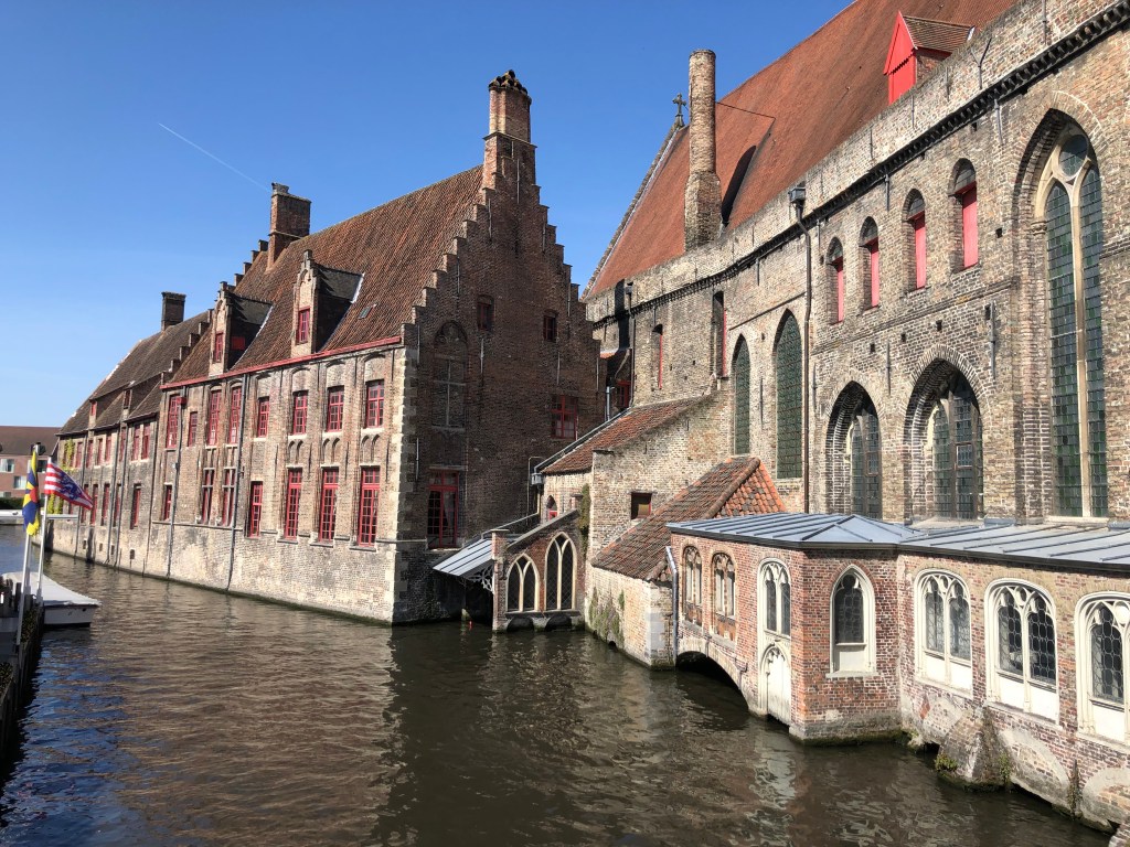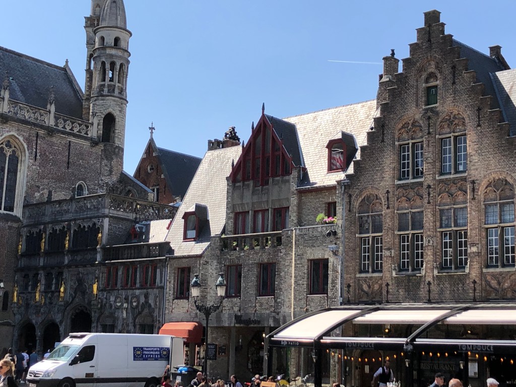 Further on, we reached the Old Town Grote Square, less than a 30-minute walk from the train station. The square houses several café umbrella’d tables and is surrounded by the town’s historic Gothic buildings. We identified the town hall, built in 1376, the Belfort Belfry (83 meters tall, 366 steps up to the top – and no, we didn’t do that), which had a fabulous bell serenade and the 12th century Basilica of Holy Blood. It was simply a medieval wonder. There were chocolatiers, lace shops and more breweries and distilleries than we could count. It was a lovely day that began to get too hot, when we stopped for beer (of course) and later, lunch. We headed back to the train station by 4pm, having bypassed going to the Torture Museum and the Groeninge Museum of Flemish Art. It made for a very light, pleasant outing that didn’t push us too far or fast. We needed to do that because the next day we were headed to London.