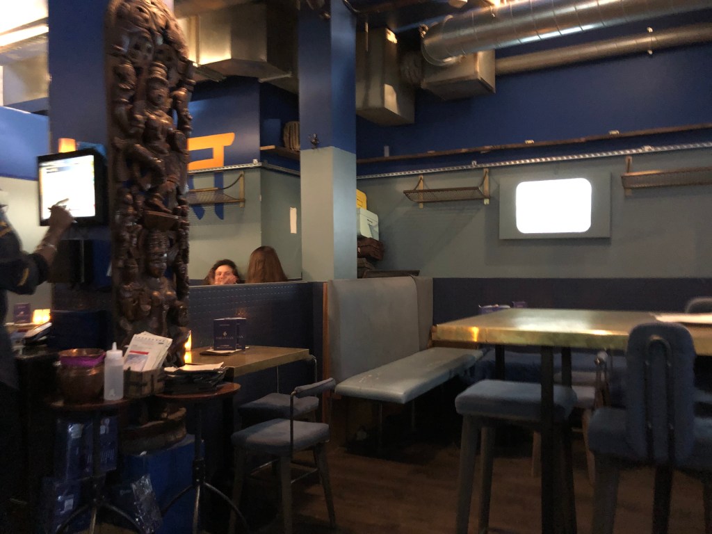 With time to kill before the evening play, I went back down to the lounge and ordered a cocktail. The theater was a 5-minute walk from the hotel and we had four hours, easily. The hotel was a boutique and the lounge was just adorable, with mismatched furnishings and funky artwork. K texted and I let her know where I was, she came down and joined me. We relaxed in the odd arm chairs in the corner window, people watched and discussed the world over our cocktails like we would at home. I with a gin and tonic, she with a Johnny Walker black label whiskey, with Nero d’Avola red wine, cherry and orange oil, called Persephone’s Kiss. As odd as it sounds, it was actually rather tasty. As we relaxed, we noticed the street food vendors folding up and we both commented that it was a shame they weren’t available for dinner.
