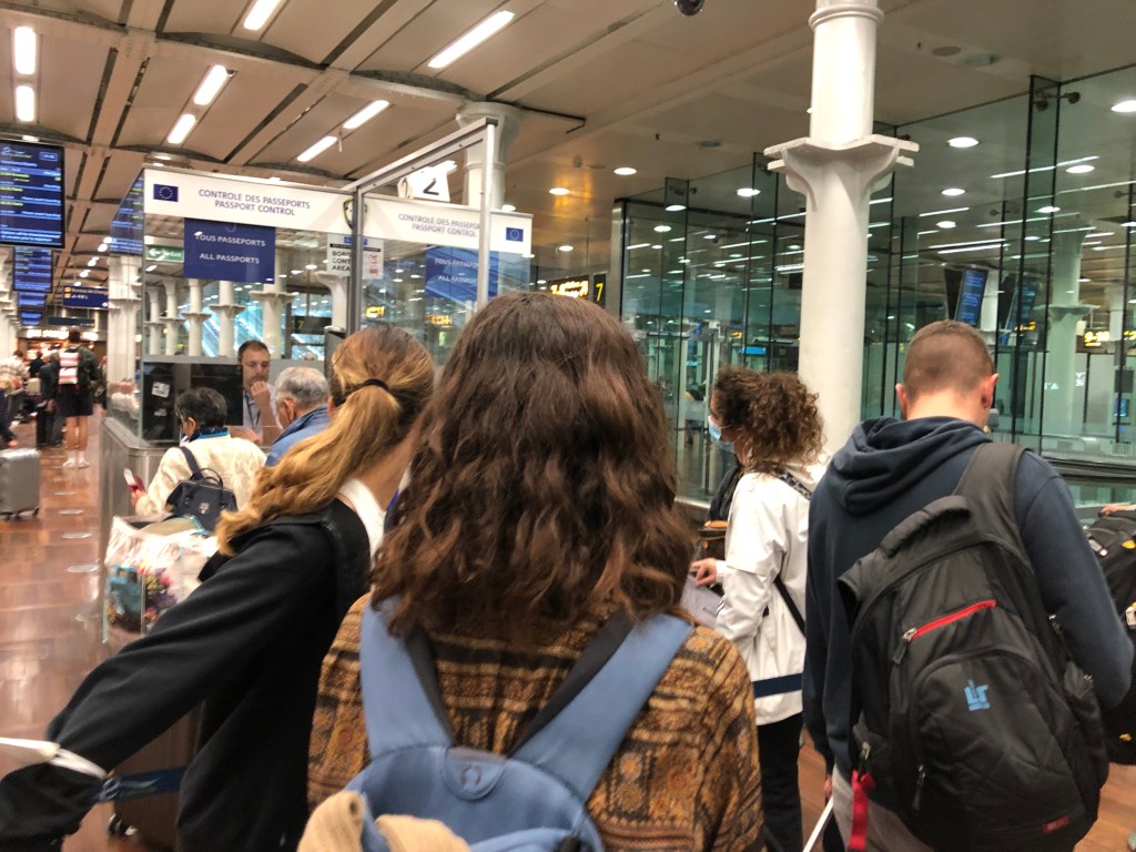 Found the right terminal and the exit gate for passengers. There was a cafe right next to it, so we had coffee while we waited. As soon as K landed, we texted each other through her progress to the exit. Gotta love technology when it works! It only took her a half hour from disembarking, through customs, to picking up her luggage and getting to the exit. A pretty straight shot. And how great it was to see her masked face! She had never seen Paris or any of France and had a few things on her ‘bucket list’; She wanted to see the monuments, she wanted to go to the Louvre and she wanted to get a real feel for Paris. In two days.
