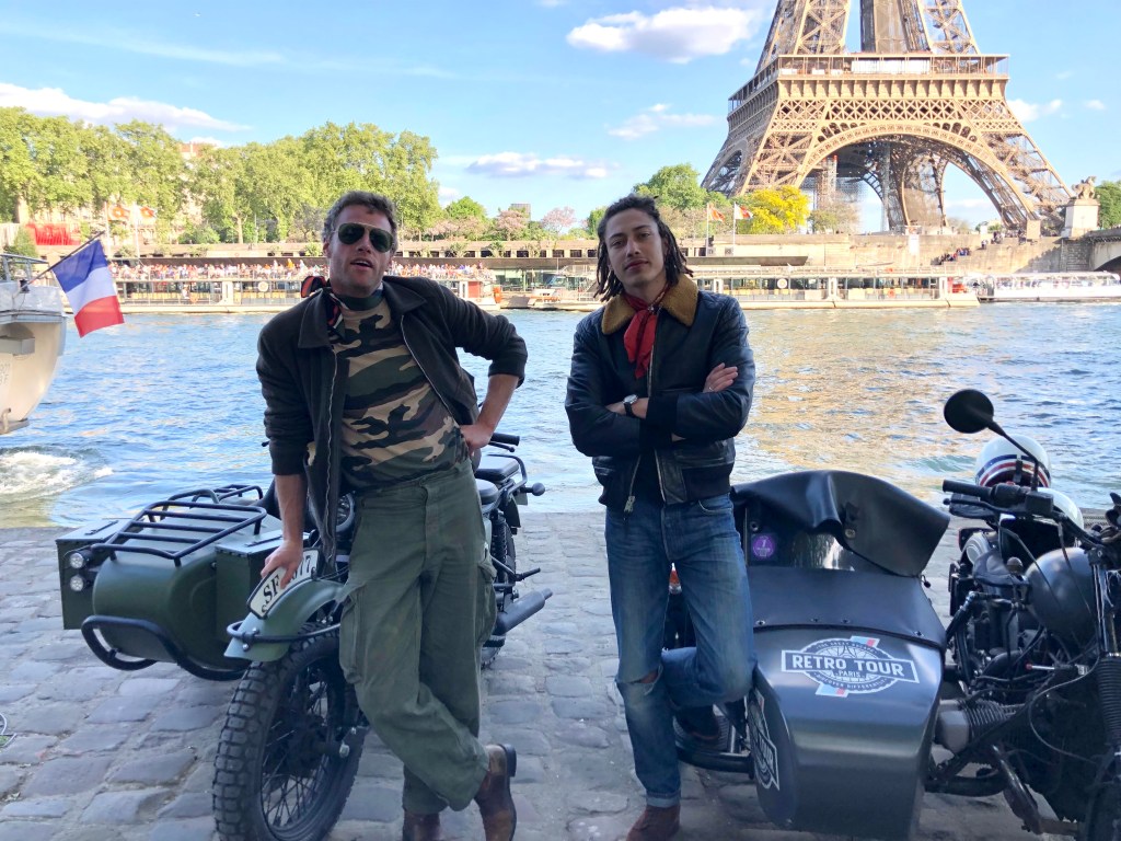 It was just as promised. Small, quiet – the chef met us at the door. Nice fellow who got his picture taken on one of the motorcycles before we all headed in. The meal was sublime and all dishes offered were decidedly French. K had bone marrow on toast and a green bean salad, G had a tongue dish accompanied with mashed potatoes and I had the beef bourguignon. All were absolutely delicious. K was practically swooning. Back to the hotel, we were tucked in by 10:30 and ‘mission accomplished’. She stayed awake all day and was set to have a solid, good night’s sleep. Riding a sidecar in Paris is like biking in Lille – the cobblestone is tough on your backside. But it really worked to keep her awake.