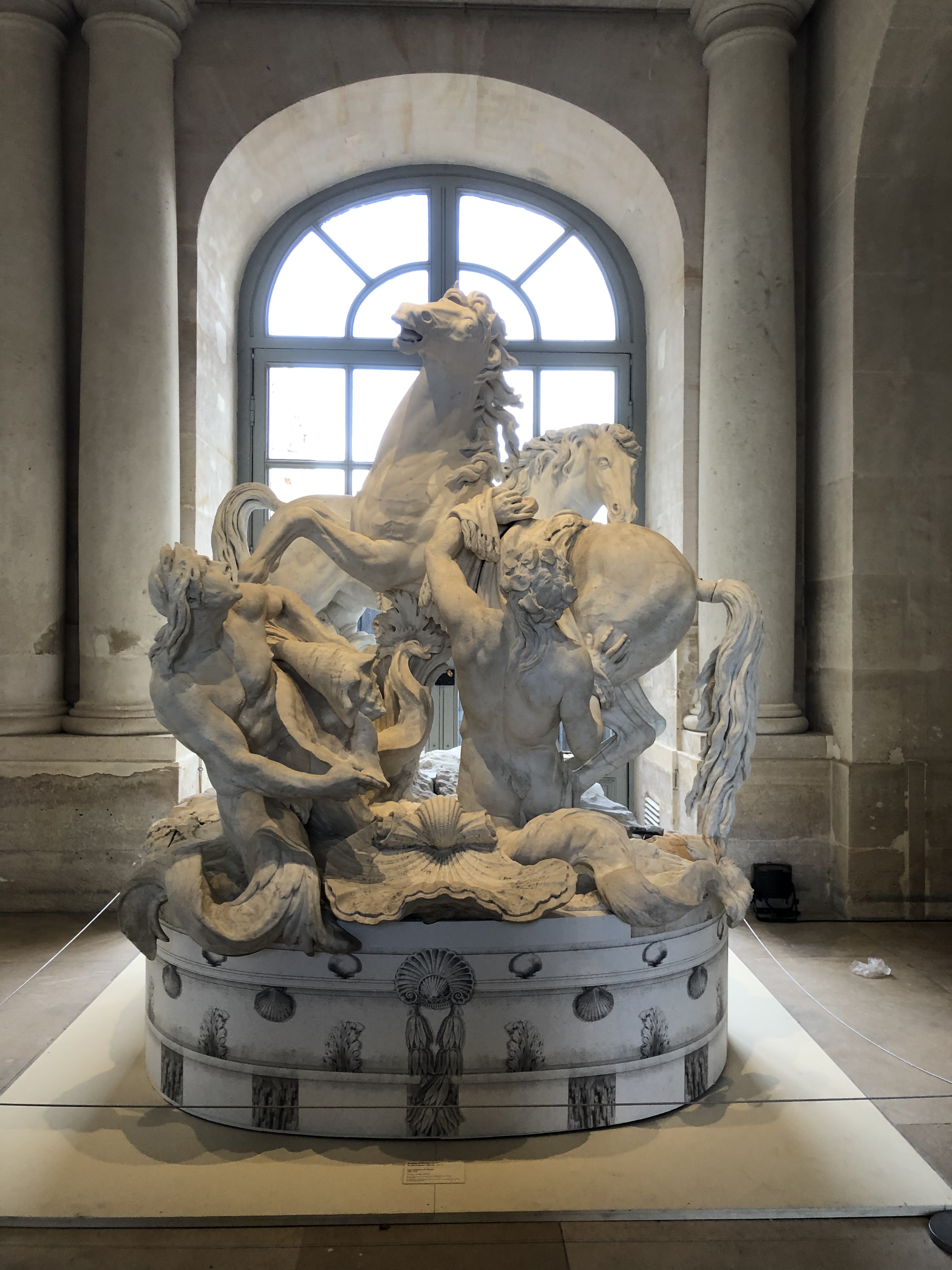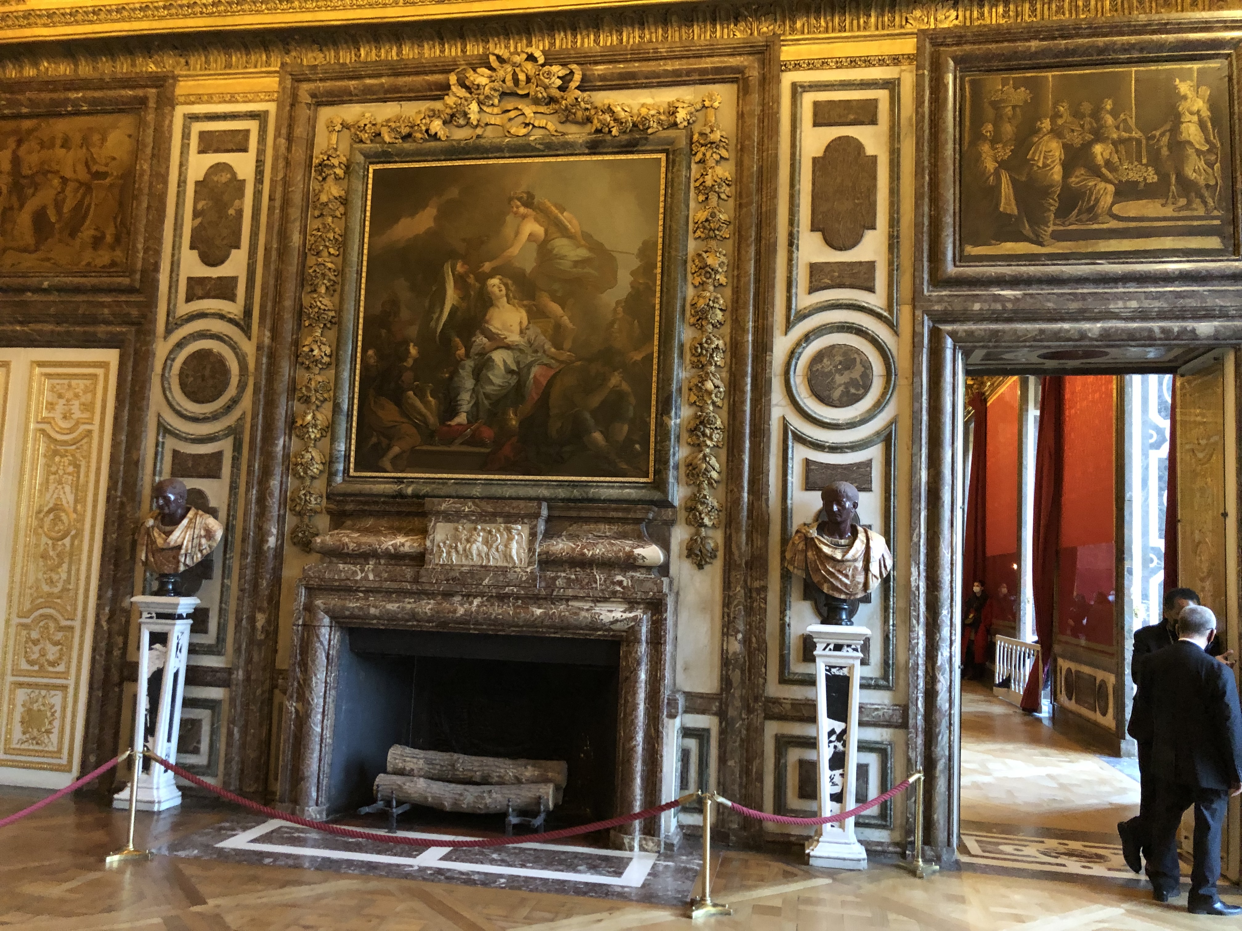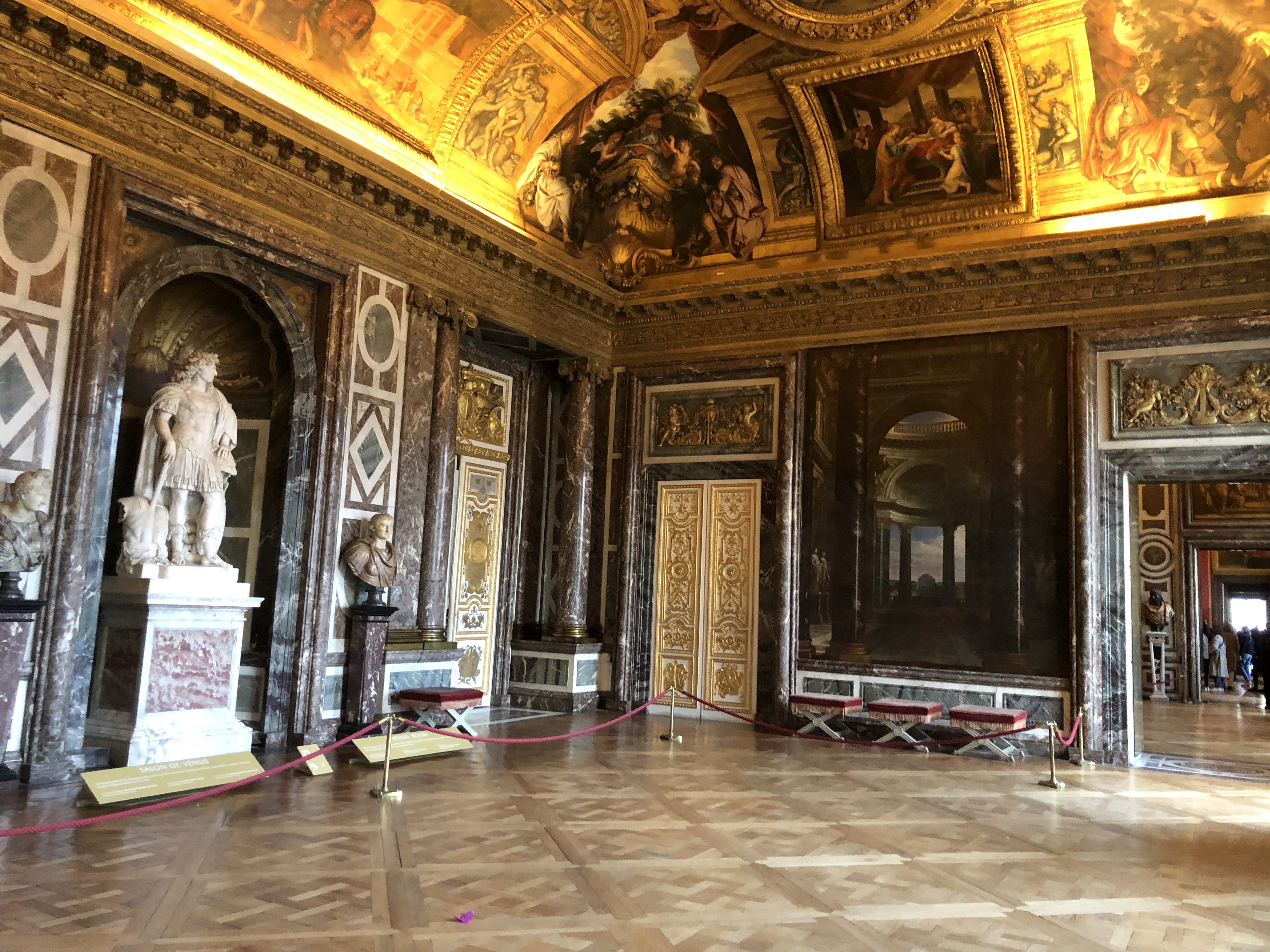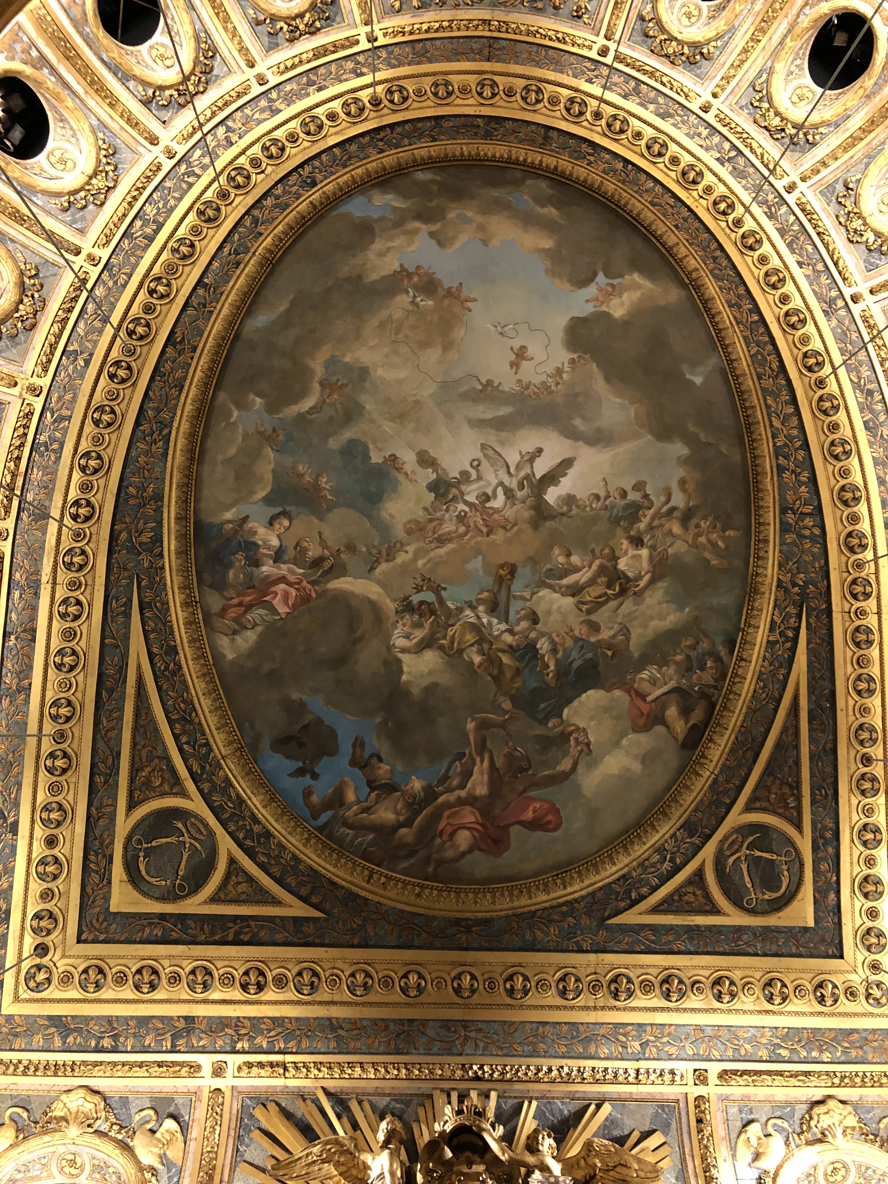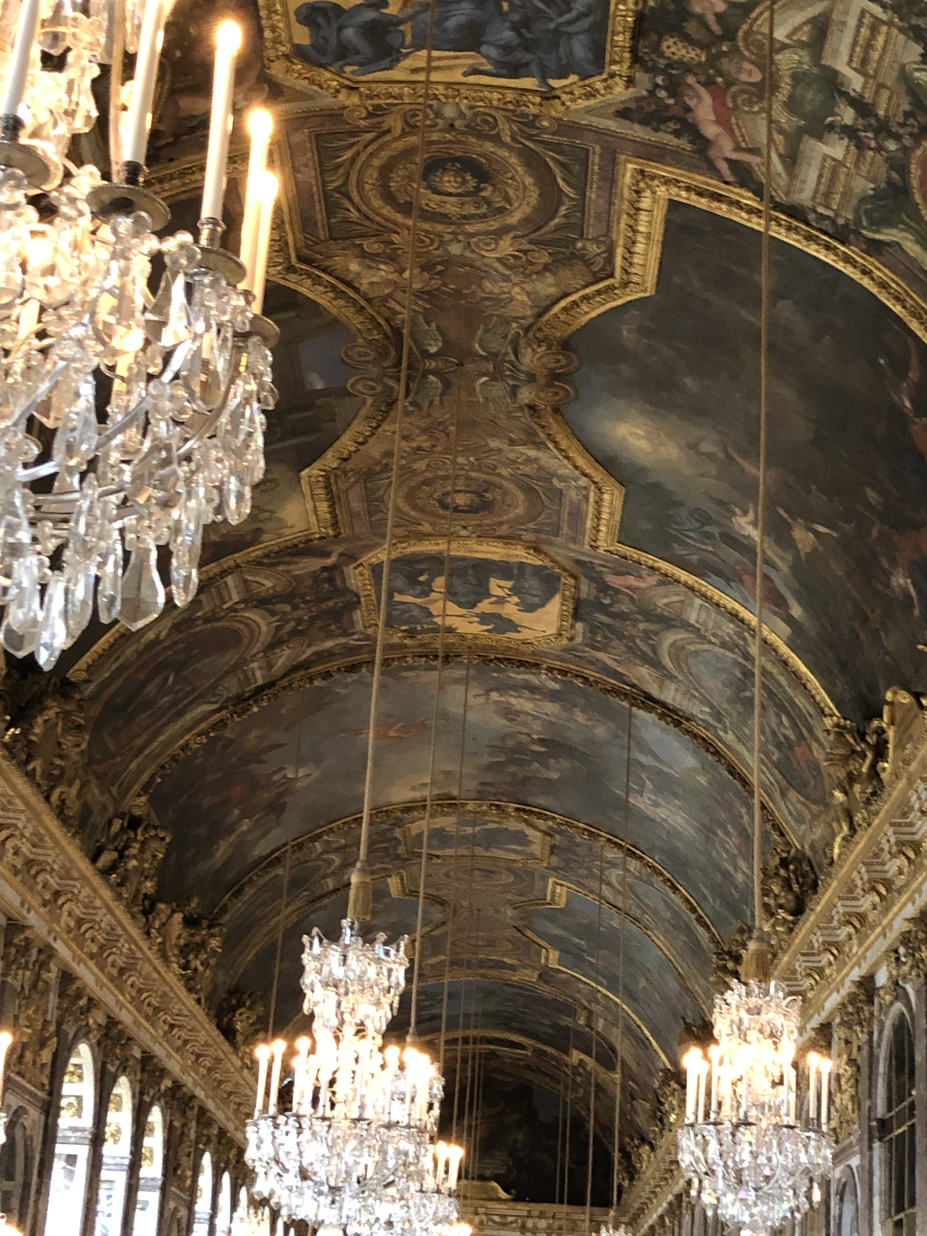 After leaving Haywood, we took a car to Versailles. The place is immense and gilded to the max. Room after room, stuffed with priceless paintings and sculptures, ceiling murals that were breathtaking. Elizabeth Vigee-LeBrun is one of two female painters which I adore. The portraits of Marie Antonette were mesmerizing for me because of the artist, not necessarily the subject. In fact by the end, I was suffering from an overdose of royalty and opulence. The only disappointment with the museum was that they relied heavily on light from the windows for the artwork. The multitude of expansive portraits and landscapes, could not be viewed well and some were in dark spaces, barely discernible.