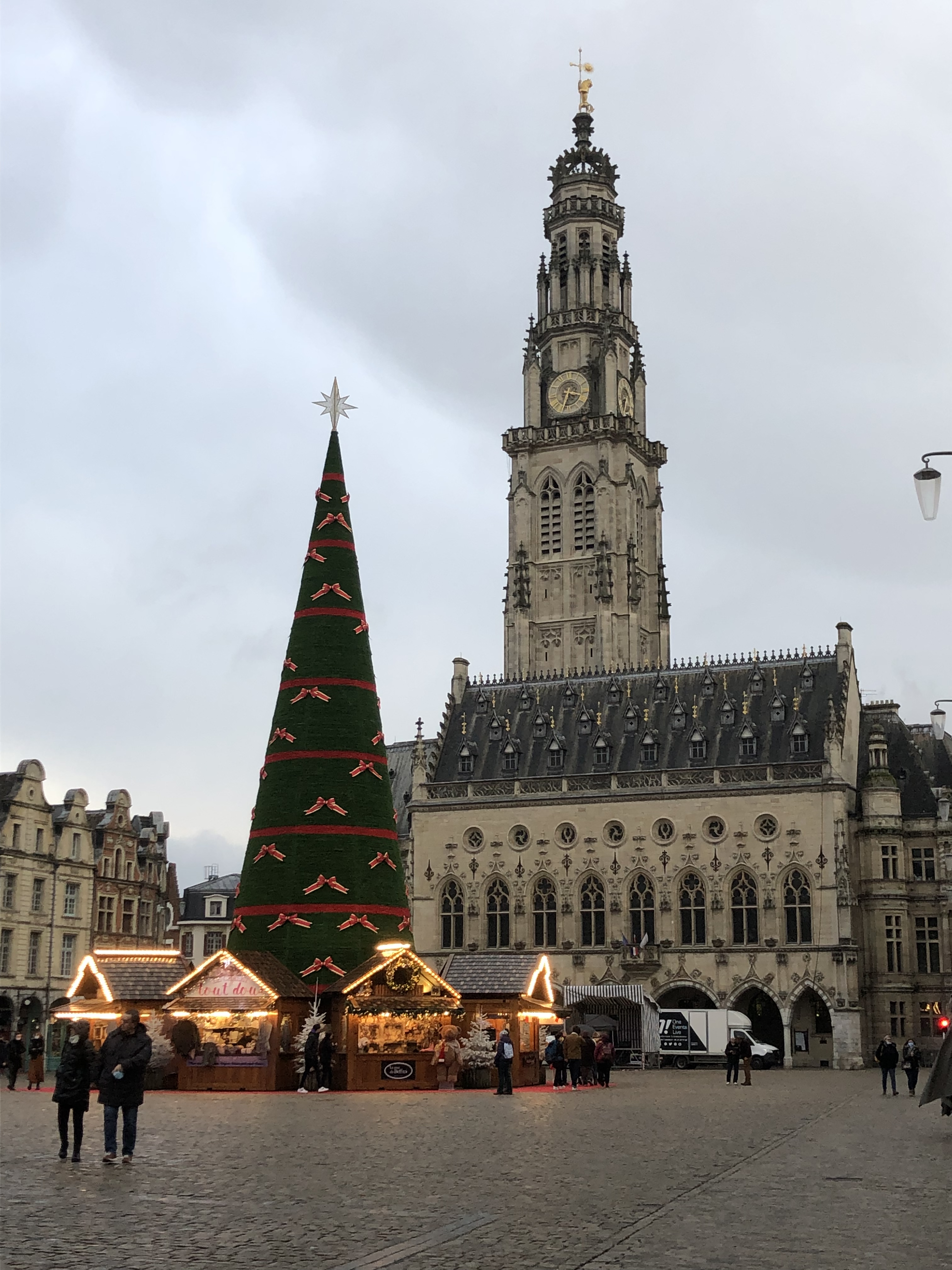 The next Christmas market we visited was in Douai in the afternoon, except that upon arriving, we found there actually was no Christmas market in town. A conversation with the tourist center revealed that although they boast of several vendors and rides on their website, they are all parceled out to outer lying areas with activities on a variety of different days. The one for this day was a 40 min hike or a 6 euro bus ticket to it. We came to the decision to have lunch instead and take the train home early.