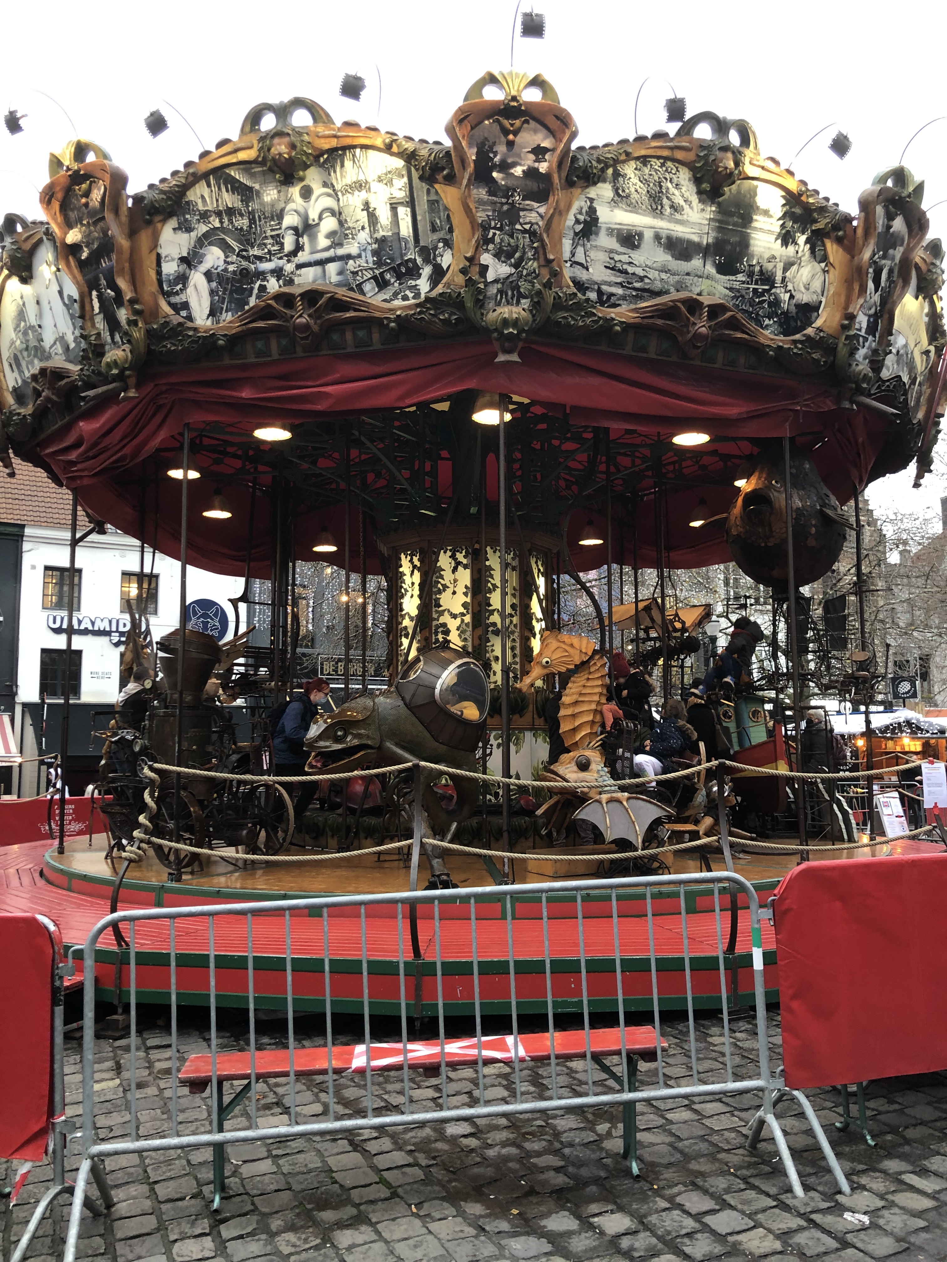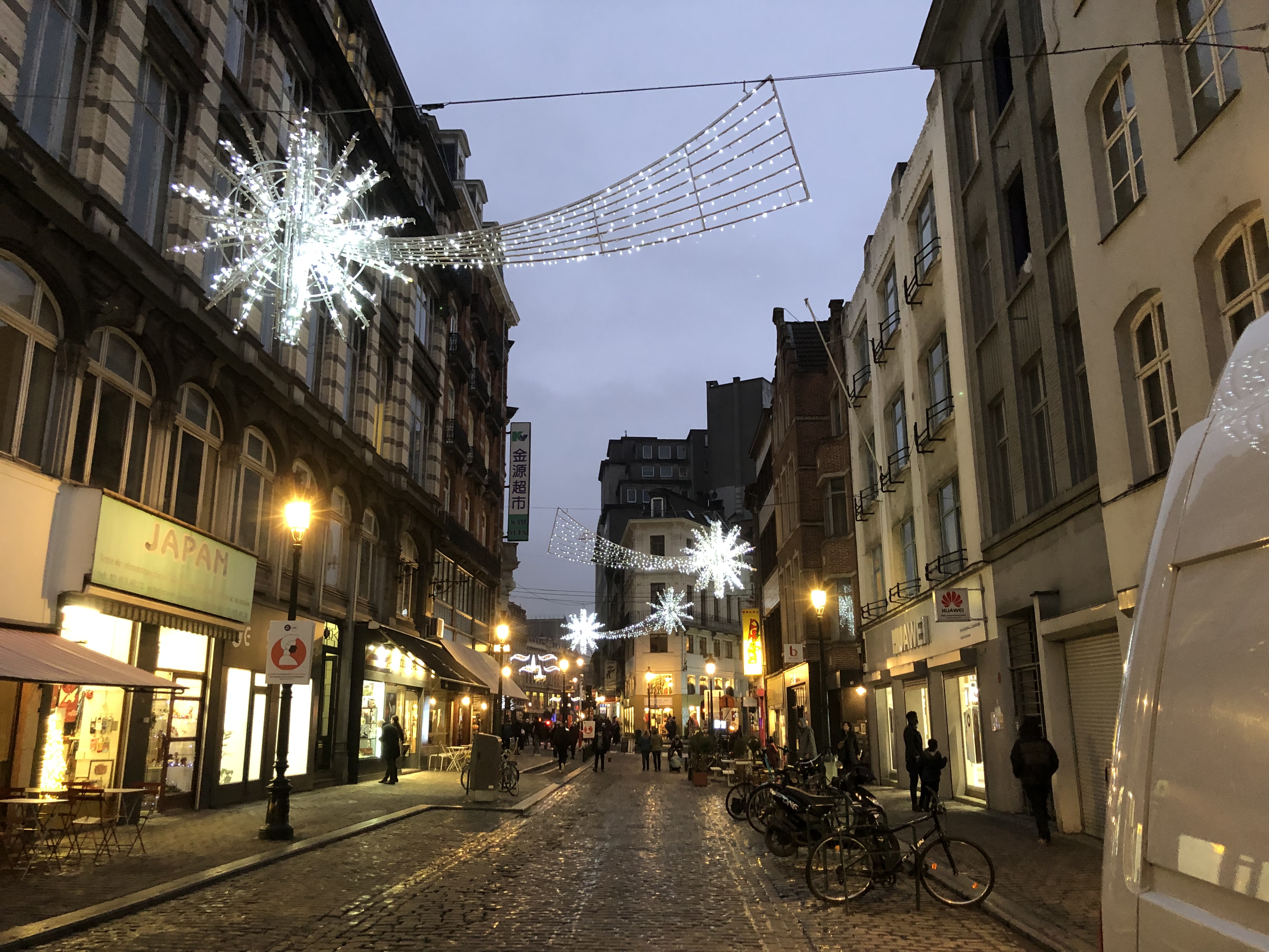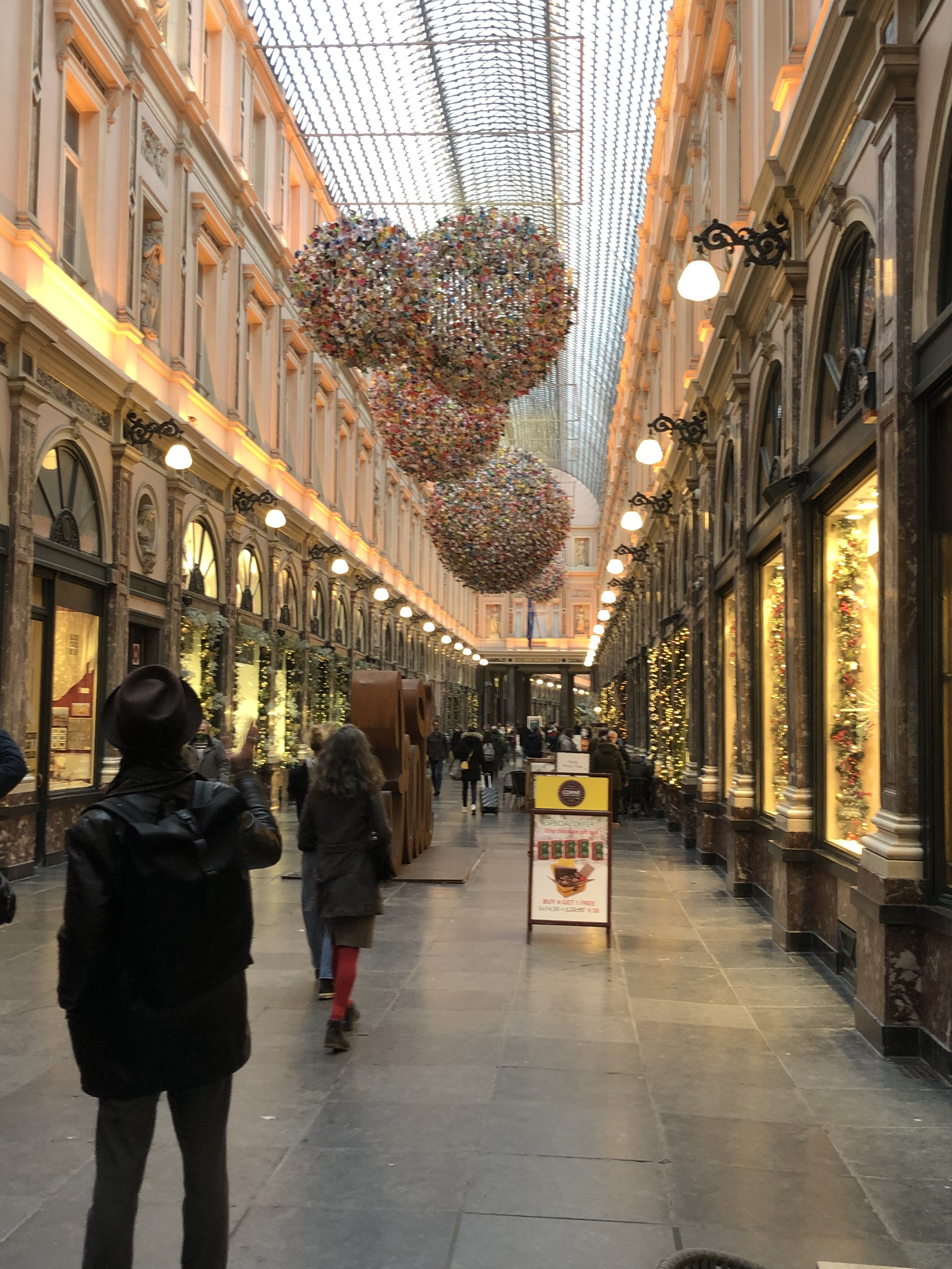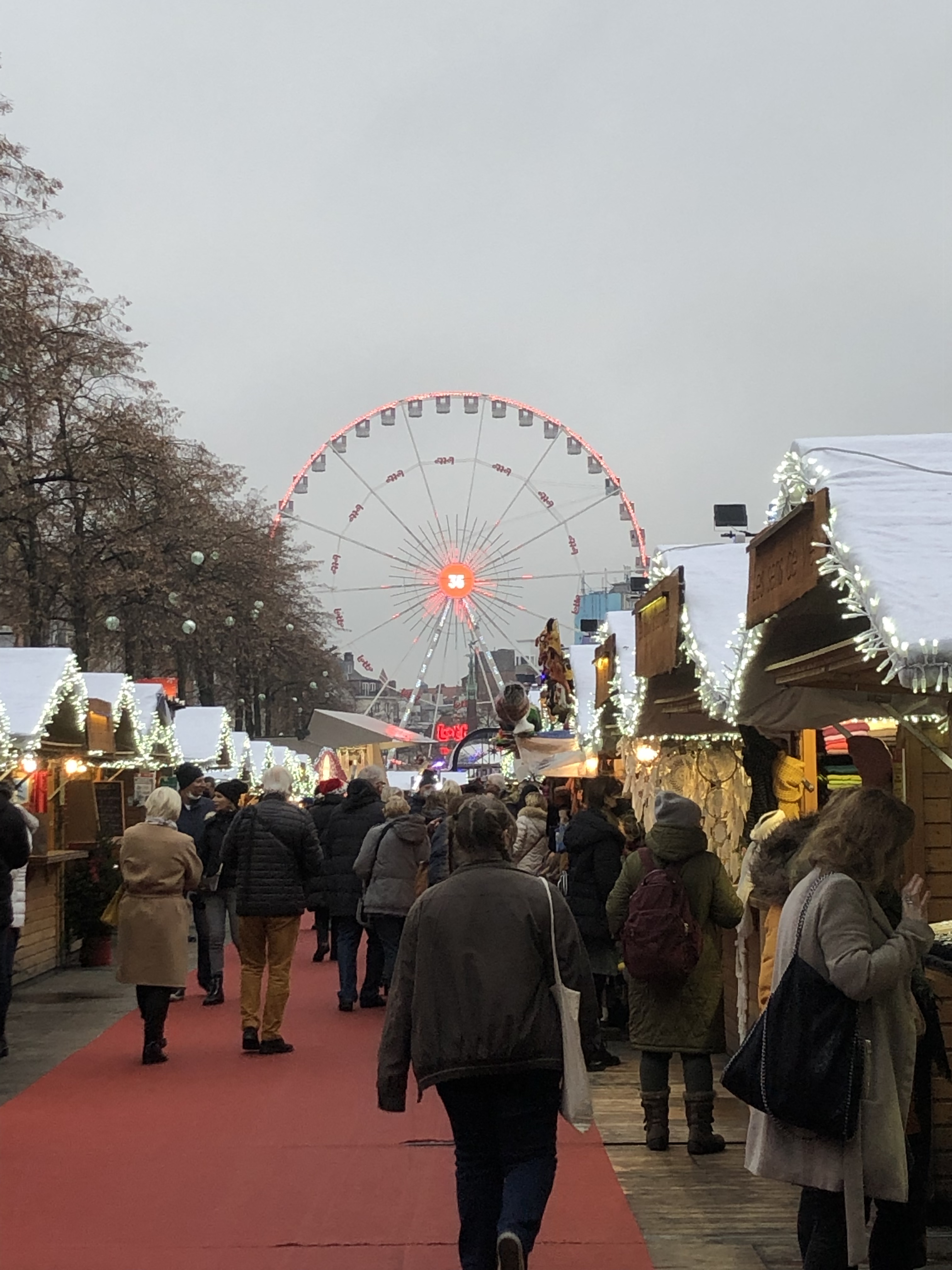 The next market we went to was in Brussels – it was the largest market we’d seen yet. None hold a candle to the ones we enjoyed on the cruise along the Rhine in 2015. That trip through German markets had vendors selling unique items and home crafts. What we have been seeing in the French markets are the same catalogue items – candles, nativity scenes, jewelry, hats, scarves, kitsch – all identical. But we enjoyed walking around and the weather was very pleasant for the low 40’s. We ate bratwurst rolls, enjoyed a beer and even found an ornament that we hadn’t seen before. Brussels is an absolutely beautiful city. The last two markets on our list are both a two-hour train ride away but by the third week, we’d decided that we’d had our fill.