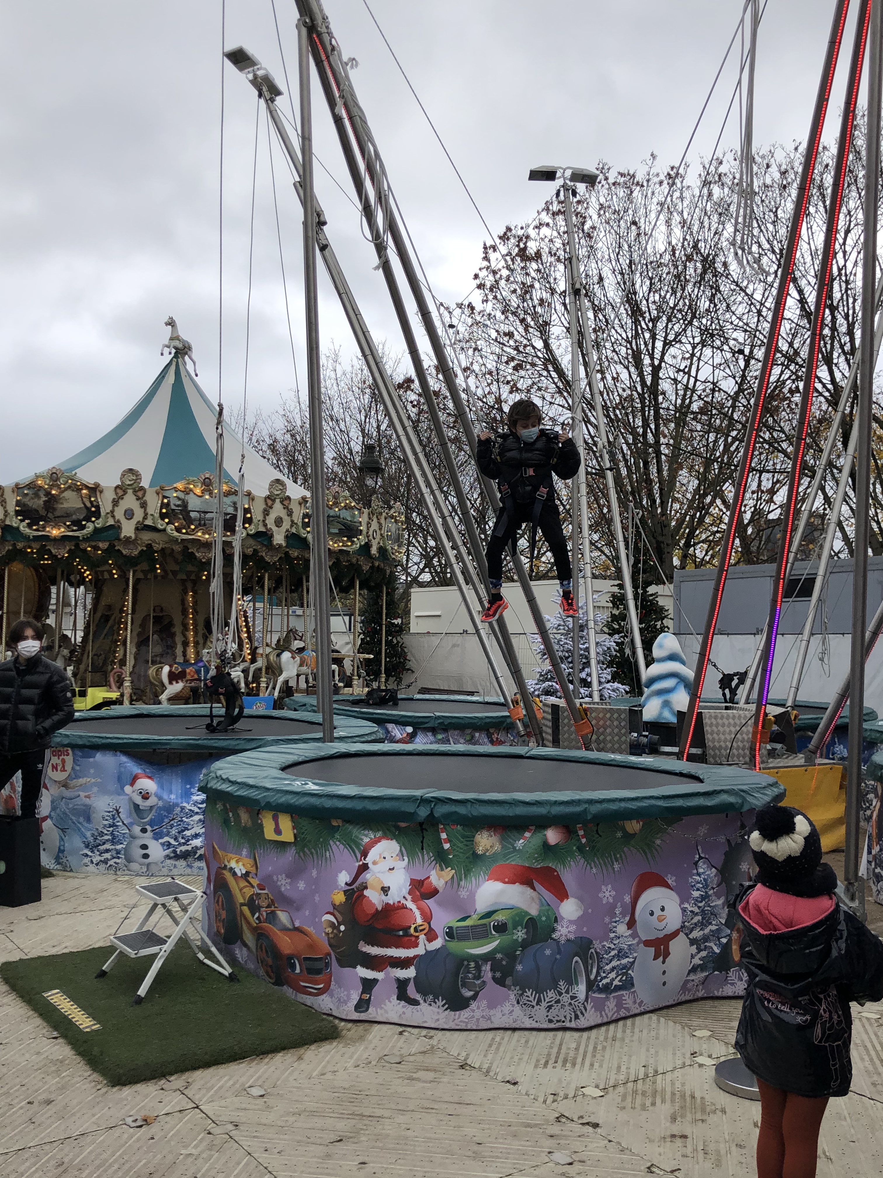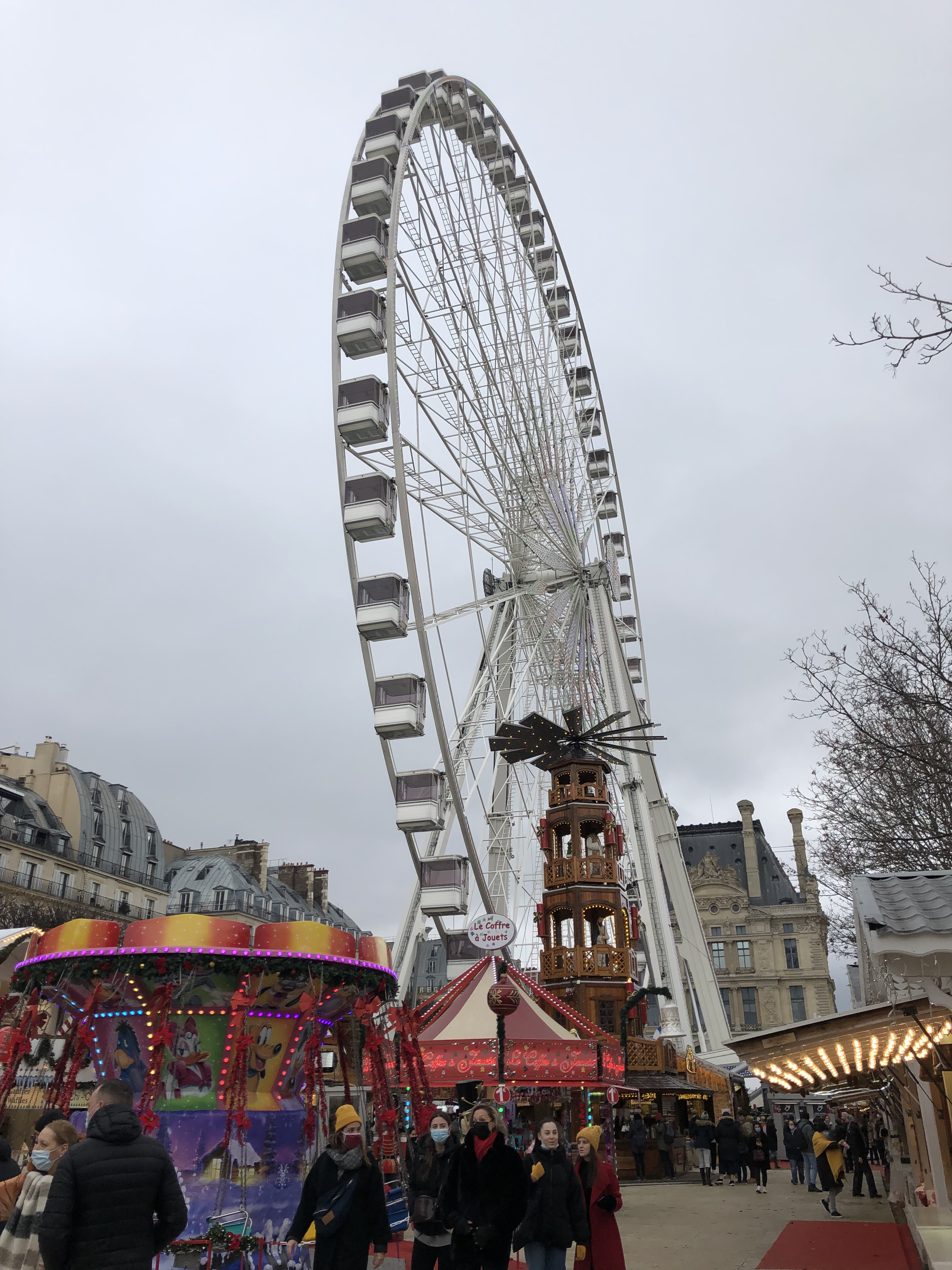 We started the month by putting up our tree in the living room window and decorating it. Then we strung the blue lights we had, on the hall ceiling, along with the stars we had bought in Cologne. This was the month of Christmas markets and we planned to see all the ones within easy reach. On the last day of November, we took a train to Paris to see the different markets that they held. While there, we checked in with our lawyer and friend Haywood. We try to see him at least twice a year, although we don’t necessarily require his services very often. It’s always good to see him and lure him out for a lunch – which he rarely does. After arriving in Paris, we checked in early and were able to get into a room in advance, which was nice. We walked to the Tuileries Gardens and around their Christmas market. It’s the biggest because they have at least 8 large rides, including a giant Ferris Wheel, plus arcade games, in addition to the market. Although we took pictures, it is much more colorful at night.