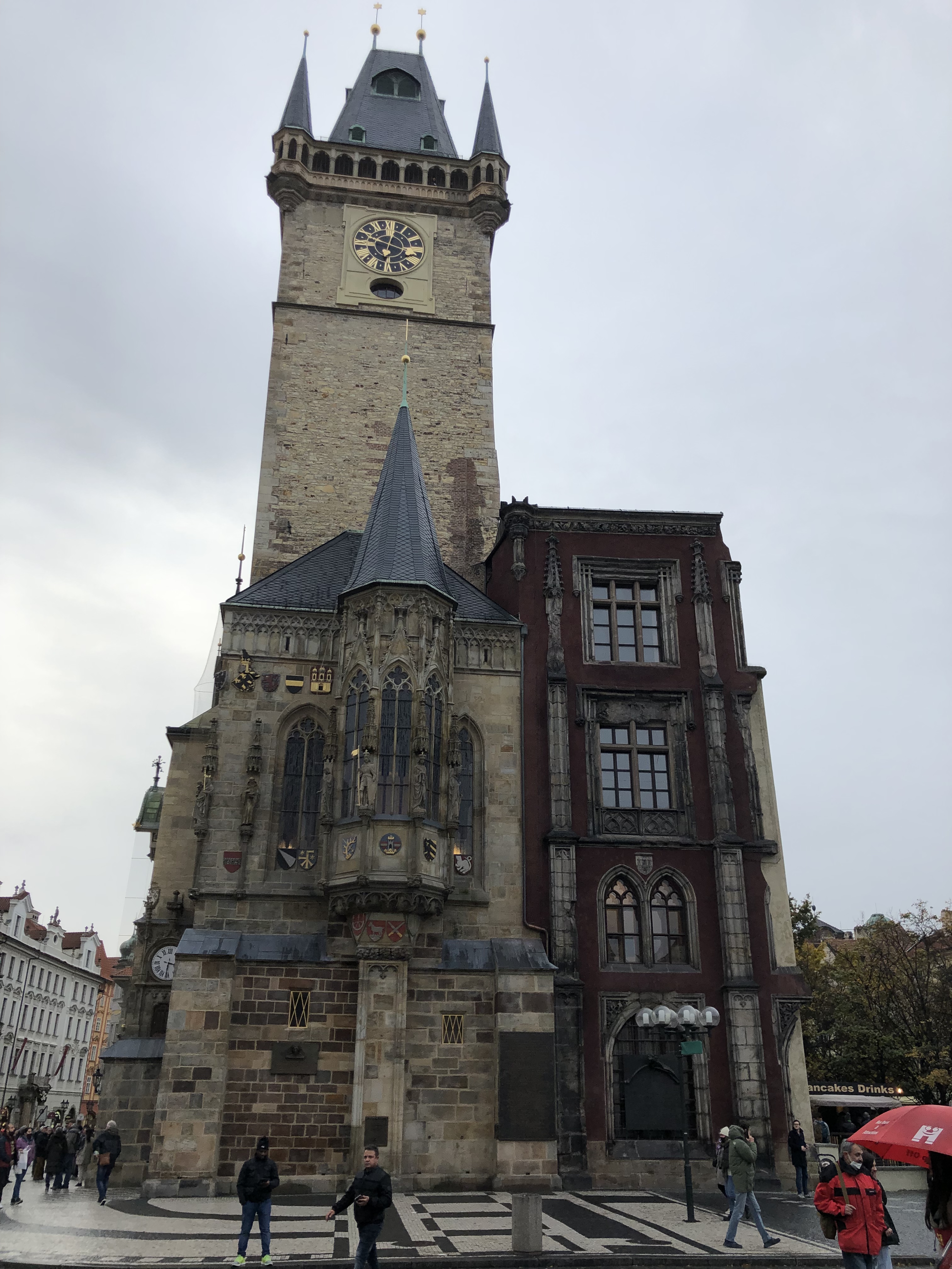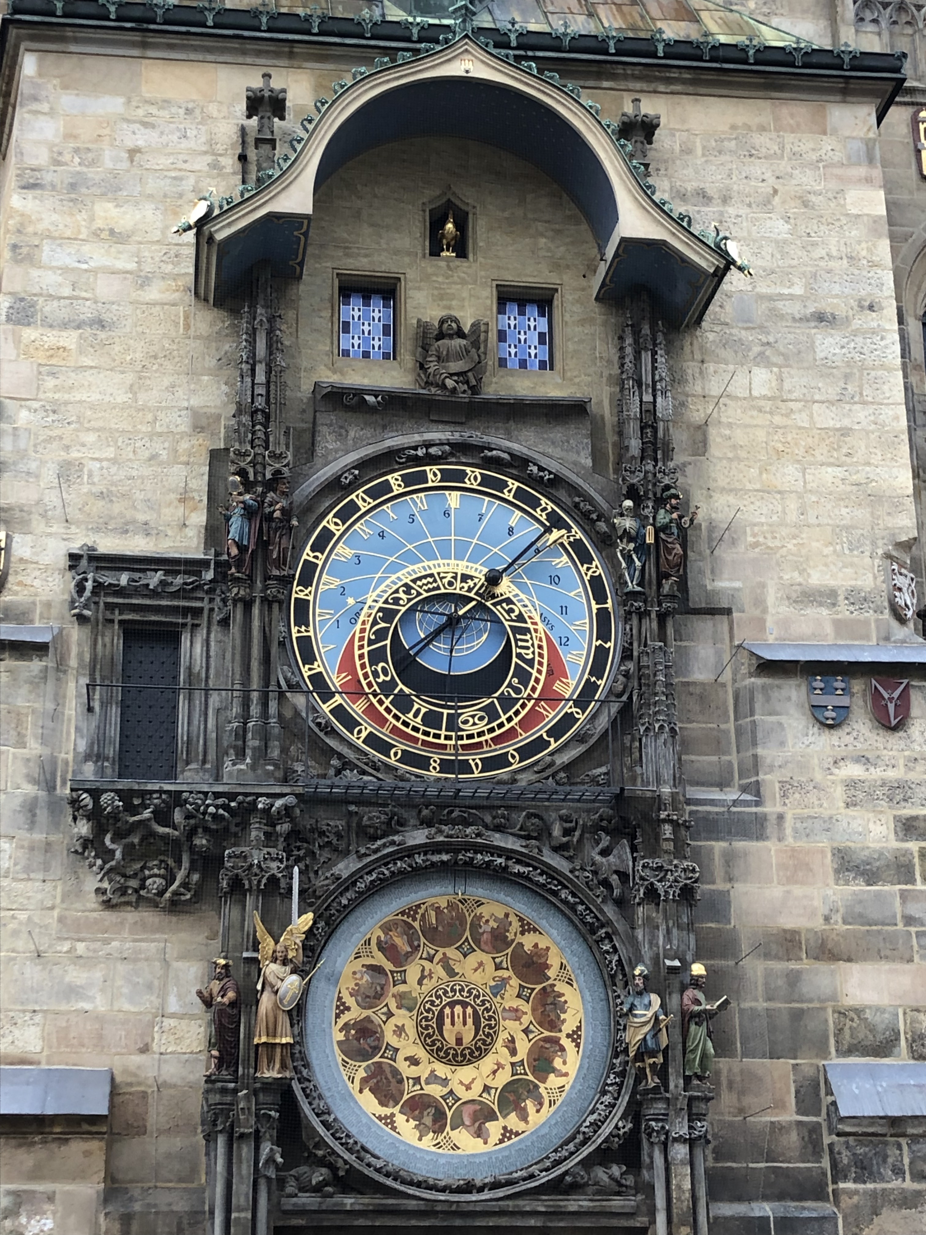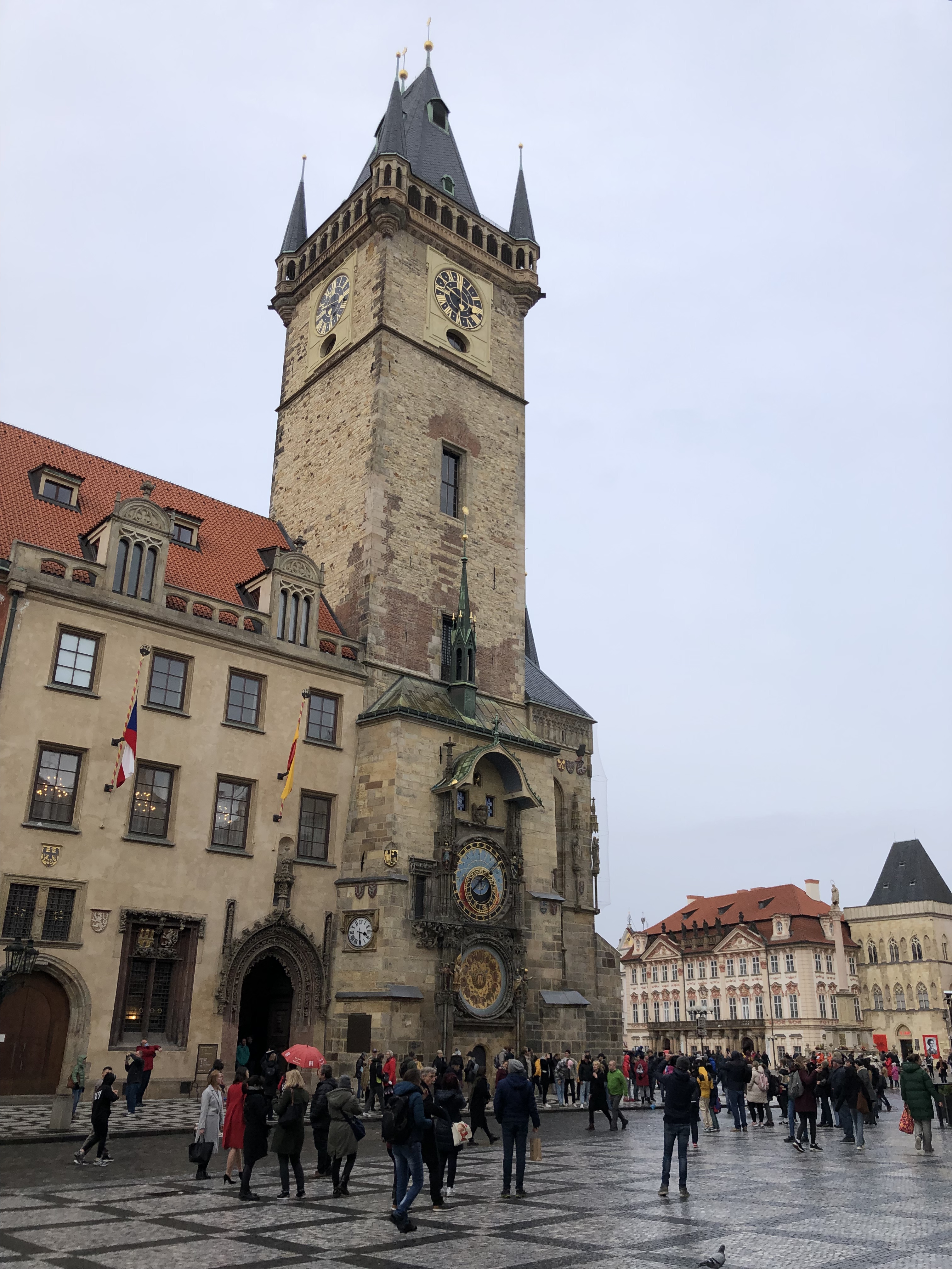 We went out to lunch at a place that G found and had a really tasty meal of a roasted pork knee and goulash served in a rye bread bowl. We walked around old town, taking in the architecture, the winding streets, a few notable monuments and the giant astronomical clock which really has been running for 600 years. Although our photos don’t quite capture it, the clock chimes on the hour and little blue windows at the top open to show a parade of characters.