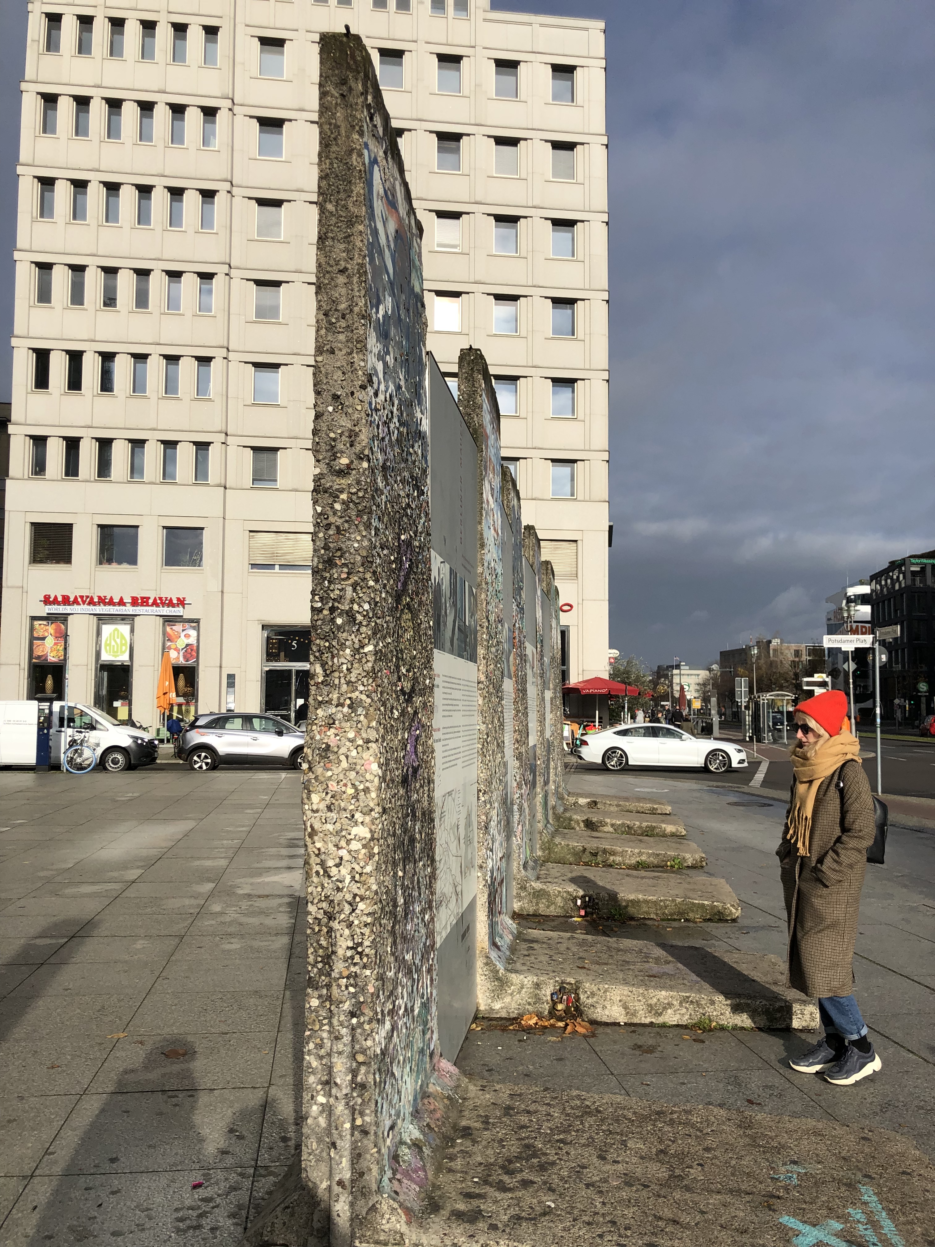 The German government has ensured that the city has plenty of parks – they put them at the base of all of the housing buildings and we enjoyed a walk through the Tiergarten park, which is several acres, in the city center, which we passed on the drive to the hotel. Other than that park, which had the smell of fall leaves and conifers, Berlin smells like bus and car fumes. It’s a modern, commerce city made of post war block buildings. We didn’t find it warm or inviting like the other cities. Even Vienna with it’s massive structures and overwhelming arts, had some warmth. In Berlin, unlike SF or NY, we didn’t come across small bergs with little markets and favorite taverns. There were mini stores we passed and some cafes – but scattered among the commercial buildings and there was not a grouping that gave it a cosy respite or feel.