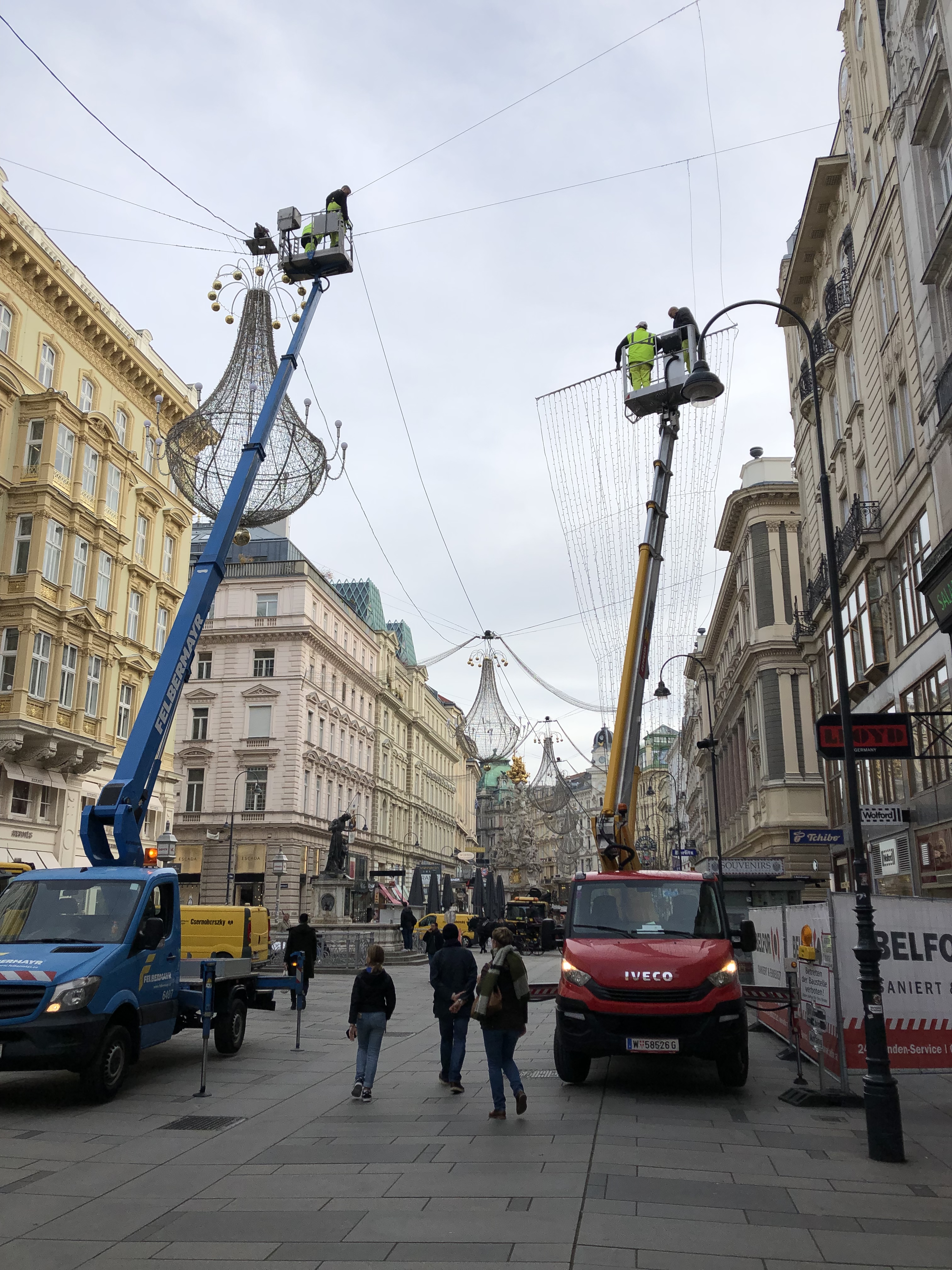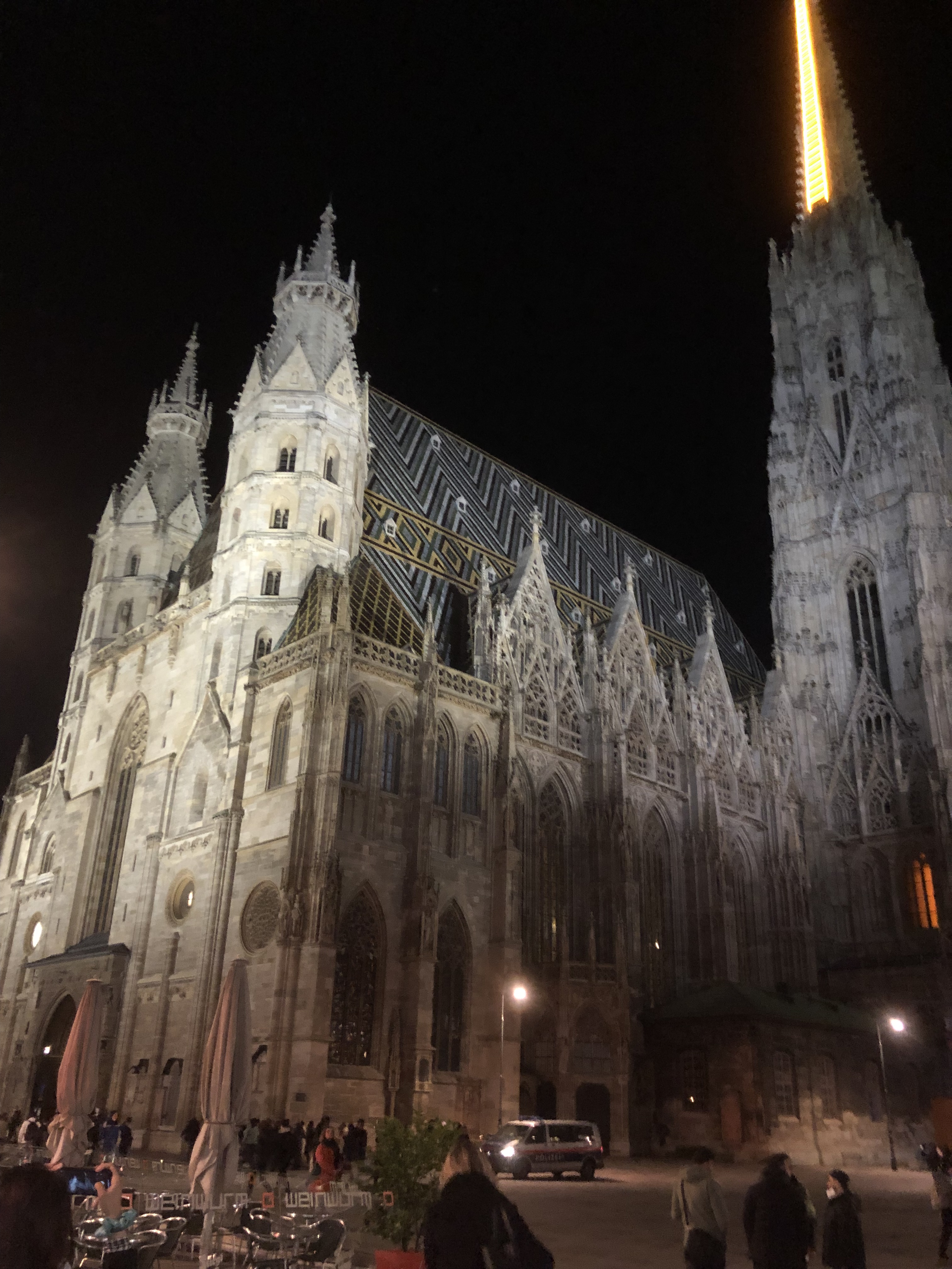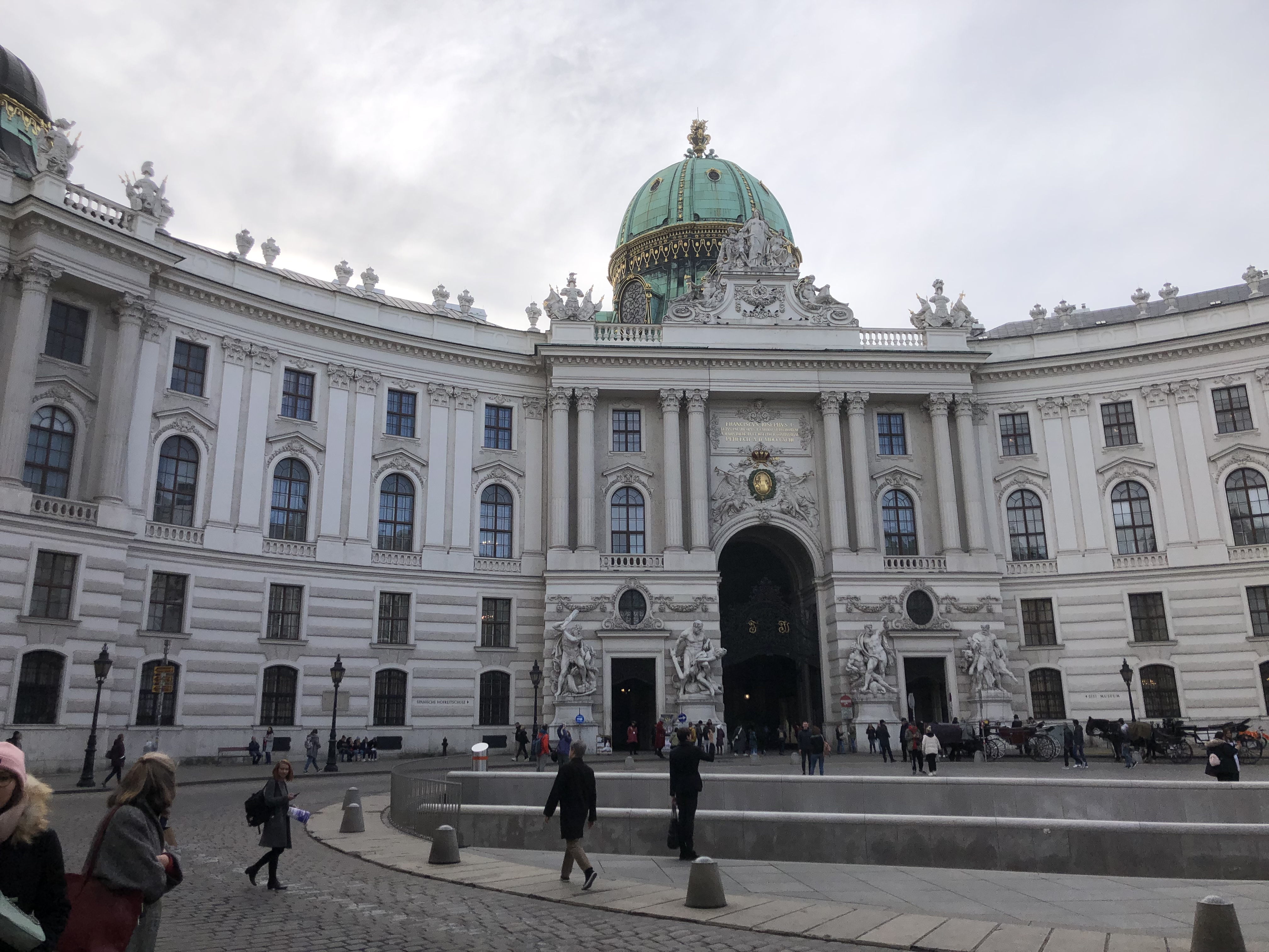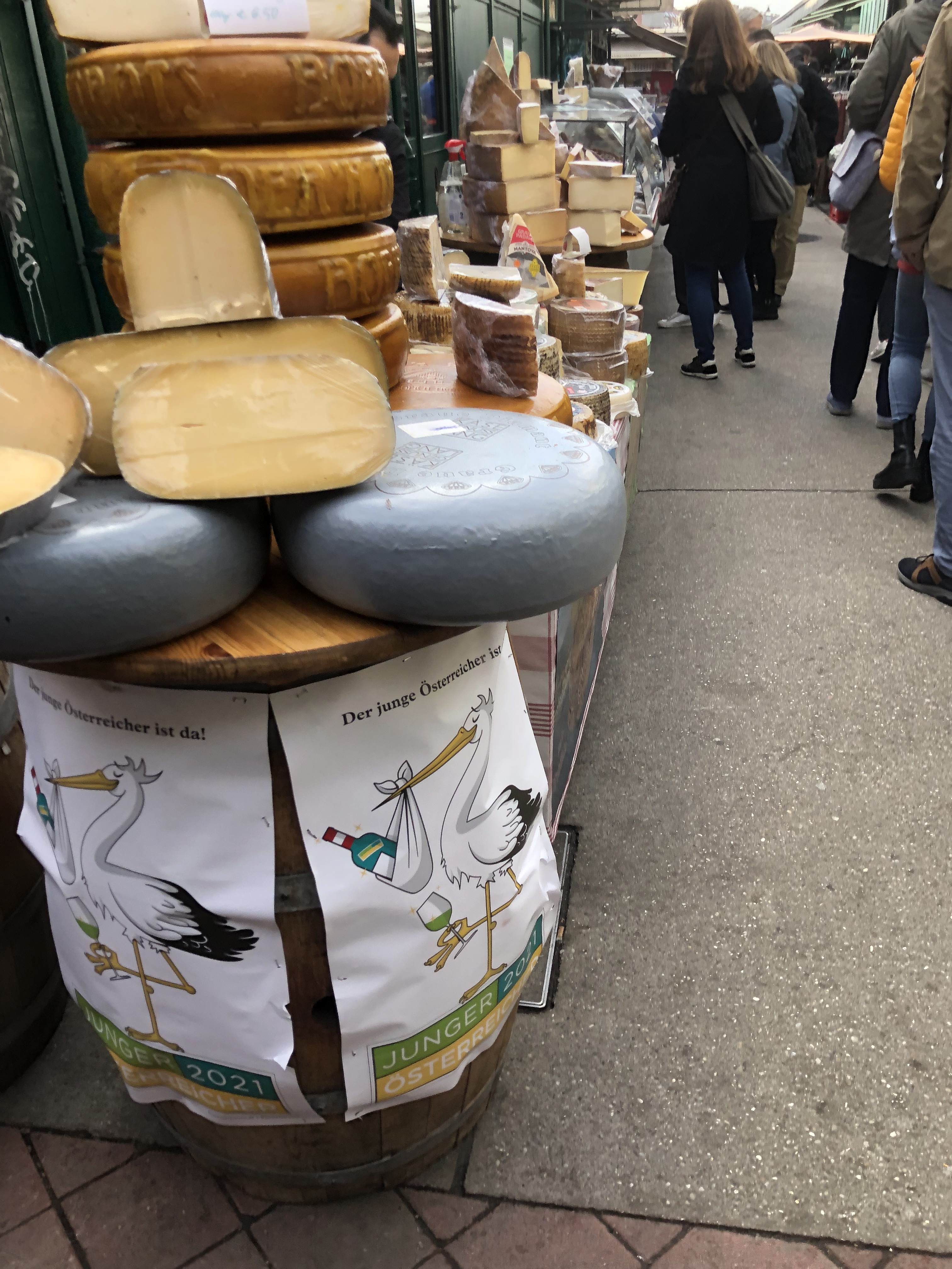 The weather was cold and rainy so this particular Hop-On suffered from fogged windows and we couldn’t see anything that we were hearing about. So we got off and walked EVERYWHERE. We started at a vast outdoor market that had every ethnic food you could want, every spice and cooking ingredient, every cut of meat, fish or produce. There was one vendor that had at least a dozen different kinds of hummus on display. We stopped to sample an authentic strudel. It was Apple Strudel and nothing like we’ve had before. The strudel we’ve eaten has always had a hearty crust – a lot like rugelach. But this was a light crust – lighter than even a great croissant and it made for a delicious, delicate dessert.