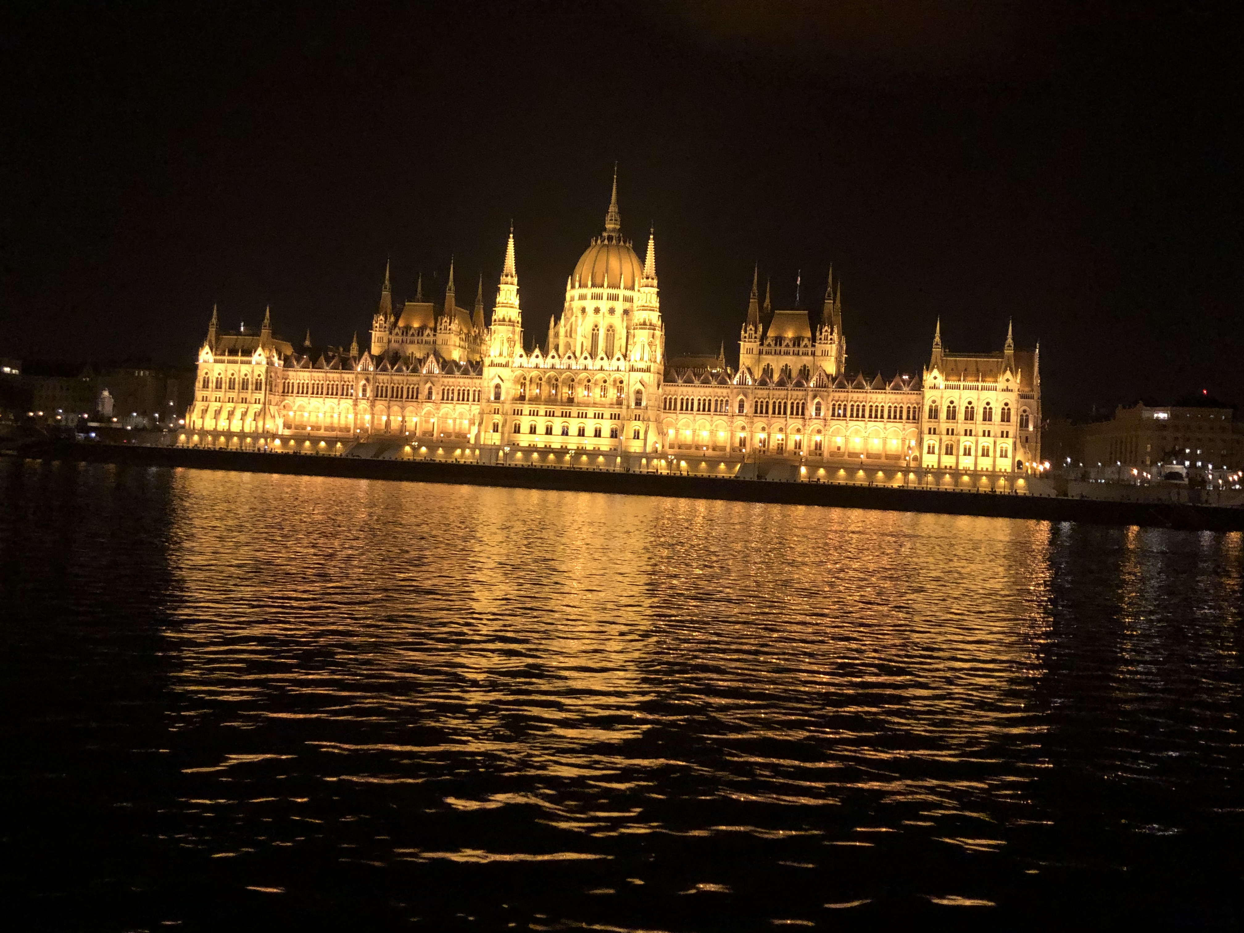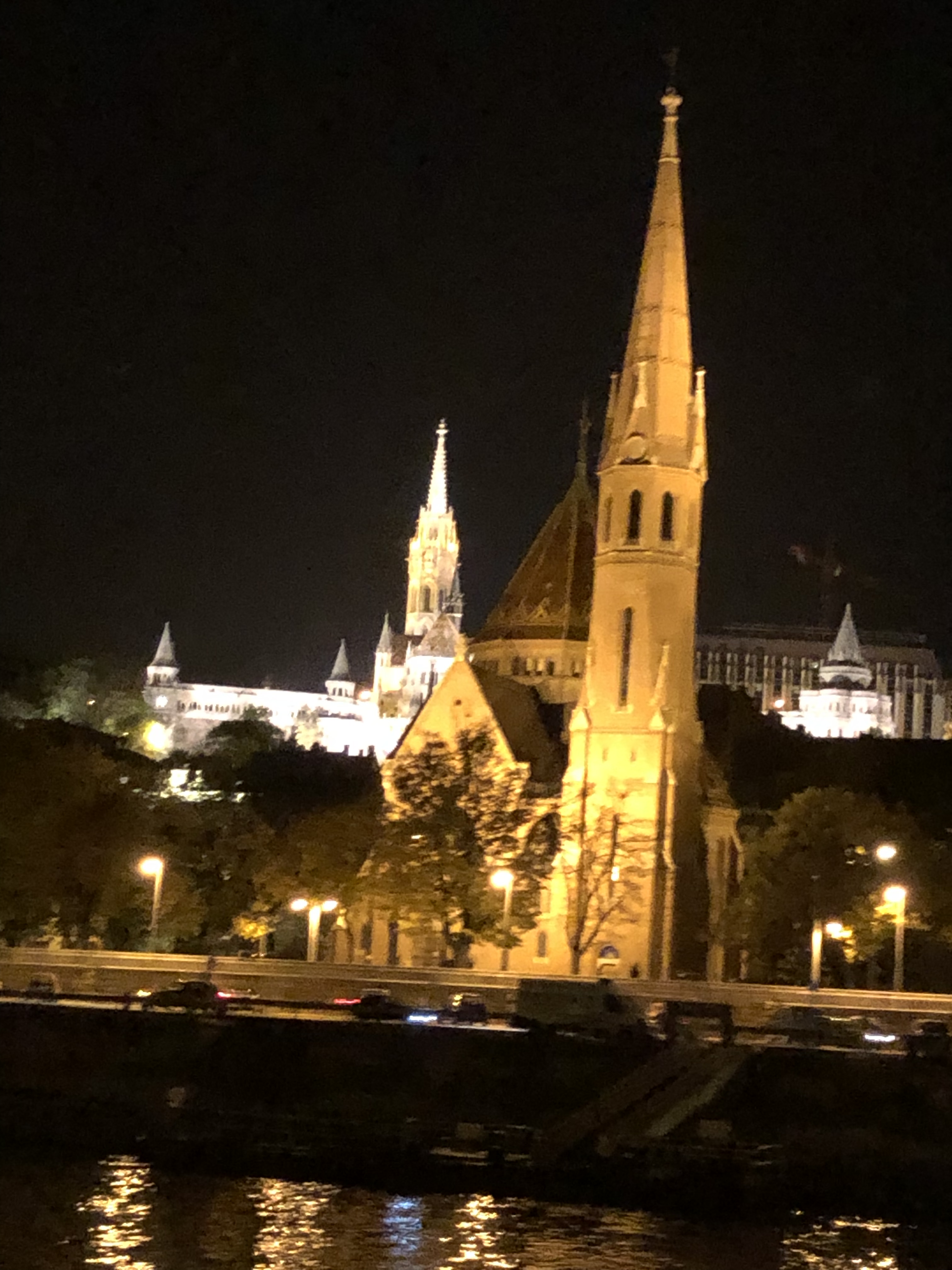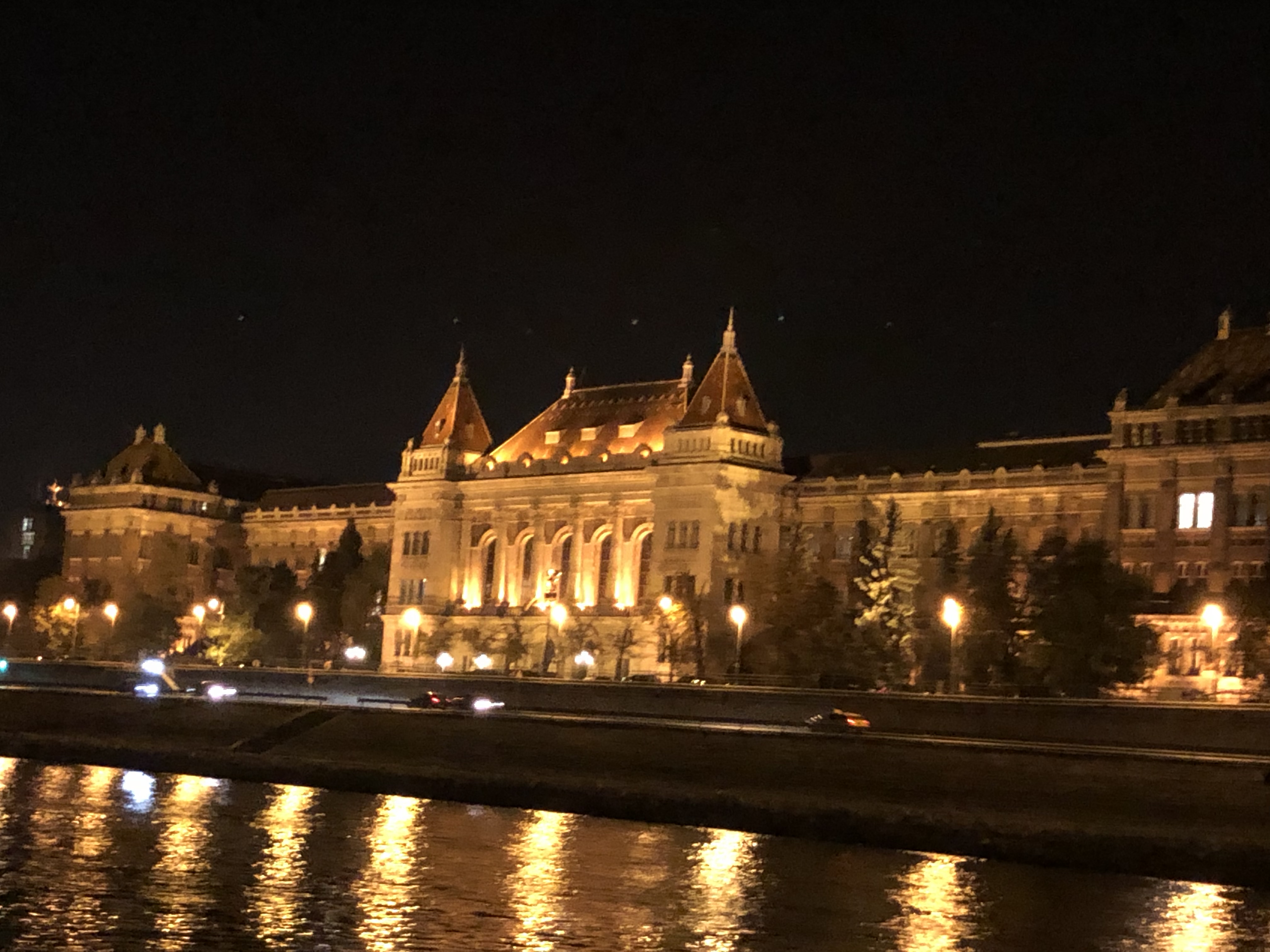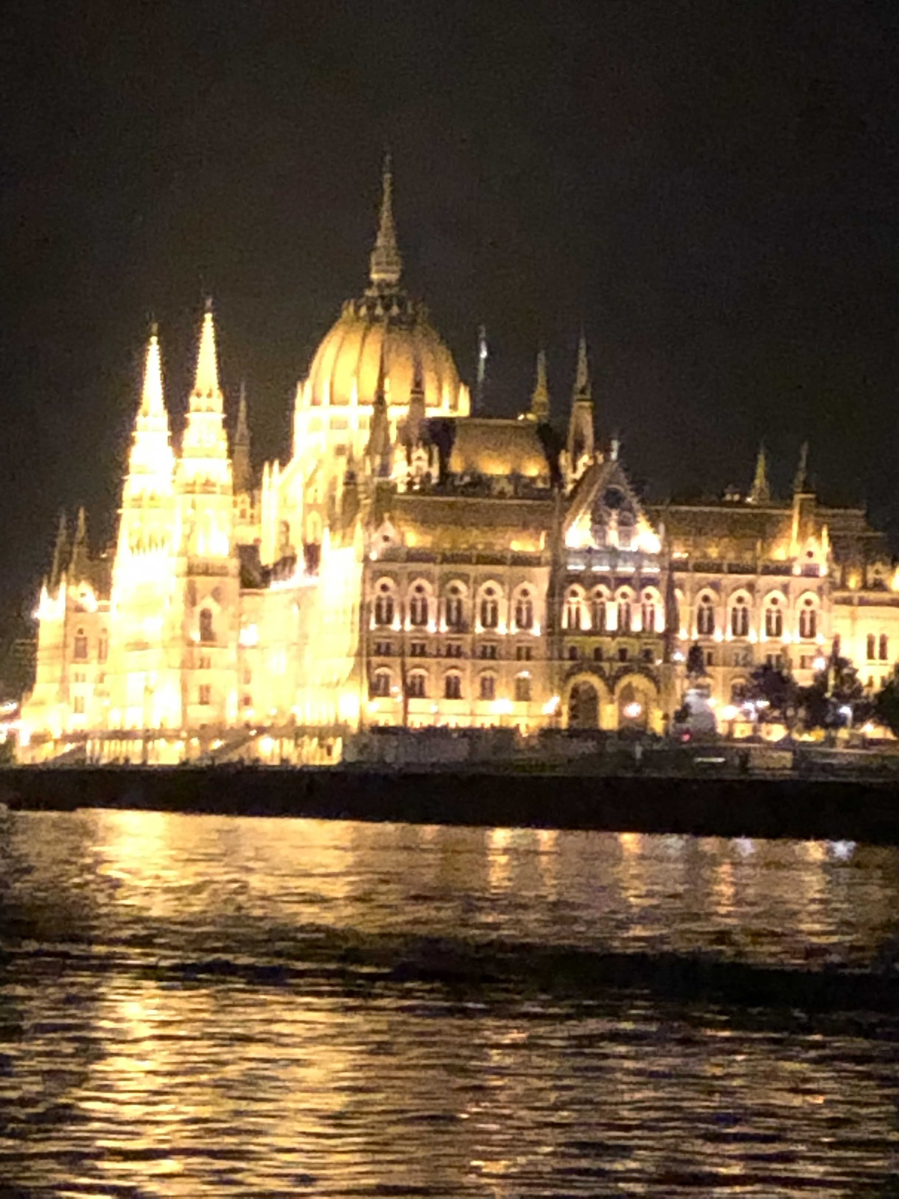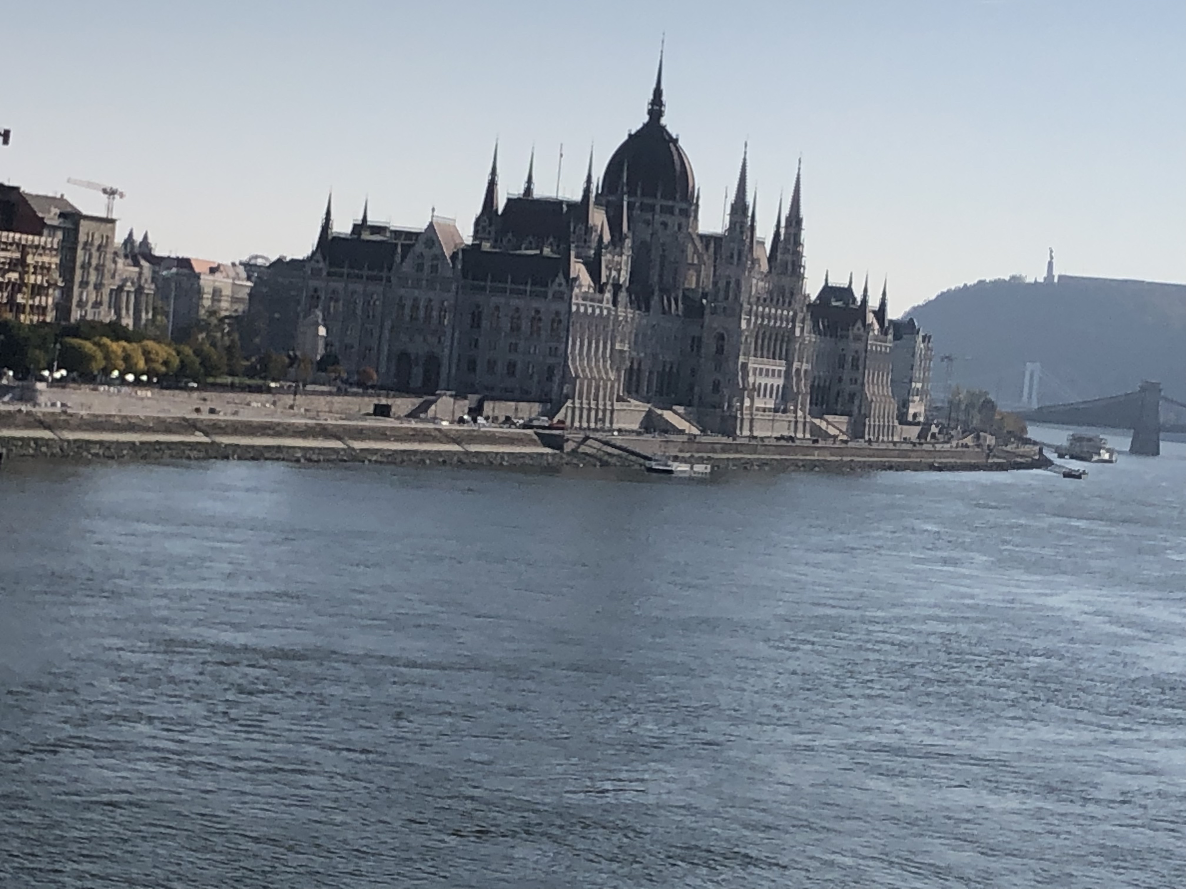At the hotel, after checking in, we dropped our bags in our room and admired the great view – we were right on the Danube with a fabulous view of the fall foliage, water and historic architecture. We went down to the hotel bar since I was in desperate need of food and libation. I’d gotten what is called ‘Hangry’ so hungry that you’re angry. Poor G – I was a mess. After a glass of wine and tapas, my mood improved 100 percent and I was finally off the crazy side of the journey. After we had a light dinner, we took a taxi to the pier for a night boat cruise which a friend had recommended. It was quite cold, with a biting wind but they gave us blankets, plus G and I were well dressed for the weather. The cruise was absolutely beautiful and serene, with just the right amount of information. I kept pinching myself and exclaiming to G, “We’re in Budapest !!!” And he just grinned.