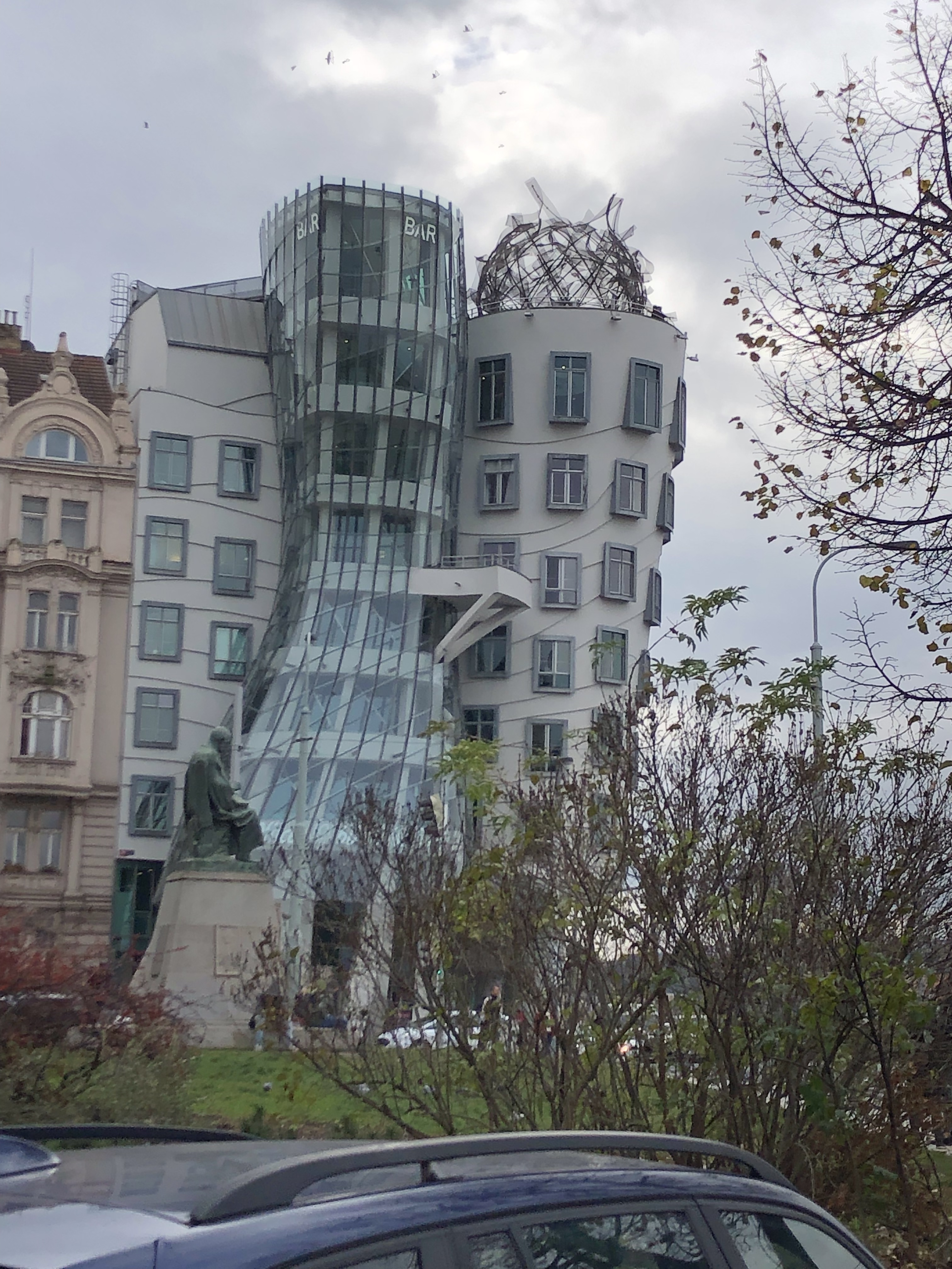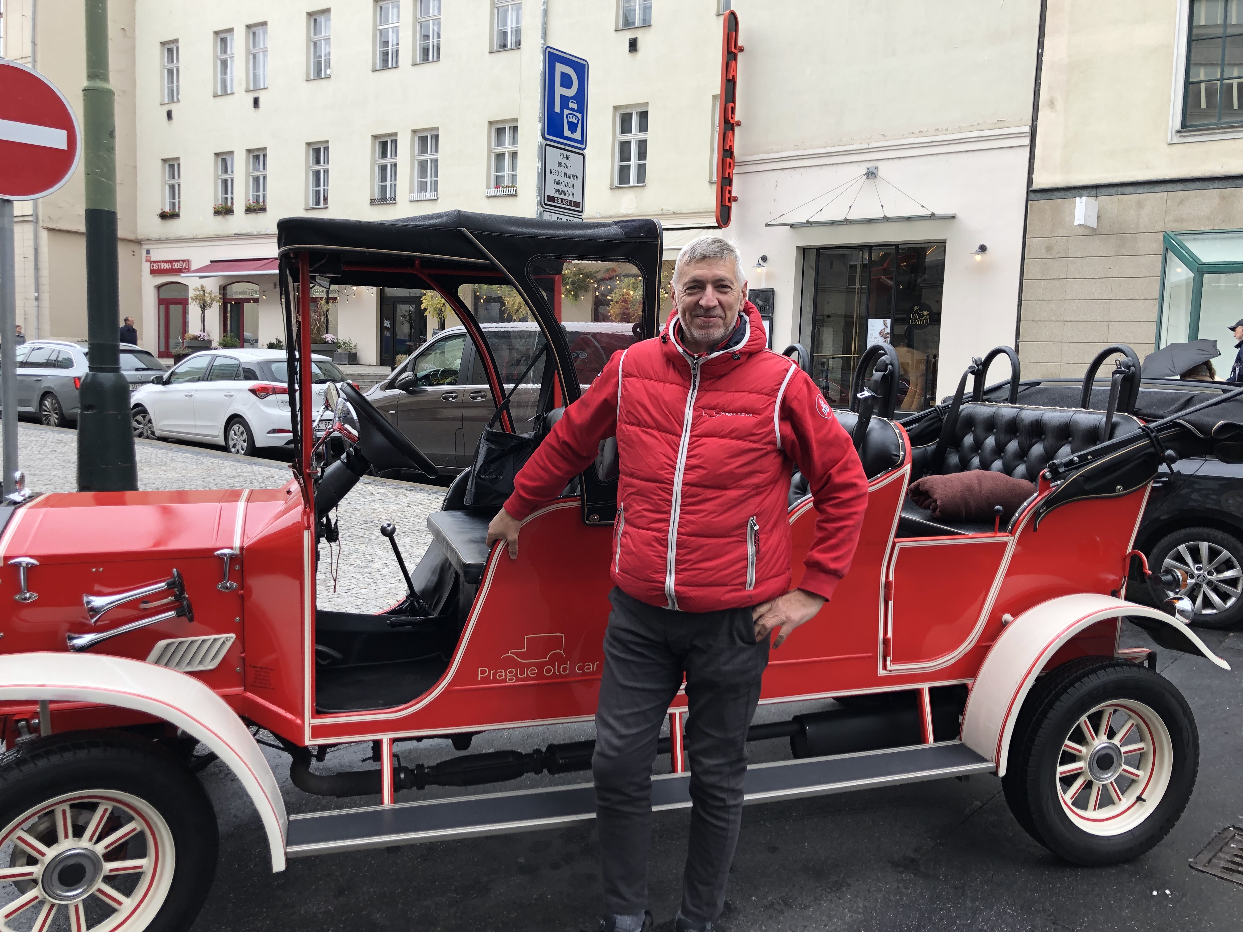 For our first day in Prague, we started with a light breakfast in the hotel before being picked up by Pietra in a vintage red car. He took us for an hour and half tour of Prague, giving a monologue of everything we passed. If you can’t spit in any direction in NY without hitting an Irish pub (Hey, I’m part Irish – I know what I’m talking about), the same is true here in the old city regarding churches. Names, dates, delineations of political parties in power (Socialist, Communist, Democratic), historic protests and power grabs, along with the city changing hands from one country to another – all flew past our ears at an amazing mesmerizing speed. The city itself is an old city with a new city wrapped around it, like a crescent moon, edged along one side by the Vltava river – or as referred to in German, The Moldau.