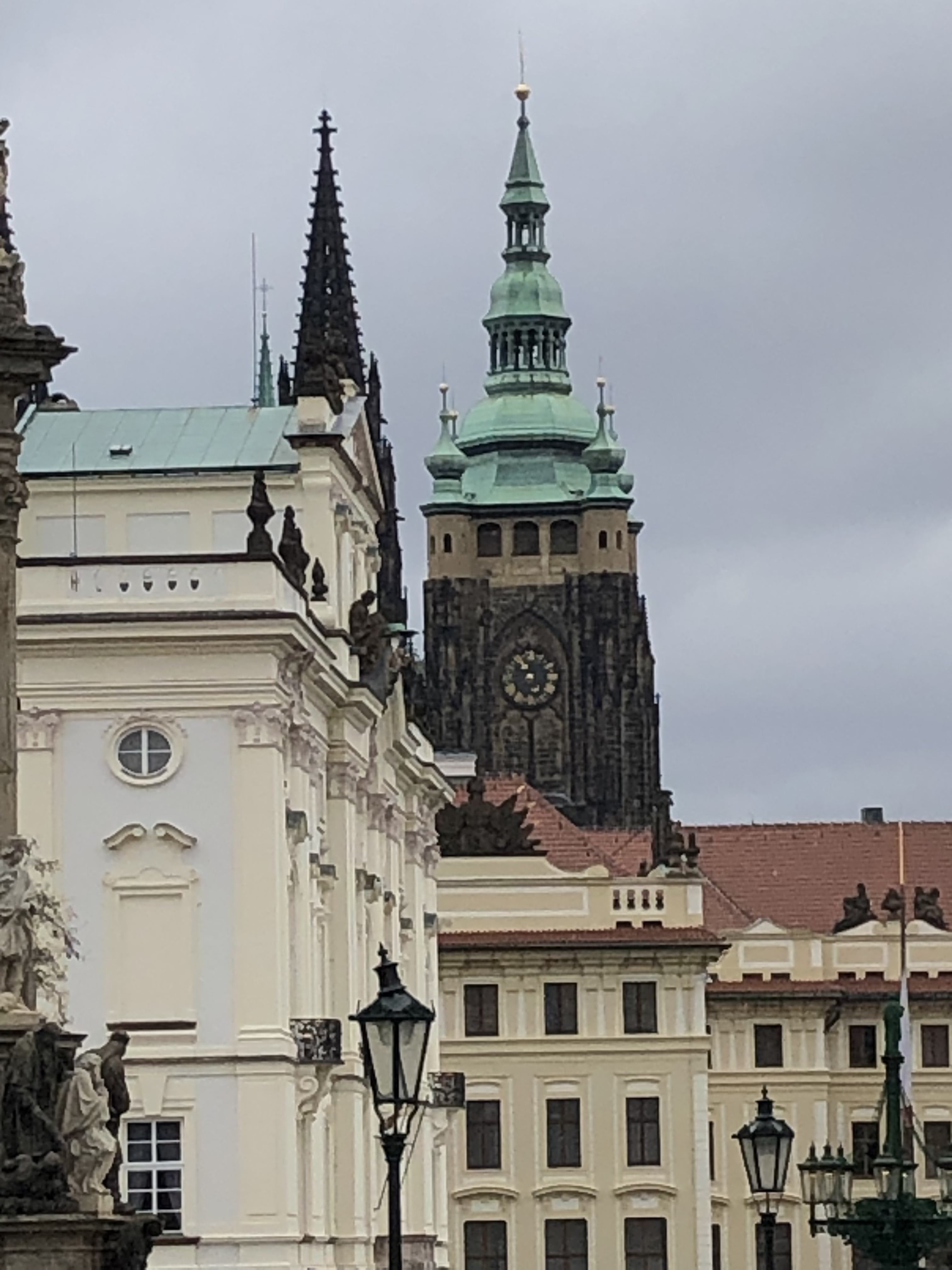 Next, we took the train to Prague, a 3-1/2 hour ride. Ordinarily an uneventful part of our journeys, this day in travel, I’m sorry to say, I did not feel well the entire time. The antibiotics that I had to take for the ear infection made me dizzy, nauseated and with a bit of a headache. But that day, it was day 5 of it and I got hit with a migraine getting on the train. I carry stuff with me for it – but it made for a very uncomfortable day. Then we had the misfortune of having a very loud man and his wife sitting behind us. He clearly liked his own voice and talked in an elevated volume the entire trip. His wife made monosyllabic replies. If I were charitable, I’d say that perhaps he or his wife were hard of hearing. We certainly are not and were not feeling charitable in the least. In fact it made me want to break the rule of “Don’t bite or hit anyone.” I was very grouchy. And very tempted.