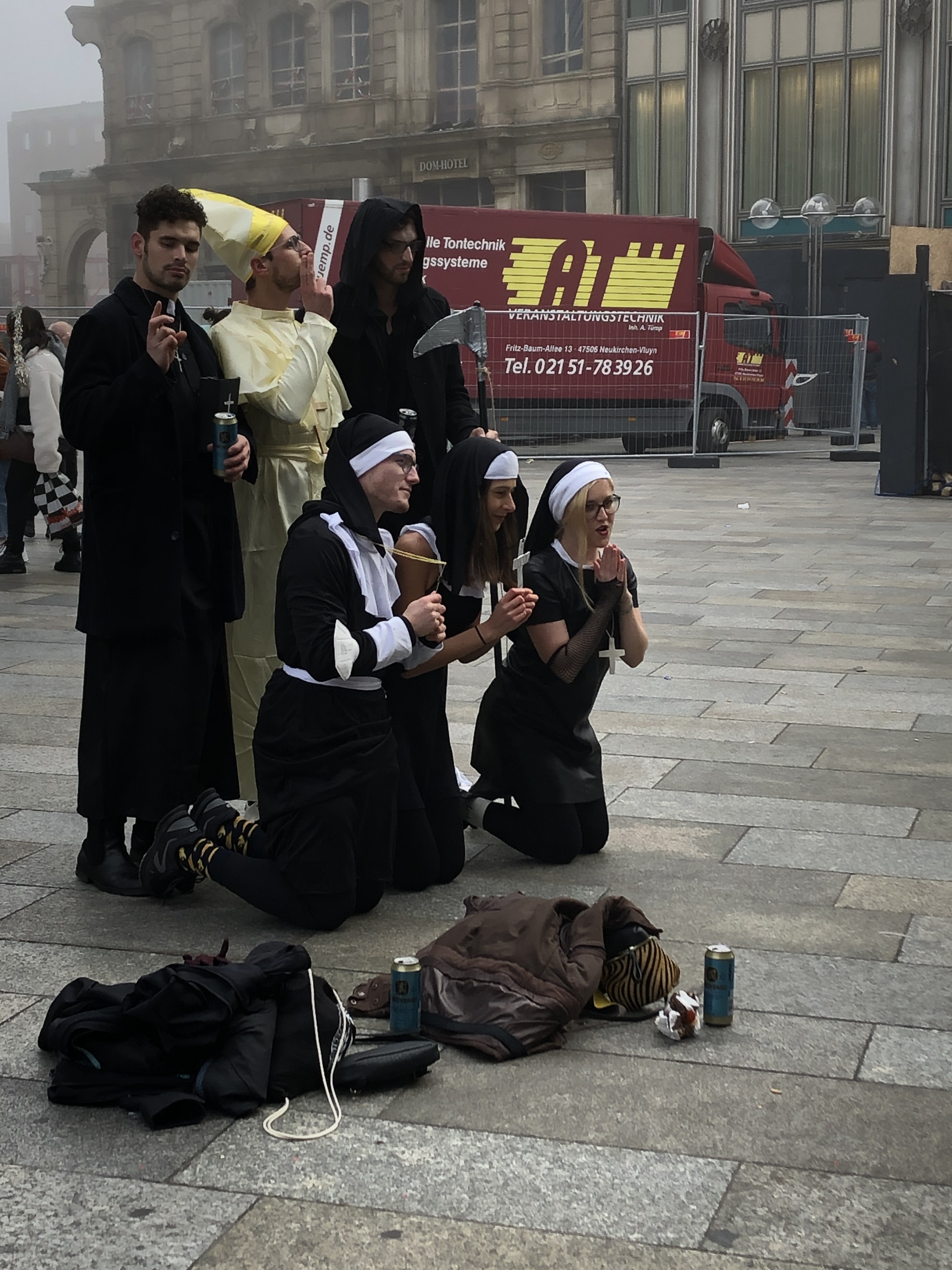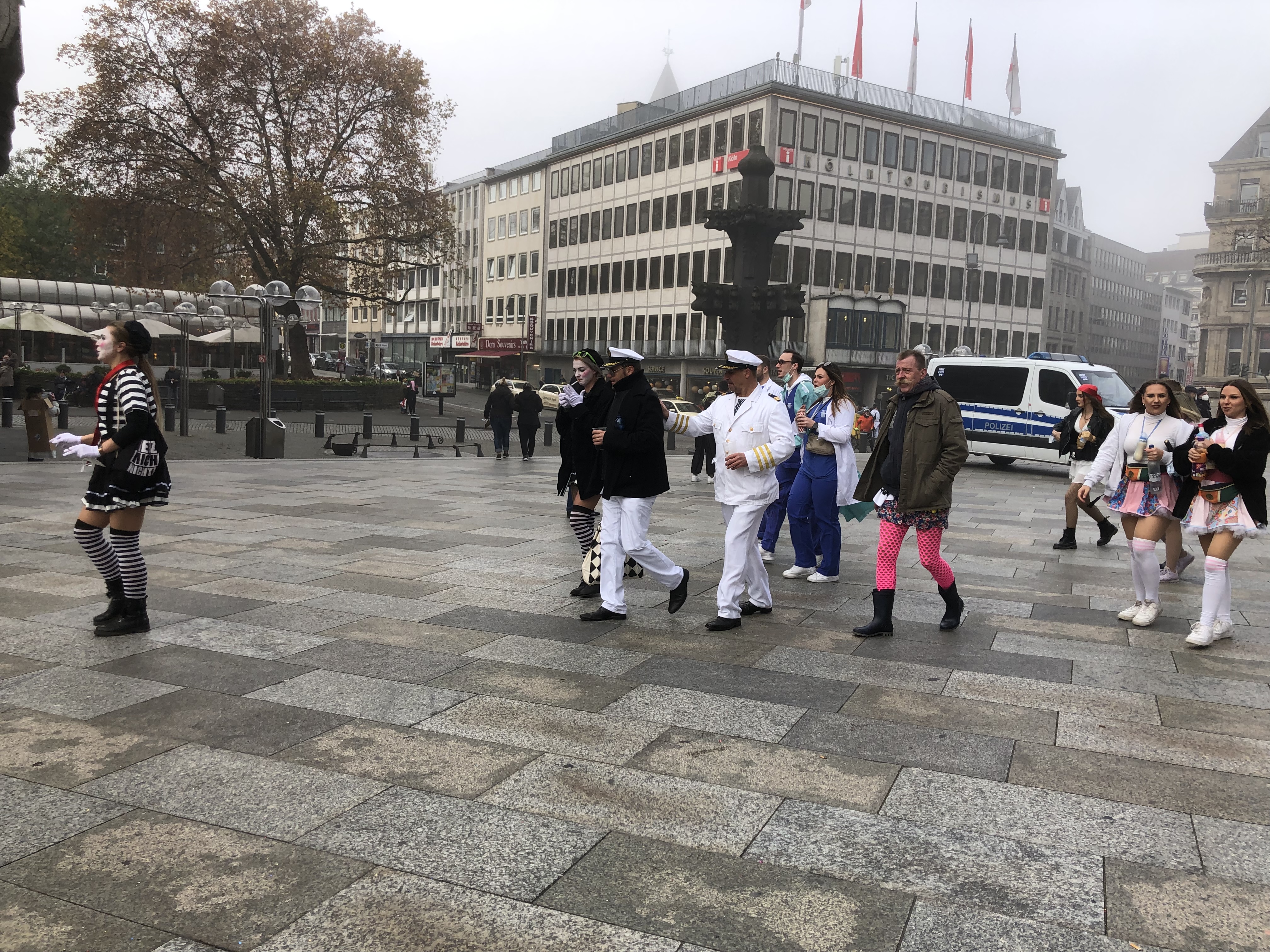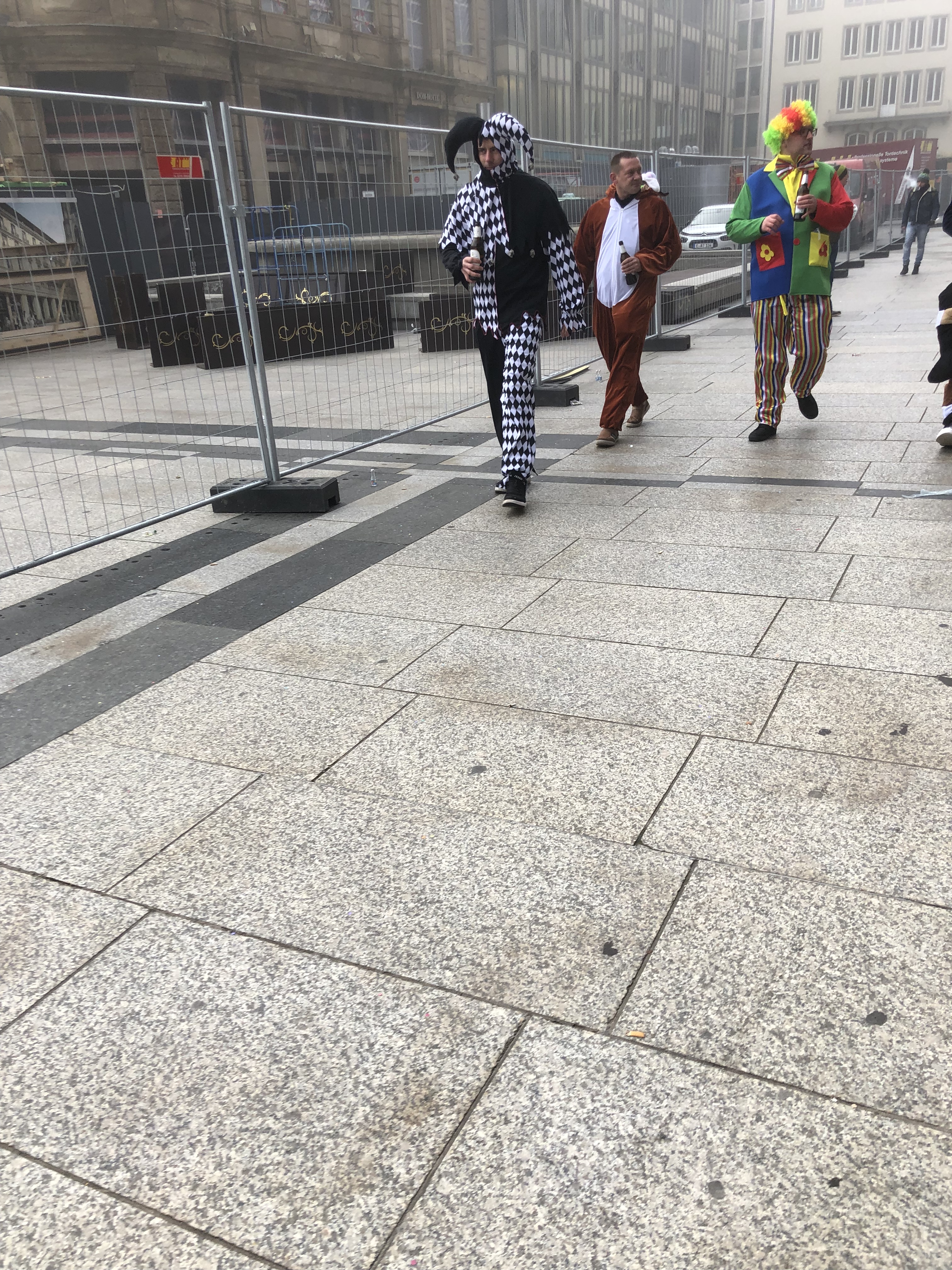 Leaving the hotel in the morning, the fog was so thick that you couldn’t see more than 50 feet ahead. You couldn’t see the end of the bridge we took to the city center or the tops of buildings and most of the architecture, or how to clearly make your way. G’s GPS was giving him fits, we couldn’t use landmarks and had the good fortune to be surrounded once again by a drunk circus. Those who weren’t actually staggering around, were vomiting. It’s not illegal to have open containers or be publicly inebriated apparently and we decided this time around to just give up. We are quite boring, I guess. I suggested to G that he pack a pink tutu for Cologne next year but the look I got from him, suggests that’s a no.