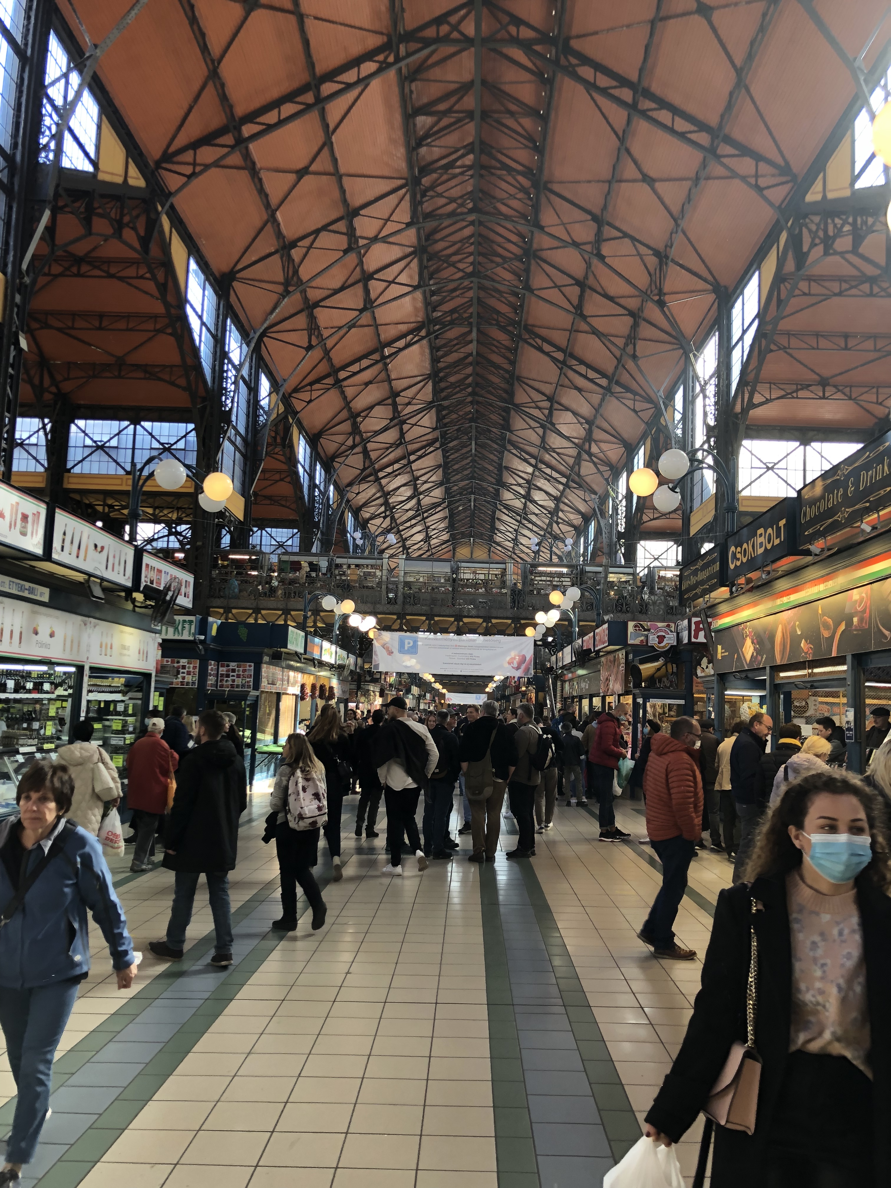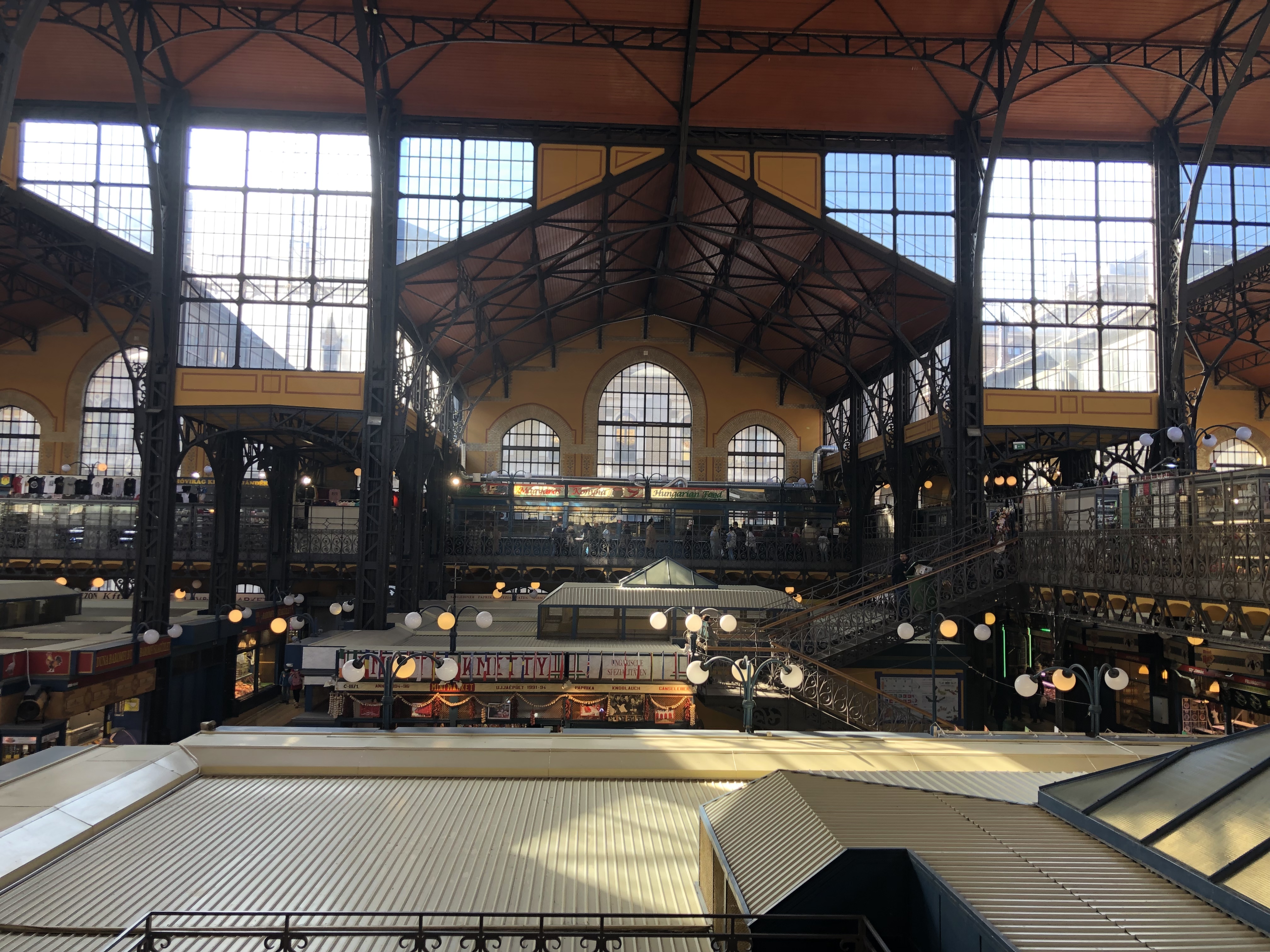 We picked up our hop-on hop-off bus tickets and the transportation cards. We don’t know about the tours in the cities we’re visiting because we don’t enjoy tours, so we don’t research them. The Bus works for us because we can get off when we want, for whatever reason and then resume looking at the city, hearing the commentary after taking a break. Sometimes we would get off to have a meal or to look at something in particular, or to thoroughly examine an area that is the farthest away from our hotel – one we wouldn’t reach easily by foot. After we picked up our tickets, we walked to the Central Market – a big market and the place that Vince, our car driver, said had the best goulash.