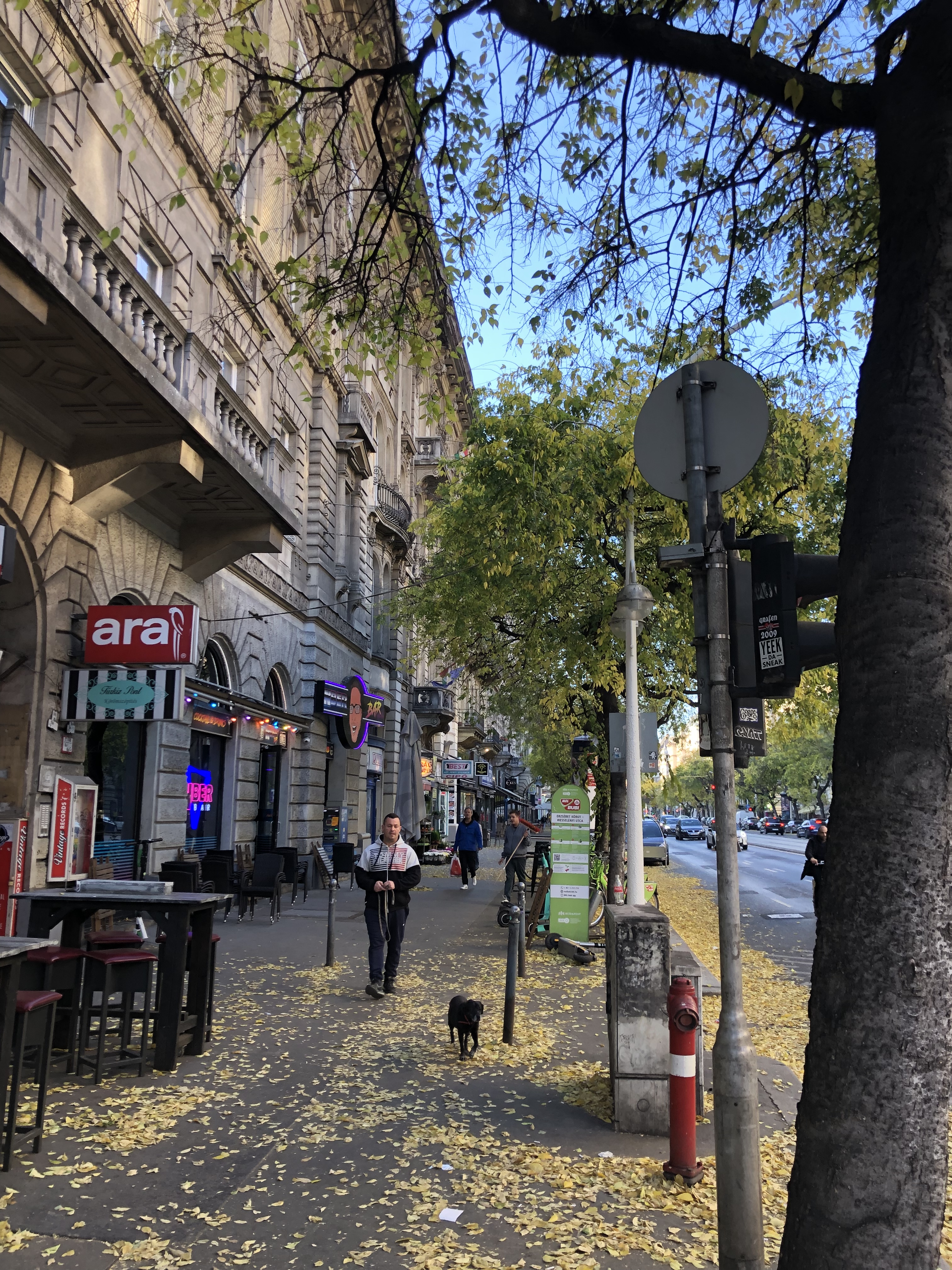 The next day we went for an early morning walk – it was much warmer than predicted, in the mid 60’s. It was a lovely fall day, with the turning leaves swirling in the air. It’s amusing to us that the older, historic neighborhoods on the west side of the Danube are referred to as “Buda”. The newer, east side (where our hotel is located) is called, “Pest”. If you look at a map, the name is divided by the river so that it reads Buda on the west side and Pest on the east side. We also found that they pronounce it as if it ends in an ‘H’ instead of a ‘T’; Budapesh.