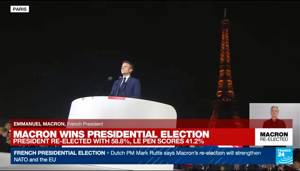 We watched the only debate between Macron and his opponent, Marine Le Pen. Macron is the first French President in 20 years to be elected to a second term. We arrived in 2018 and the last election was in 2017 – the President serves five years. So we’ve only known Macron as President and this year, once the two top opposing candidates were known in the first vote, there were predictions that France could experience its own version of a nationalism movement that had taken the UK and the US in 2016 – being referred-to here as a Brexit-Trump wave.
