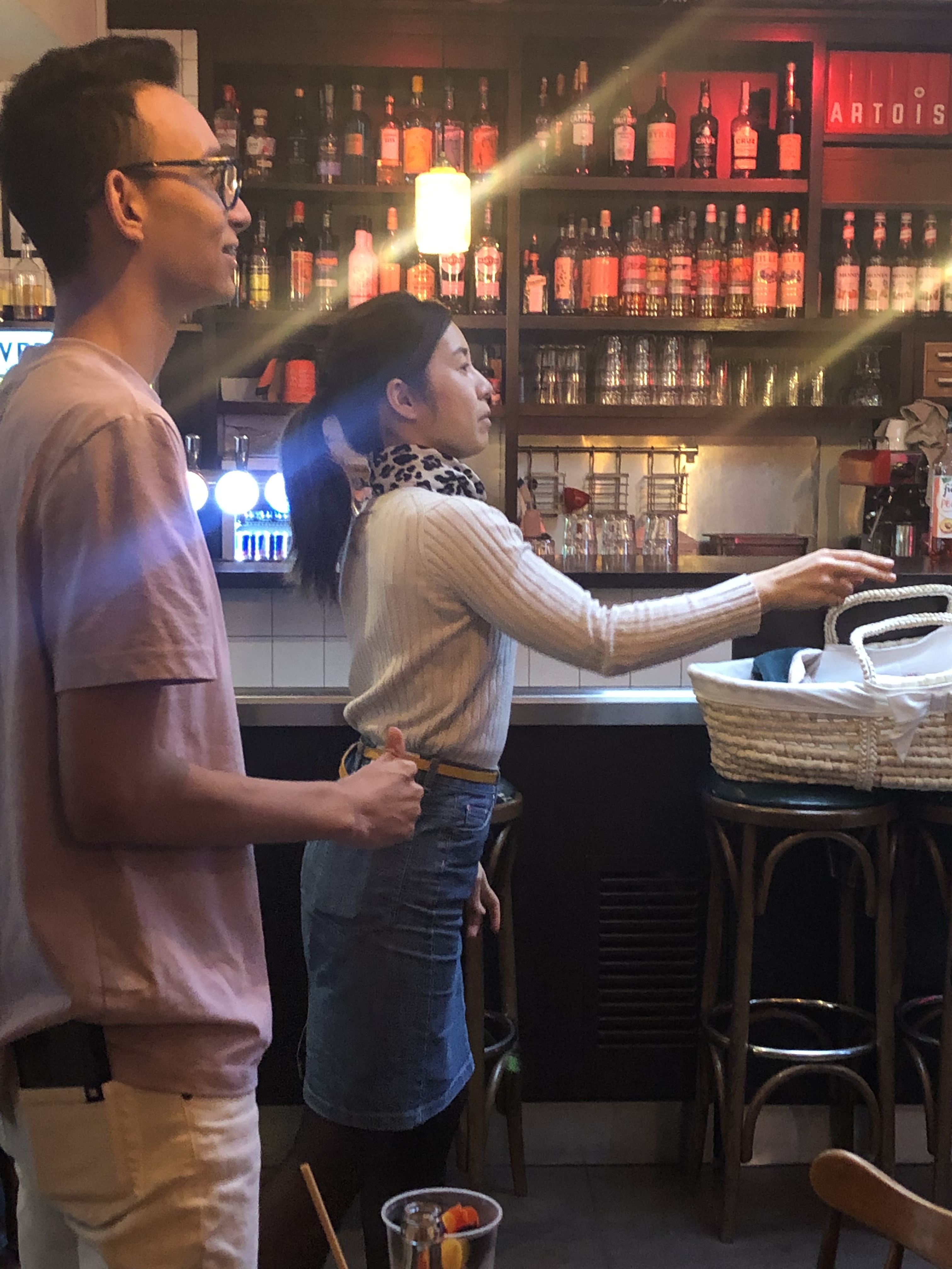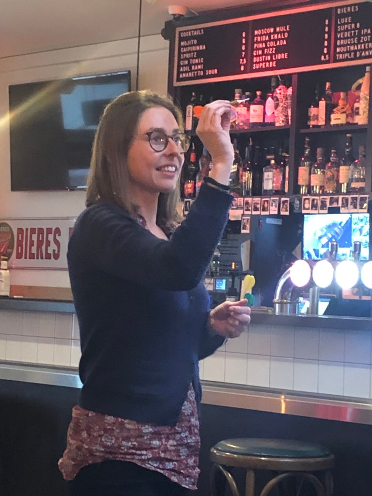 With the last class at a close, we all metro’d into Lille Centré to have a drink, to say goodbye. We were such a diverse group – two males, three females, the countries represented were Japan, Venezuela, Bangladesh and US. The woman from Bangladesh brought sweets for everyone along with a small gift for each, to celebrate the Bangladeshi New Year. The young man from Venezuela brought chocolate bars for everyone and collectively we gave the instructor a box of Au Chat Bleu chocolates as a thank you. She had been revealed as an ardent chocolate lover in the first 6-week session class. We all ended up being buddies, so with the instructor, who was as young as the other students, we trooped on the metro, to Fool Bar (G’s suggestion) in Lille center and it turned out to be the best relaxer. They have an electronic dart board and after settling in with drinks – we all played three rounds of darts. A first for a couple of us. Everyone had a great time there and it was a perfect finish to the difficult journey. G and I left first, to allow them to continue their good time while we went home to relax.