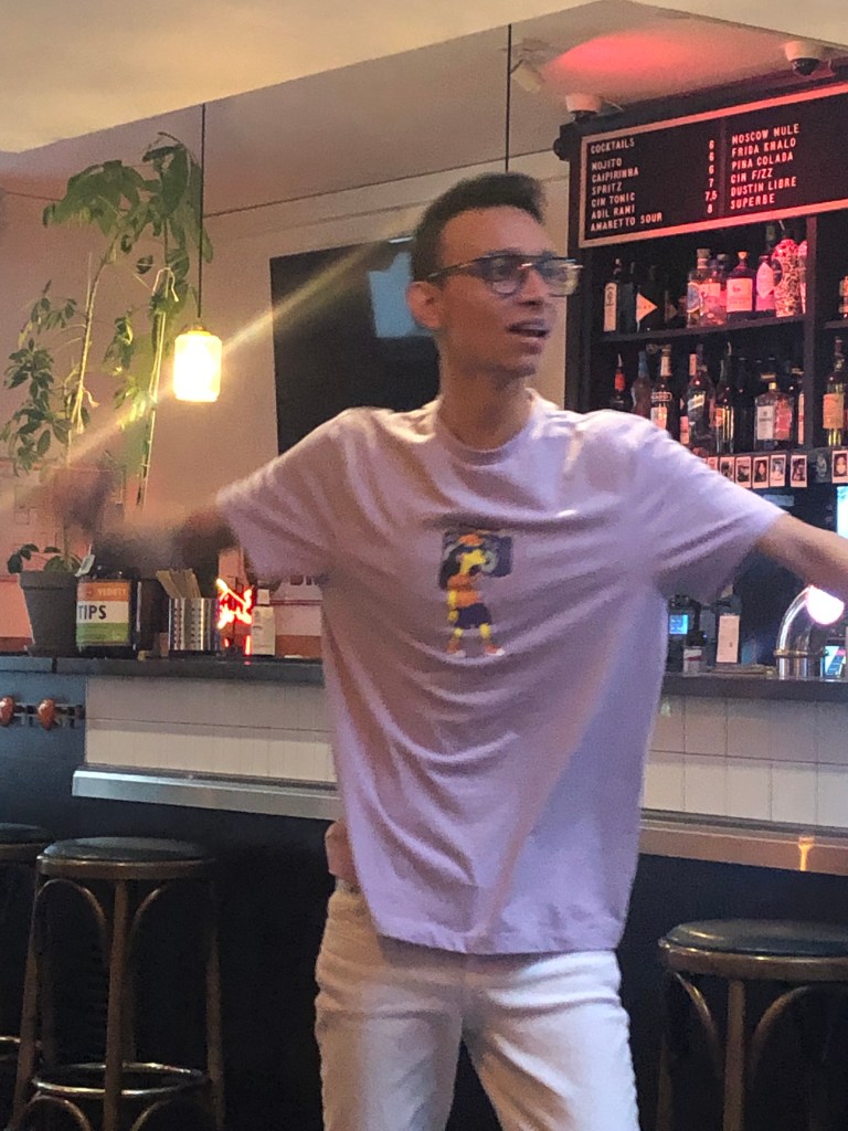 One evening, we met Arthur, the second person we met in Lille, when he was managing a cafe called Peacock. We hadn’t seen him since before the pandemic and before he stopped dating a young woman that had caught his heart. He decided in the event of the pandemic, to go to college and is now in the AI field, which he is thoroughly enjoying. It was so wonderful to visit with him – a very funny, personable guy, who was looking very relaxed and happy. He invited Xavier, a friend we had come to know, along with Arthur’s band members, before the pandemic – also a very funny fellow. Below you will find a YouTube link of a very short film they made together. No speaking and cute. Xavier arrived, just like his character, with a little flower in his mouth – it was perfect .
