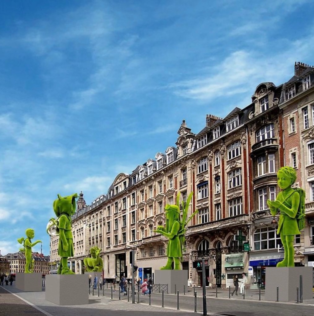A really cool happenstance is that Lille has a huge city wide celebration every three years and this is the year it is coinciding with K’s visit. She’ll see the opening parade that passes under our balcony and we’ll have a ton of events in the town to take advantage of, the weekend before she leaves. The weather promises to be good, versus three years ago when we huddled on the balcony, under blankets in our mukluks, drinking alcohol laced coffee. Three years ago you may remember me writing about El Dorado, with pictures of the huge 2 story tall, colorful statues lining our street. This year the theme is called Utopia, centered on nature and the environment, and the pictures of the coming statues show large moss covered, fairyland type people.