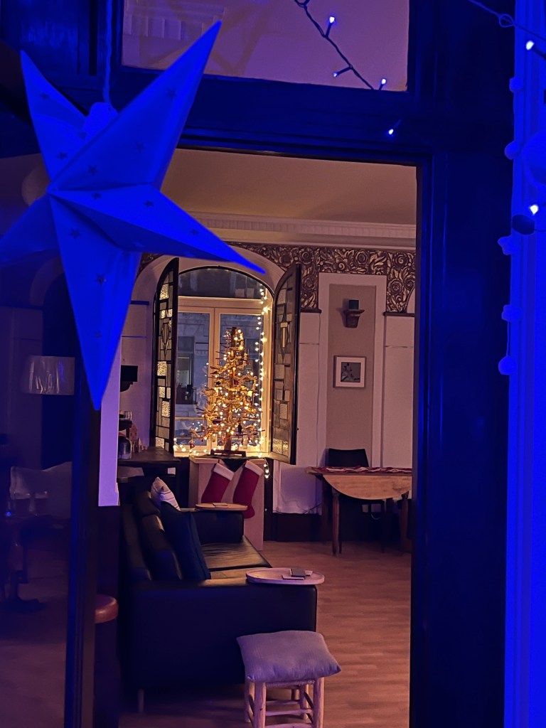 In the holiday spirit, we made pumpkin pie and eggnog – delivering some to everyone. Even strung popcorn for the tree. It was wonderful to see the town filled with visitors for the Christmas market and shopping, especially when we remember the empty squares with closed shops and restaurants during the 18 months of Covid quarantine. It’s great to see it all bustling again.