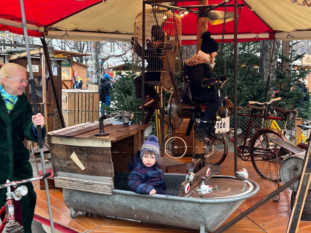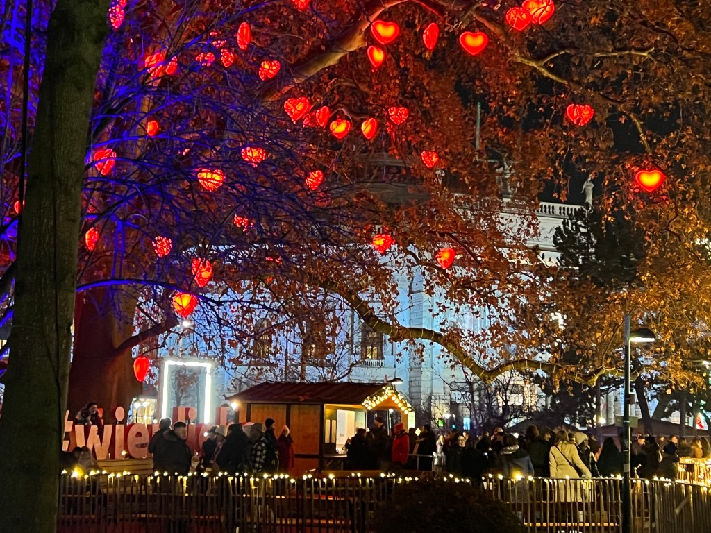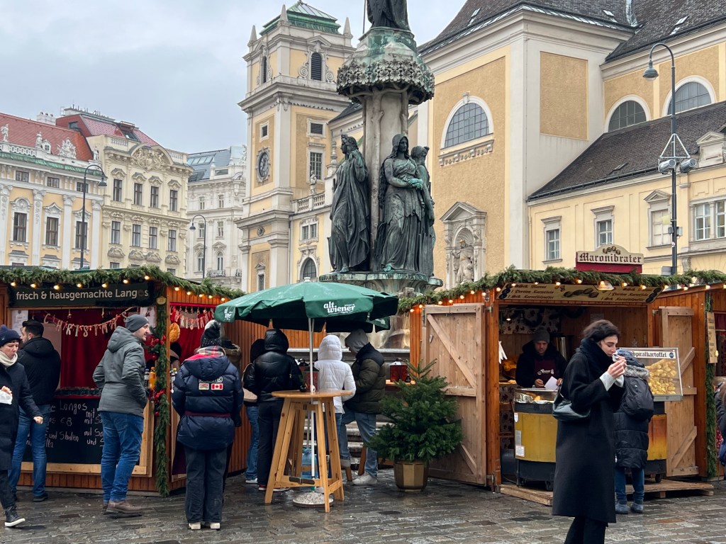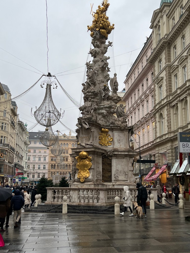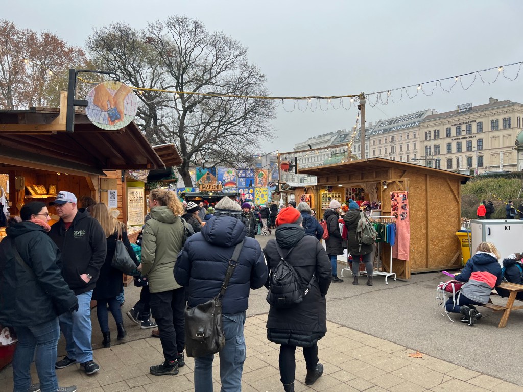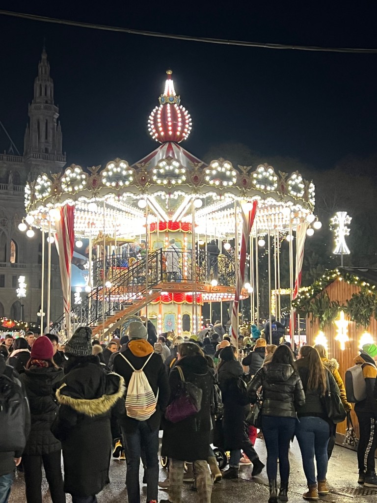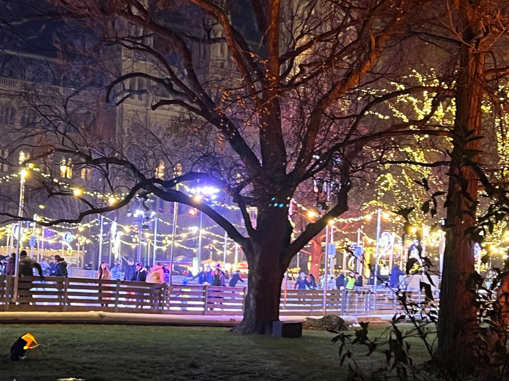 To the reason for our journey here, Vienna is known for its Christmas markets. There were at least 9 Christmas markets in the city area and we viewed most of them and did some window shopping as well. We went to the biggest market, Weiner Christkindlmarkt, at night. The lights were over the top, they had rides for the kids and an ice skating rink. On the walk back to the hotel we talked over our favorites and it really had nothing to do with size. The first art themed market has been our favorite here. The last big one was too crowded for us and the goods sold were mass produced.